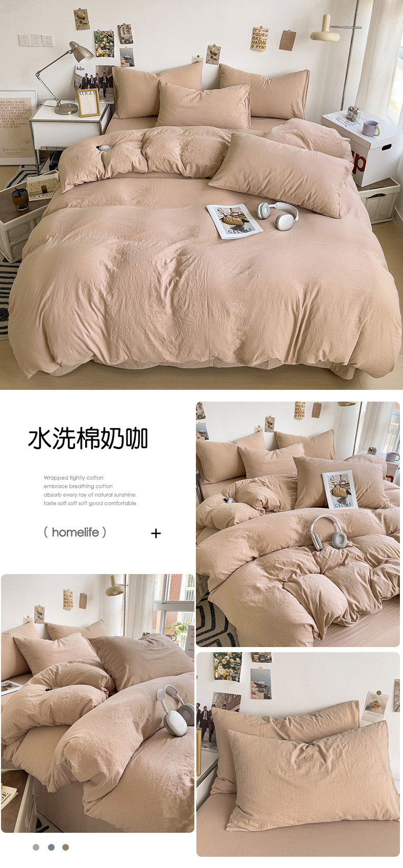 商品名称:(总)韩巢家纺 2024新款日式ins风超柔褶皱亲肤水洗棉被套单件-纯色系列(提供卖家秀)