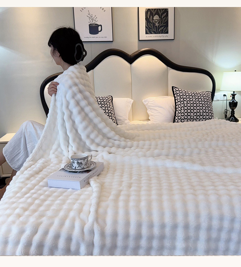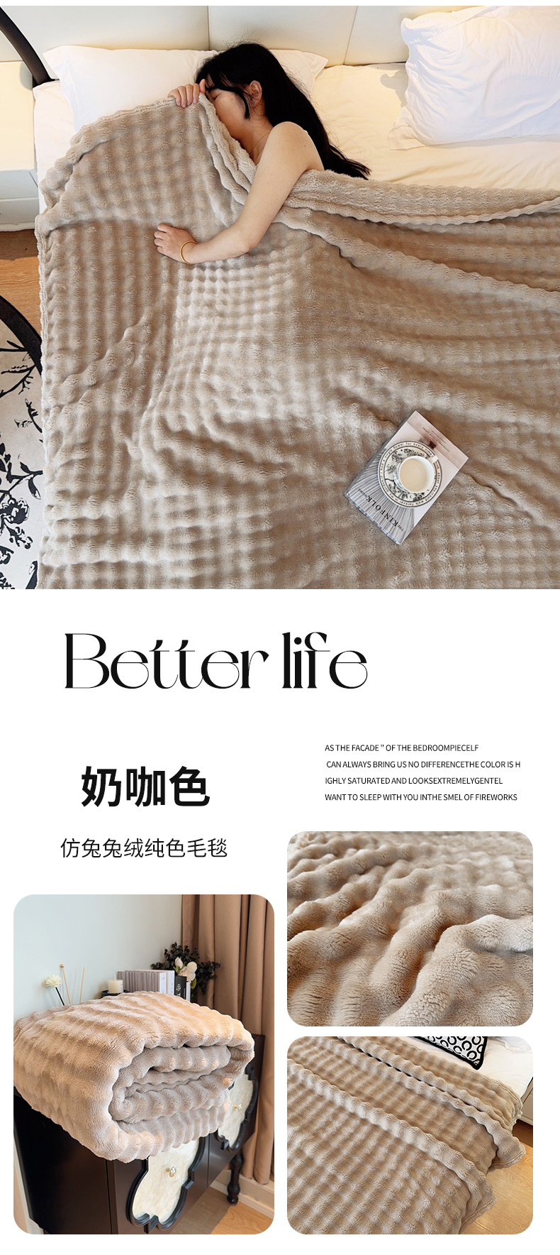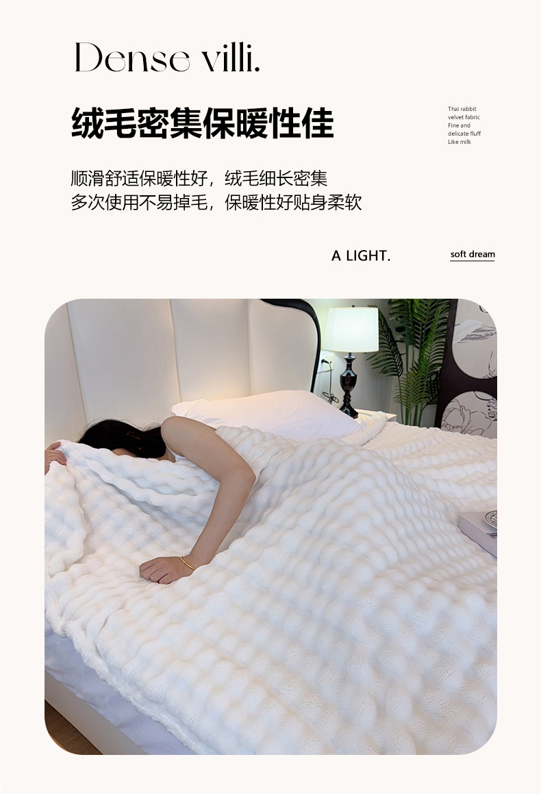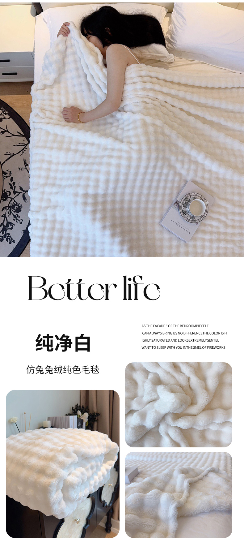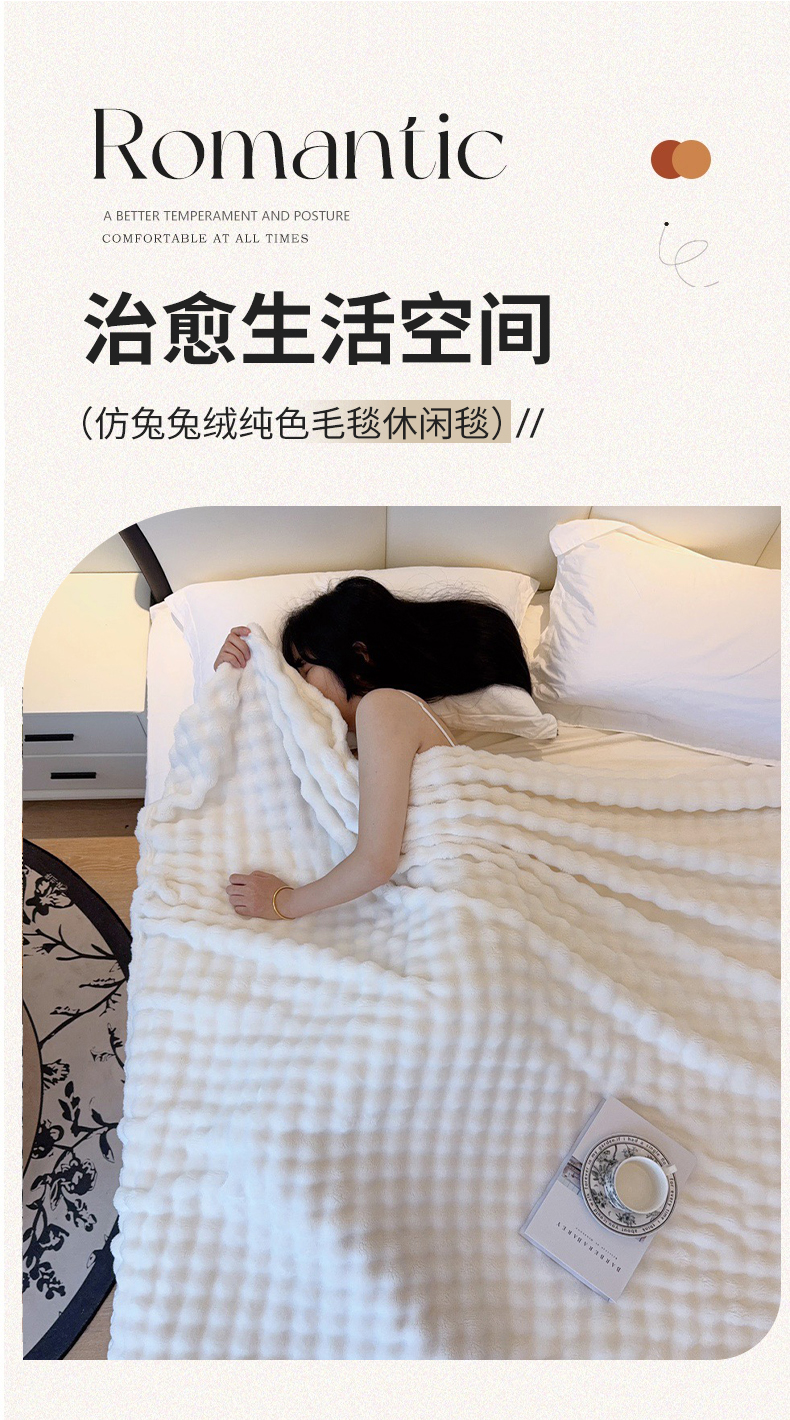 商品名称:(总)兜米家居 2024新款纯色仿兔毛泡泡毛毯牛奶绒毛毯午睡毯