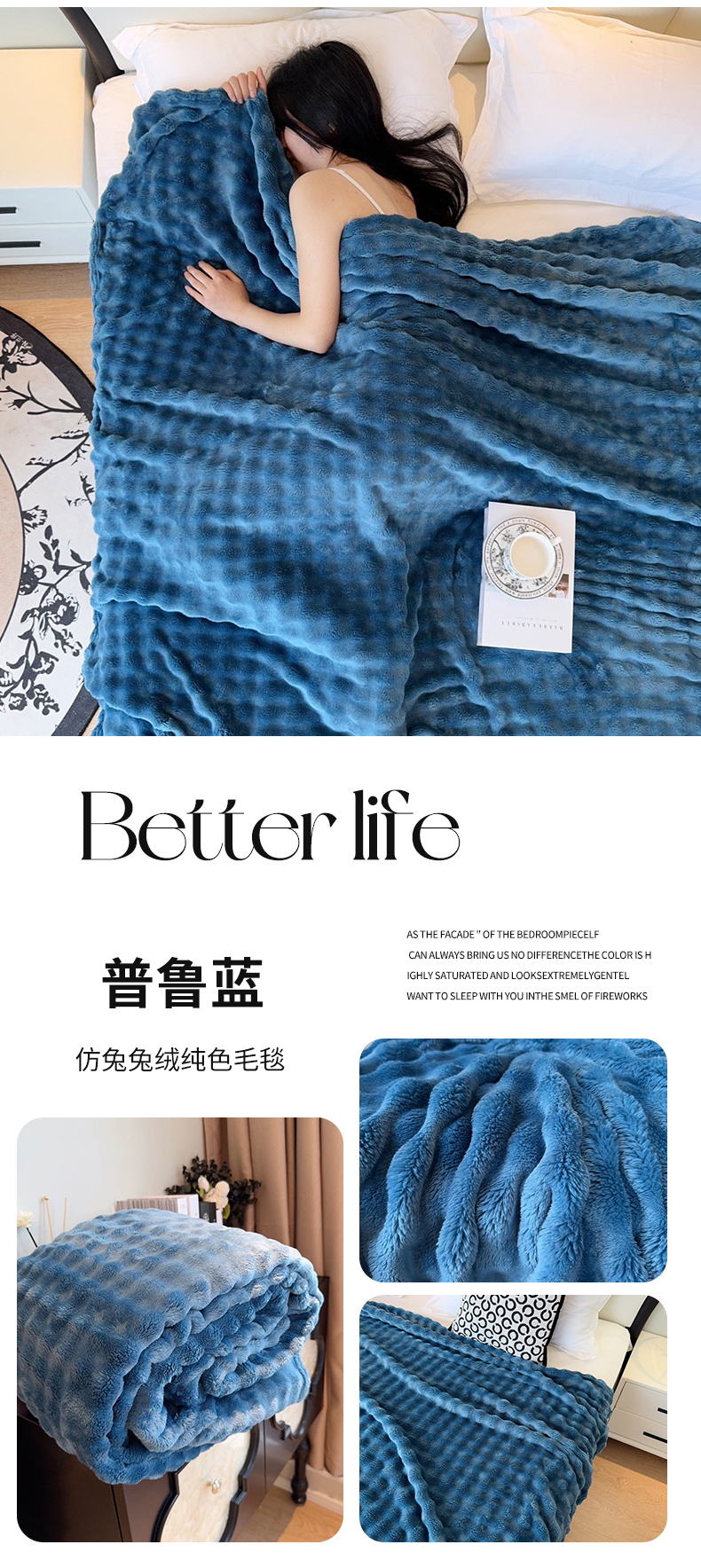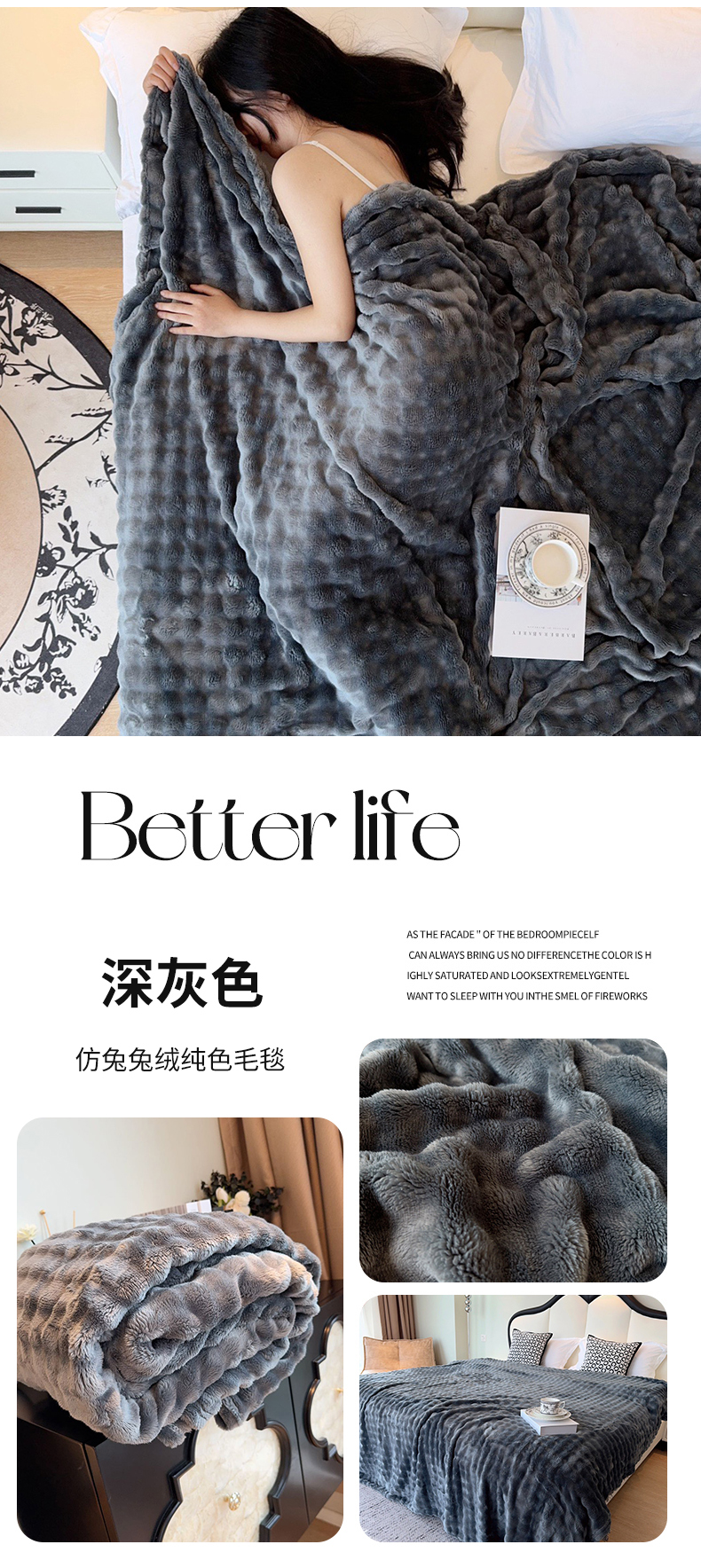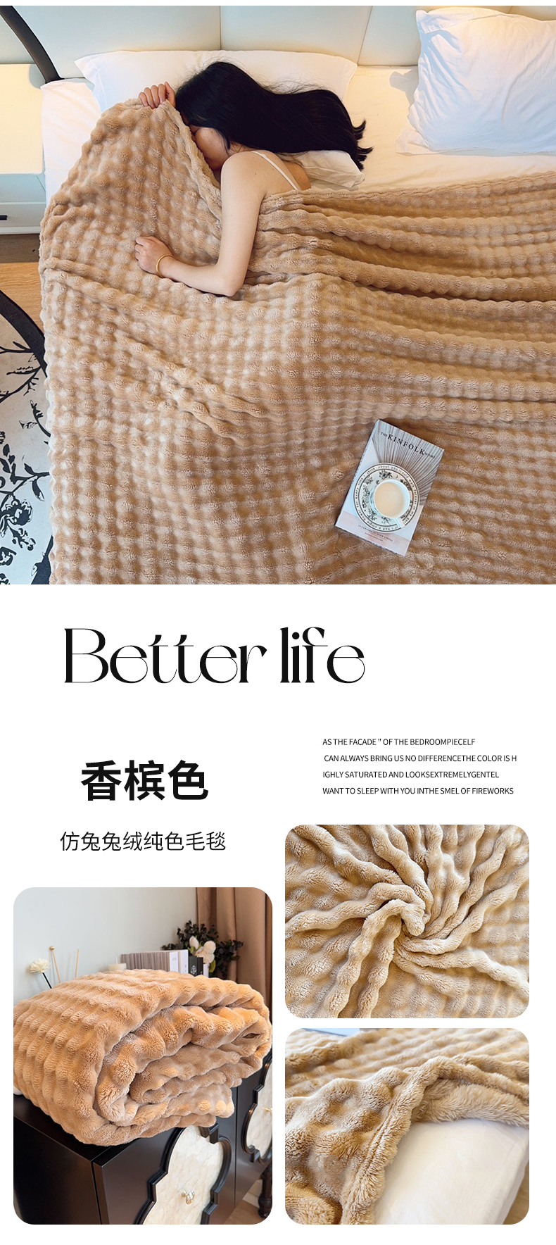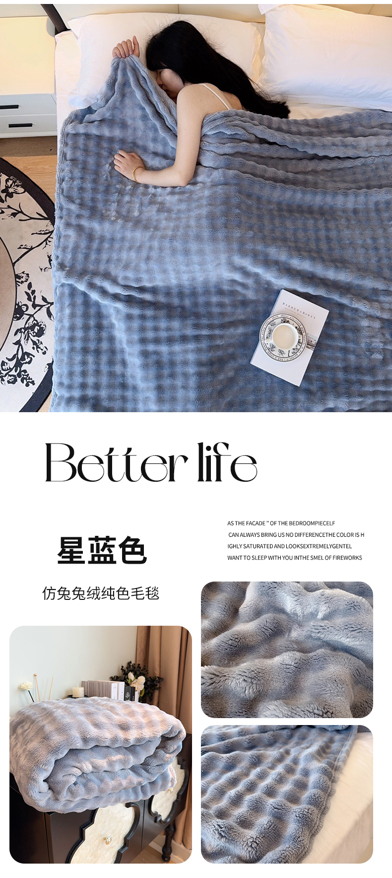 商品名称:(总)兜米家居 2024新款纯色仿兔毛泡泡毛毯牛奶绒毛毯午睡毯