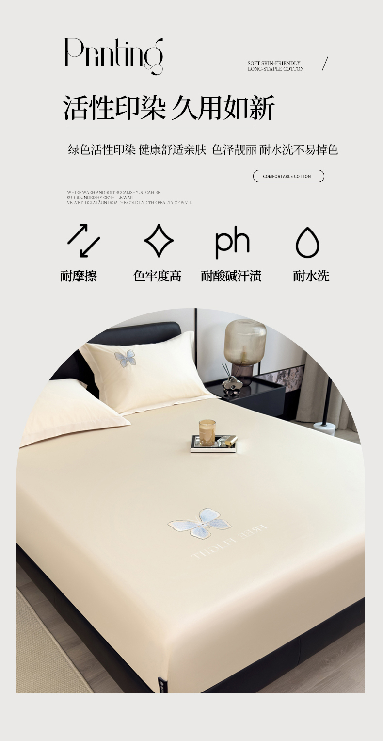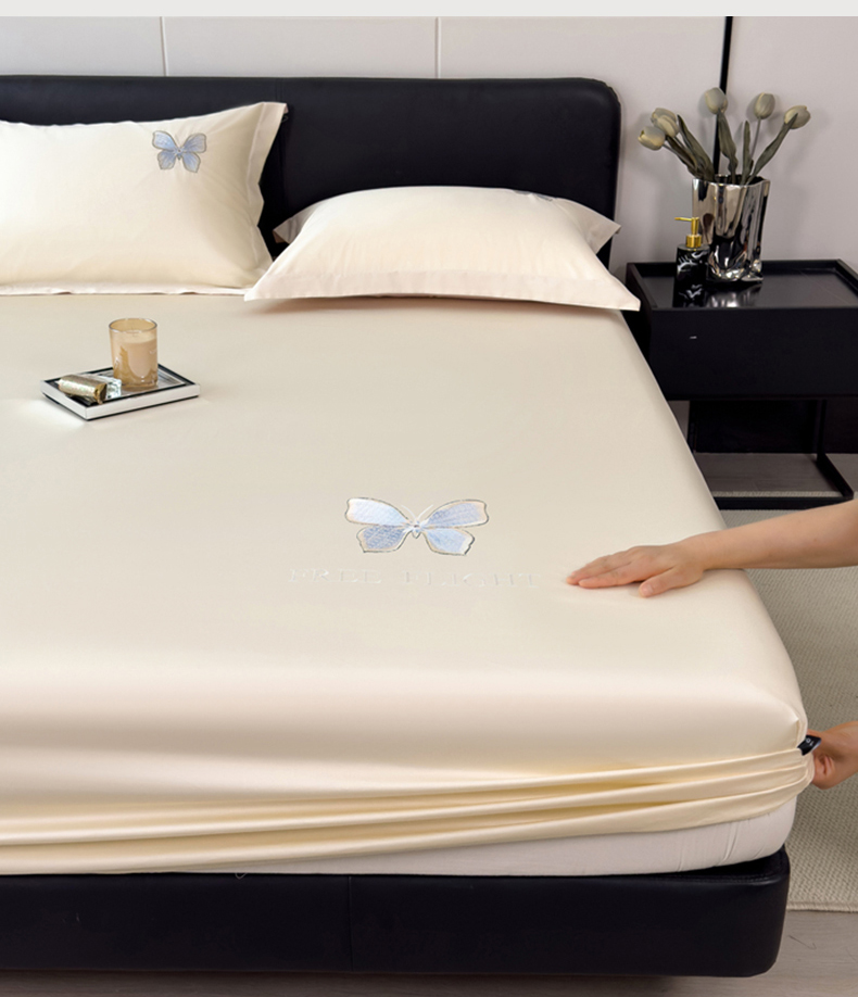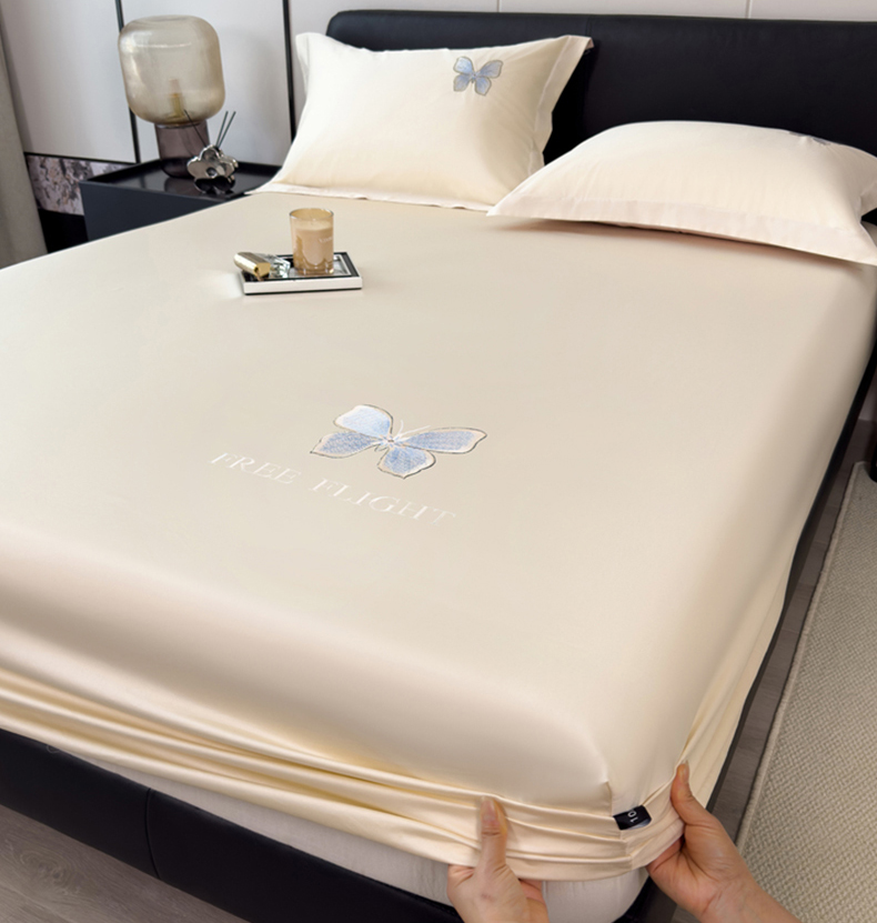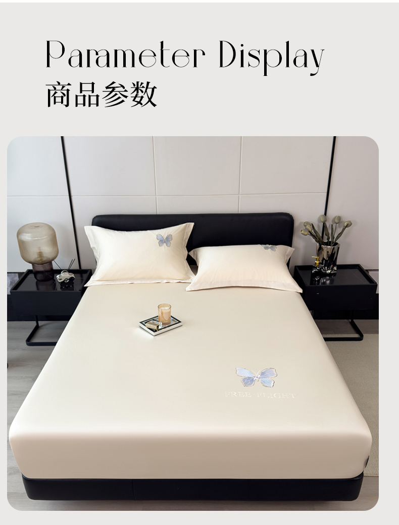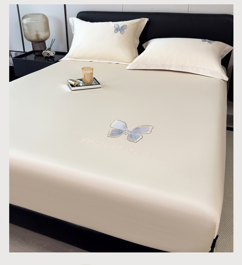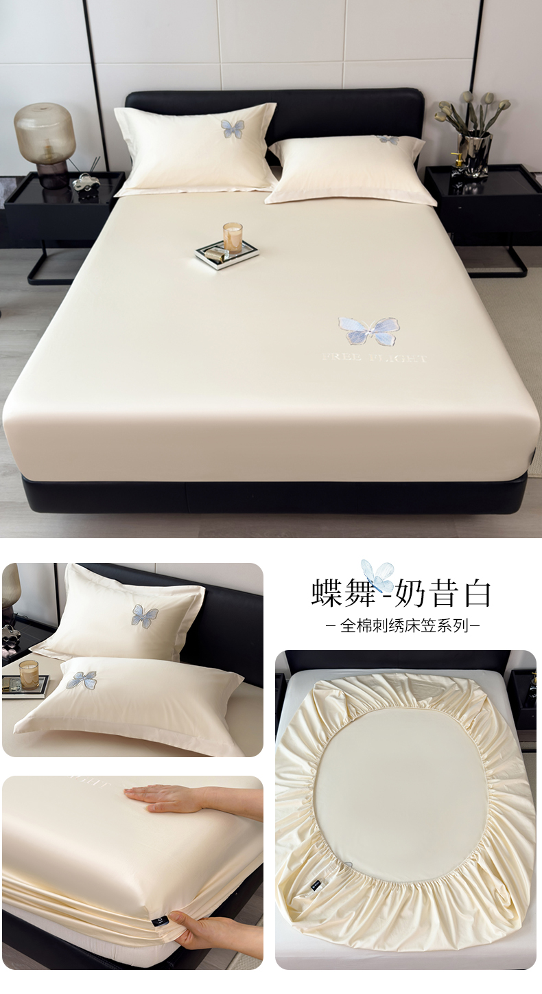 鑫钰 2024秋冬新款全棉刺绣单层床笠单件枕套三件套-蝶舞 蝶舞-奶昔白