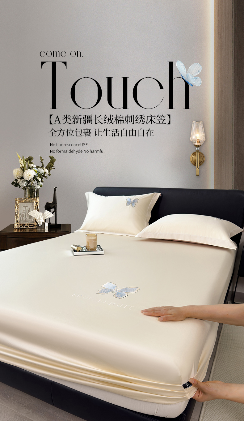 • 91家纺网 家纺一手货源 找家纺 鑫钰 2024秋冬新款全棉刺绣单层床笠单件枕套三件套-蝶舞 蝶舞-奶昔白