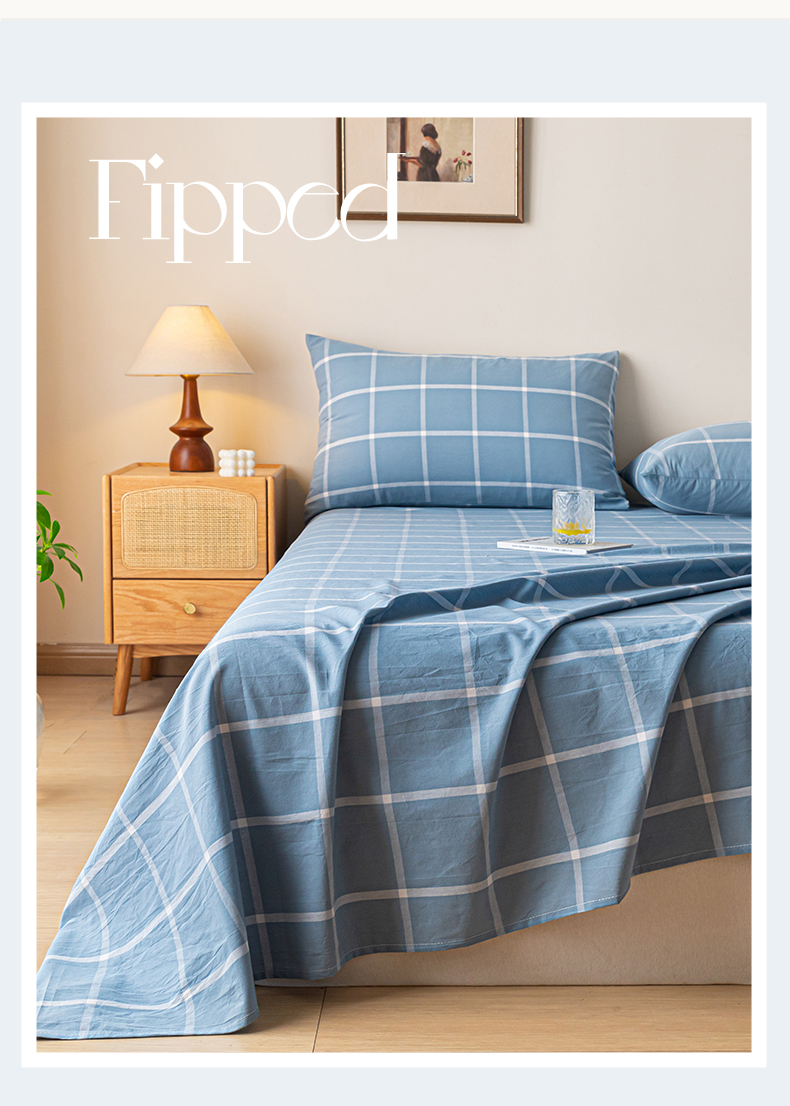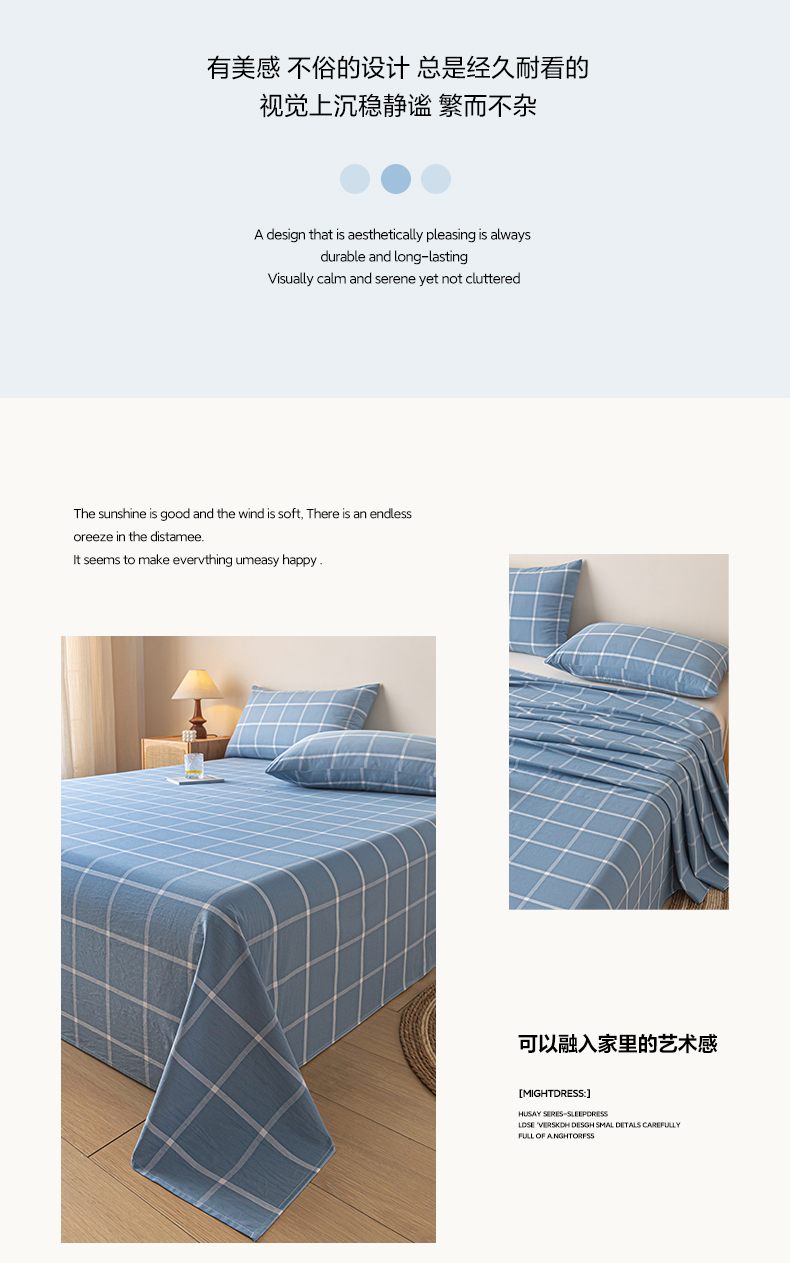 卡伦家纺 2025新款全棉色织水洗棉床单学生宿舍单人双人床单系列蓝灰中格