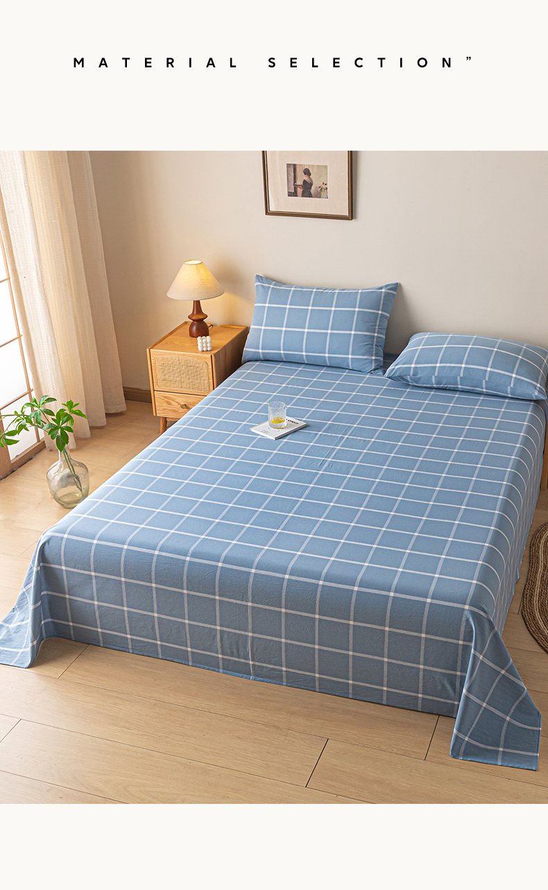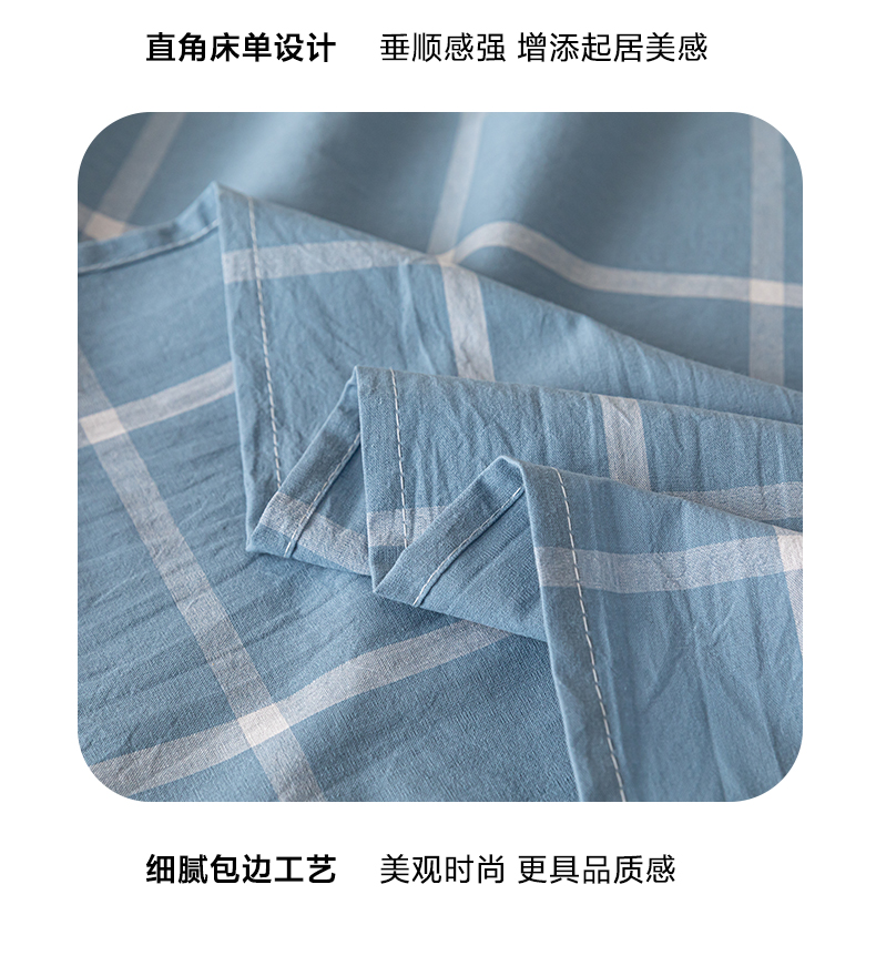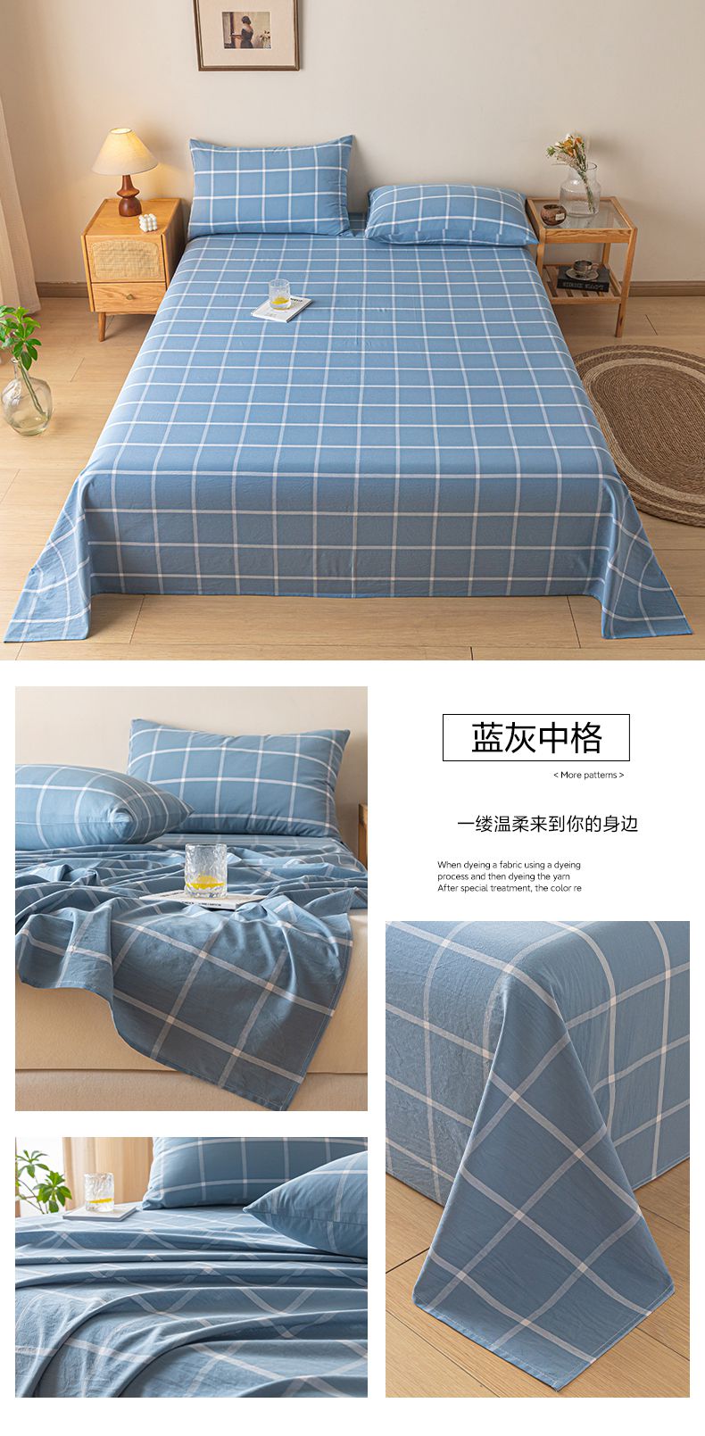 商品名称:卡伦家纺 2025新款全棉色织水洗棉床单学生宿舍单人双人床单系列蓝灰中格
