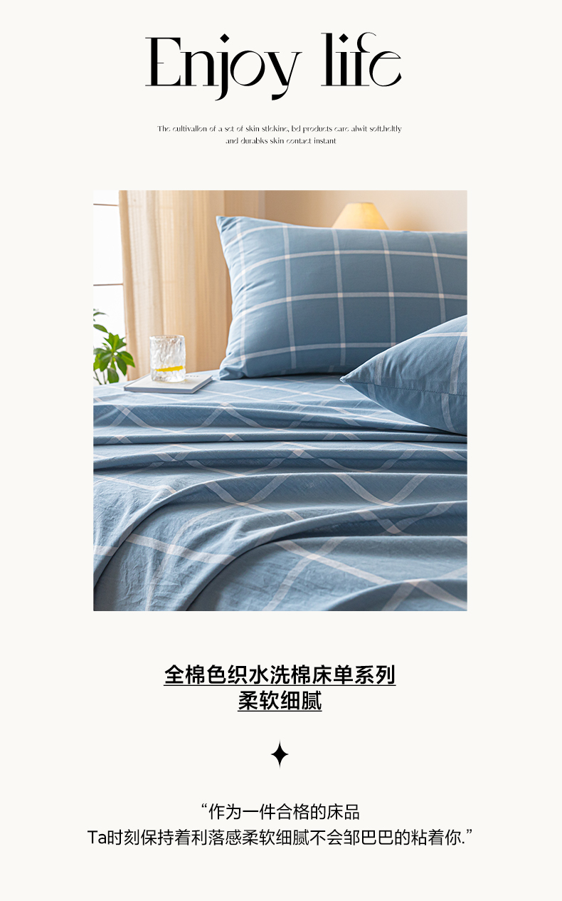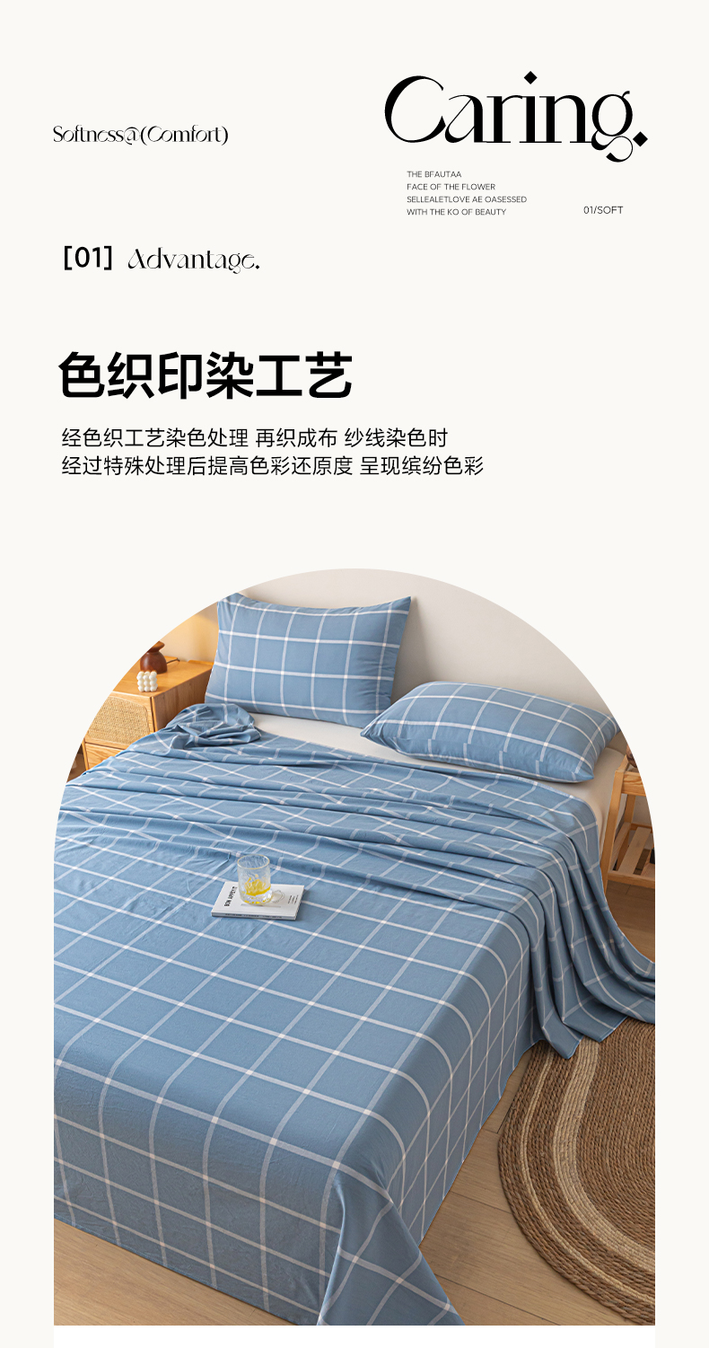 (总)卡伦家纺 2025新款全棉色织水洗棉单层宿舍学生床笠,错格咖,咖青年,蓝大格,蓝灰中格,牛仔蓝,浅蓝小格,绅士灰,英伦粉
