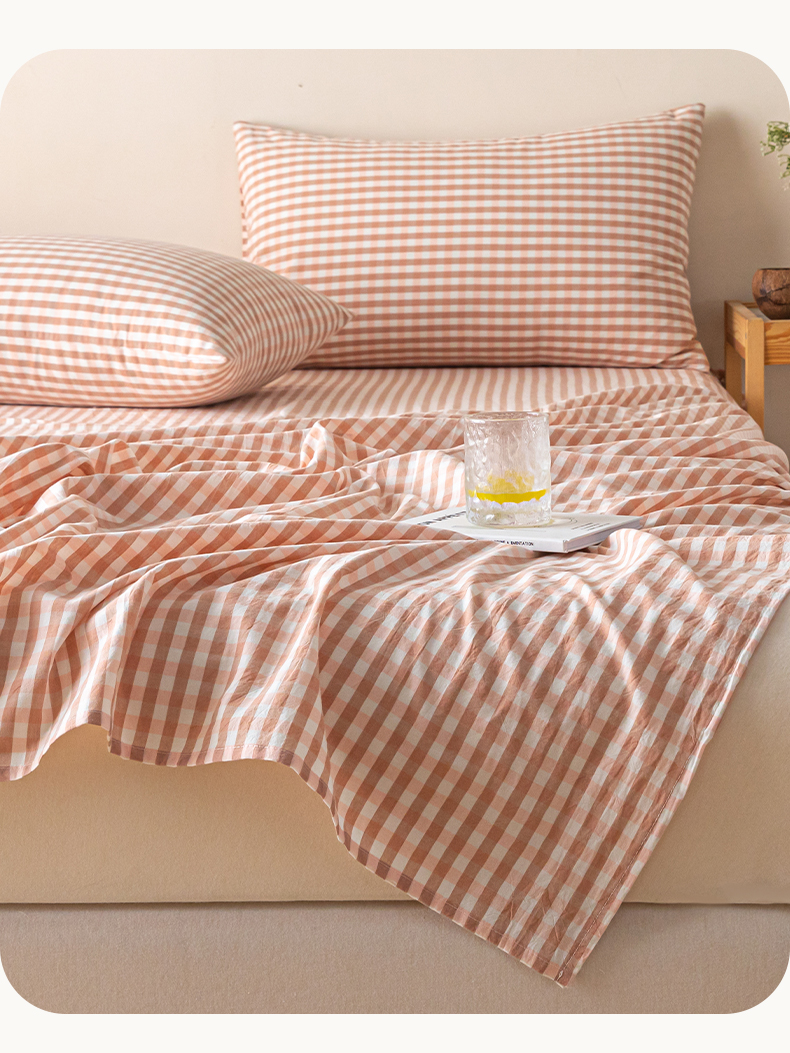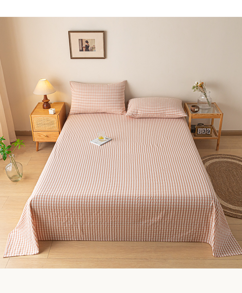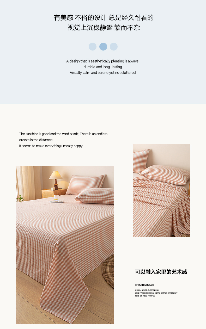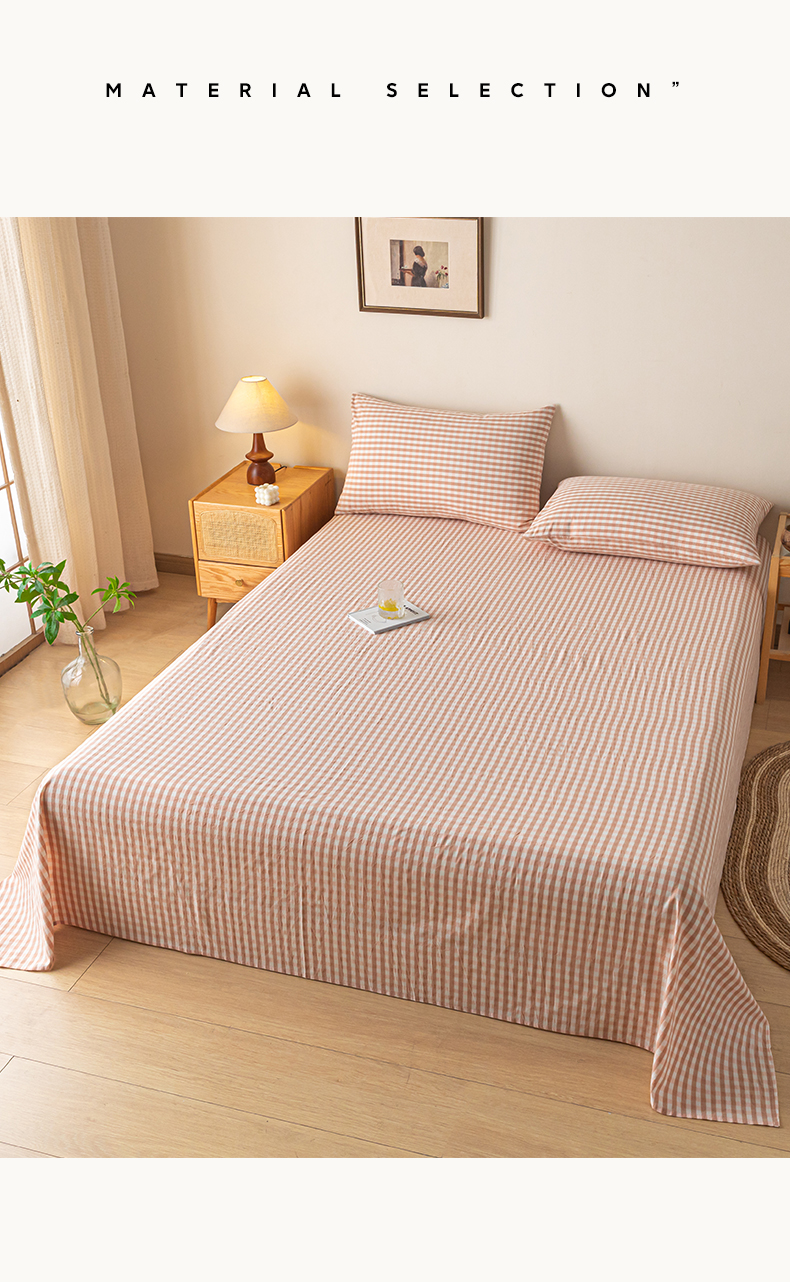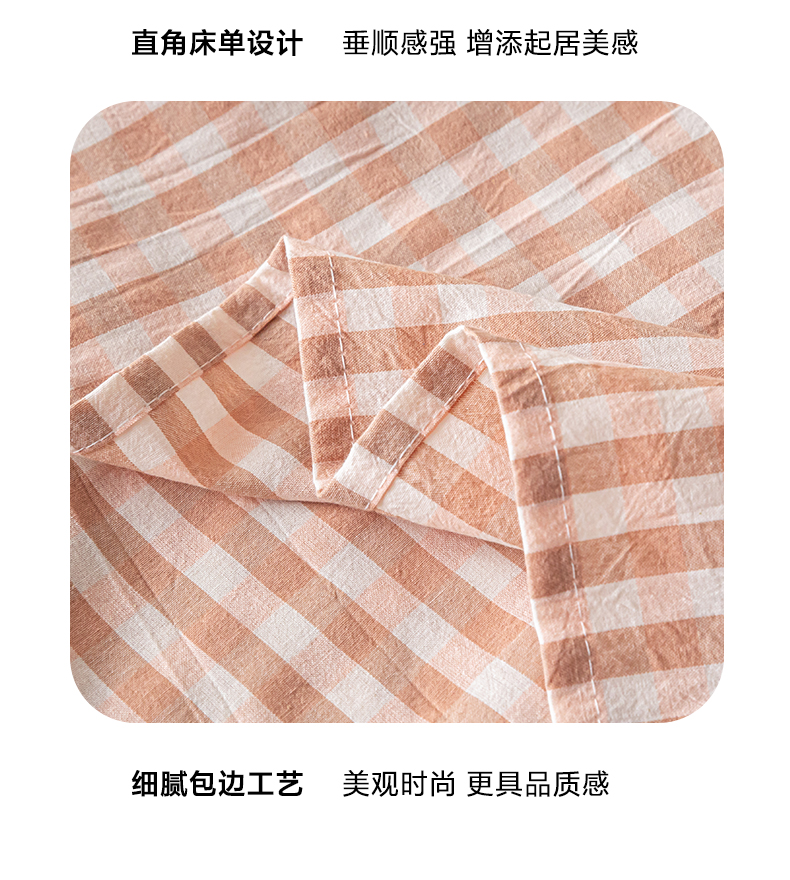 商品名称:卡伦家纺 2025新款全棉色织水洗棉床单学生宿舍单人双人床单系列粉小格