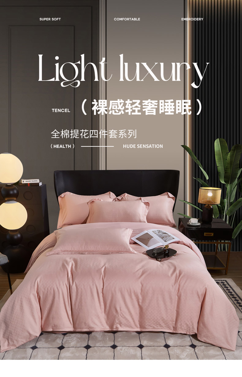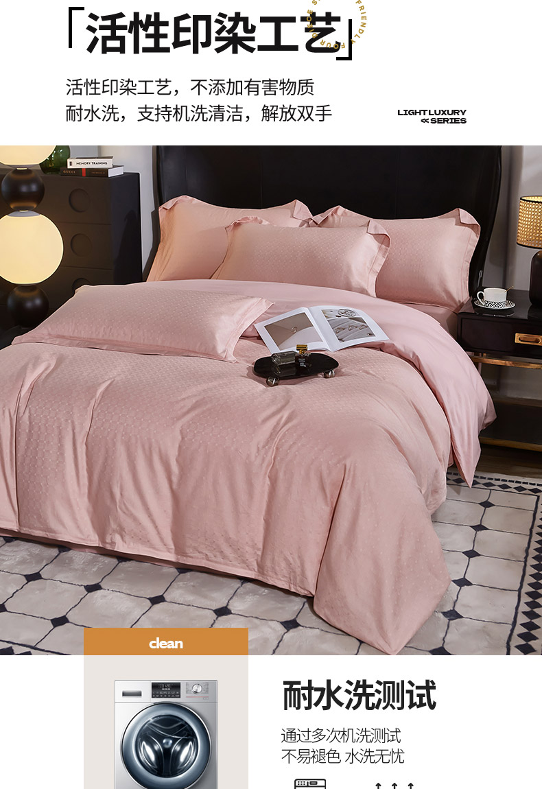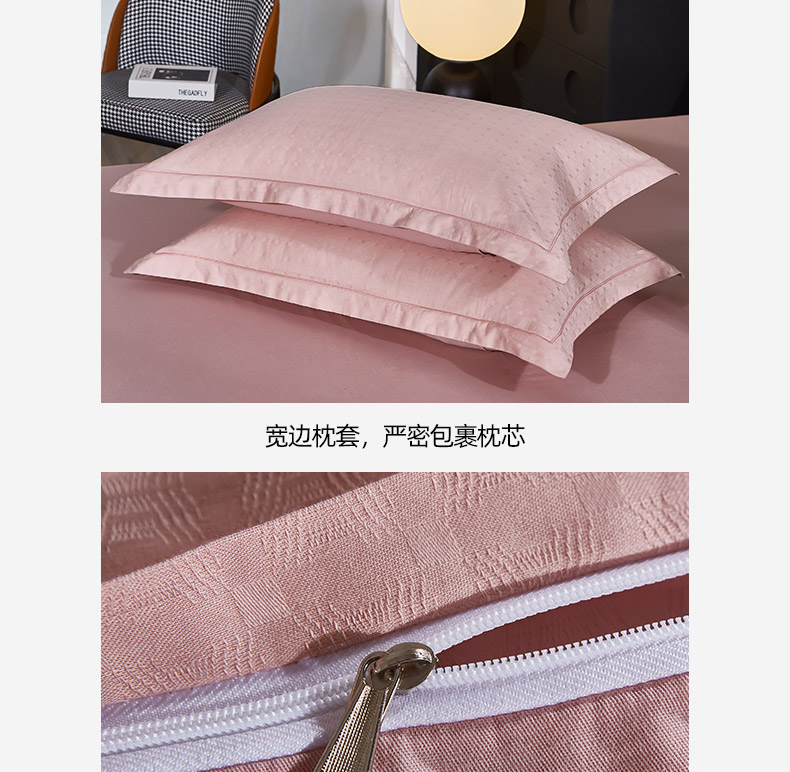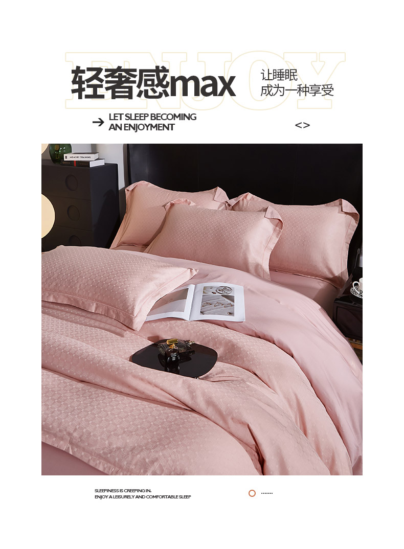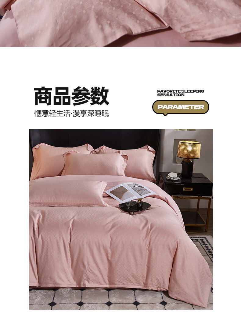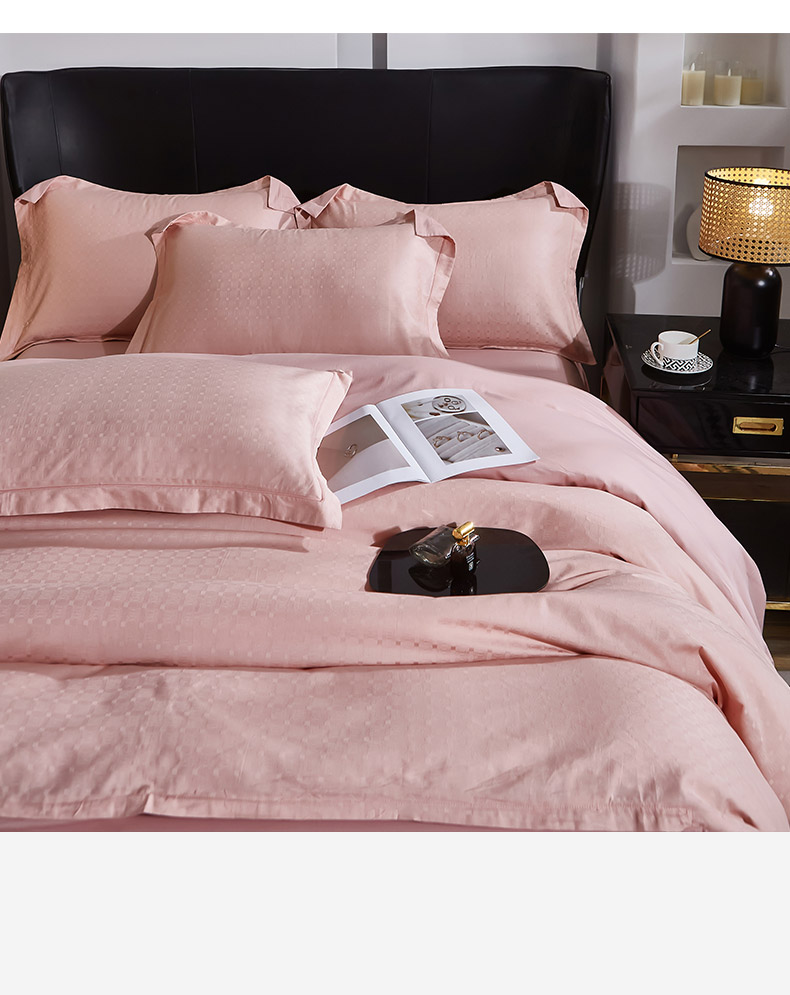 商品名称:雲归梦 2024新款全棉提花活性高支密轻奢四件套 曲线格-樱花粉