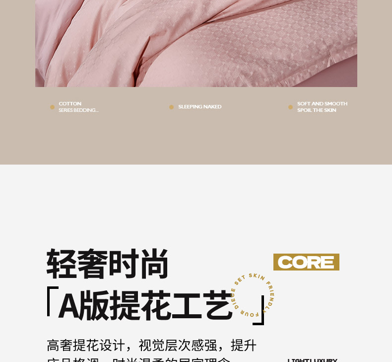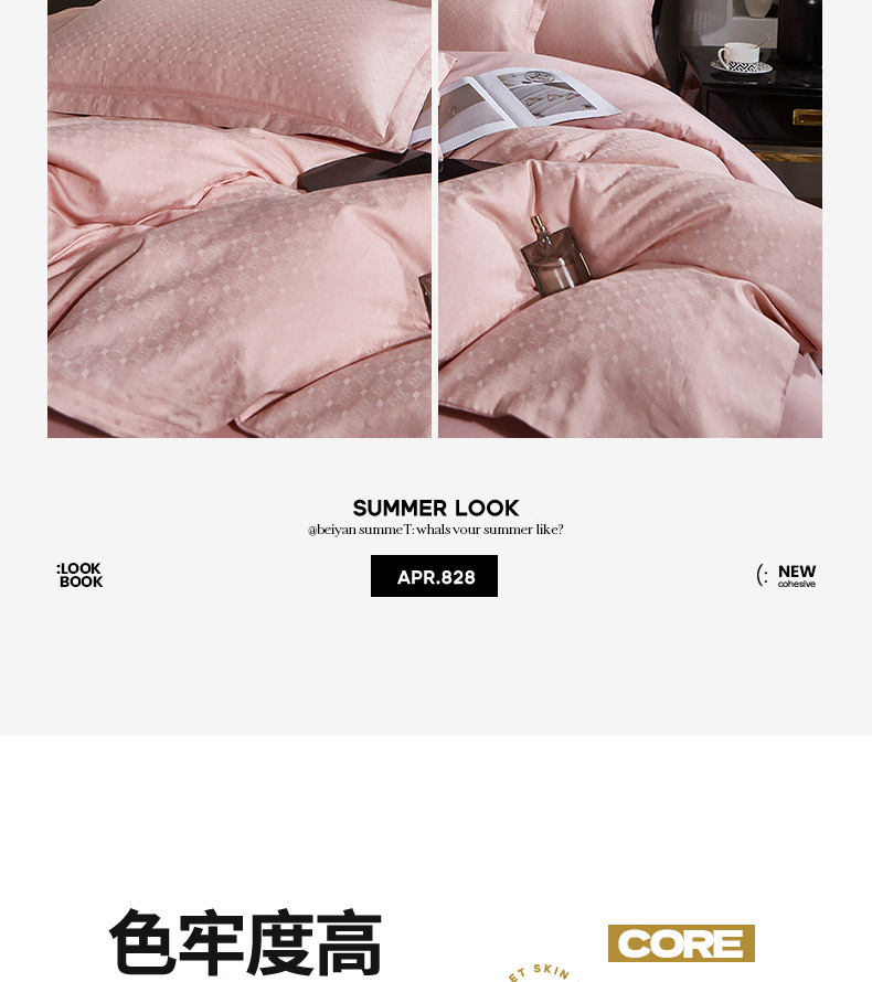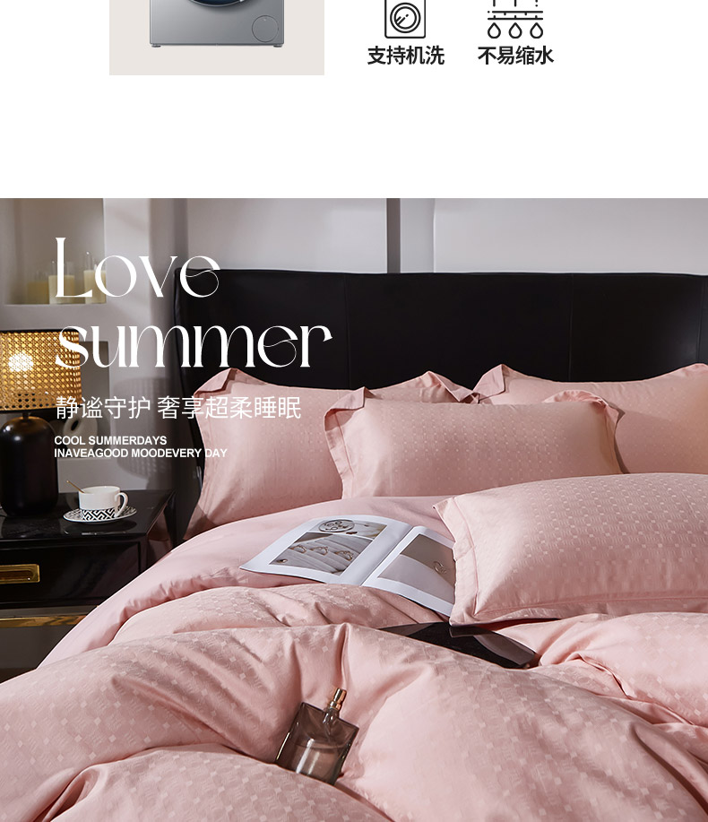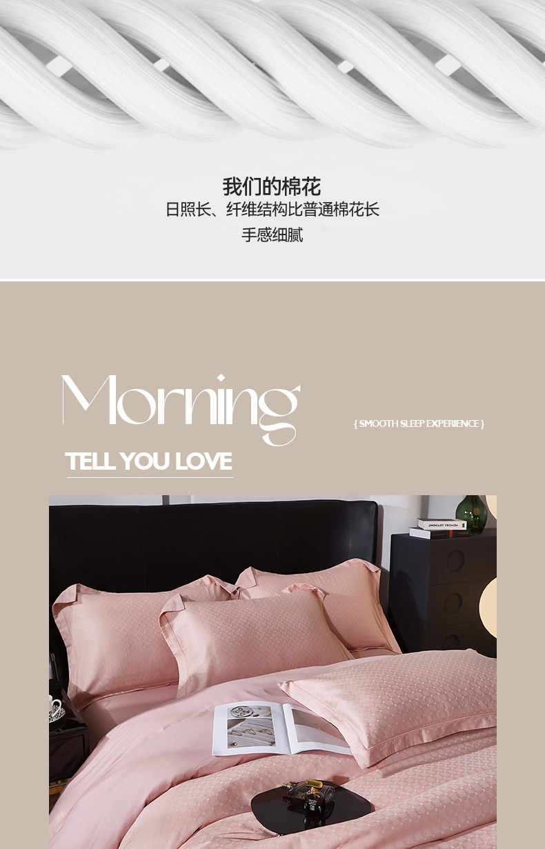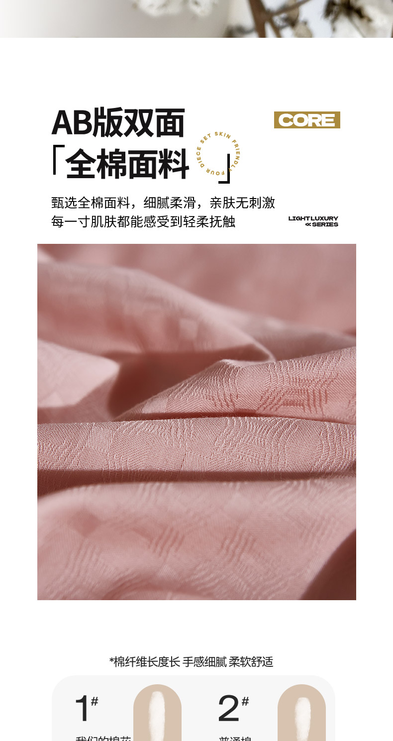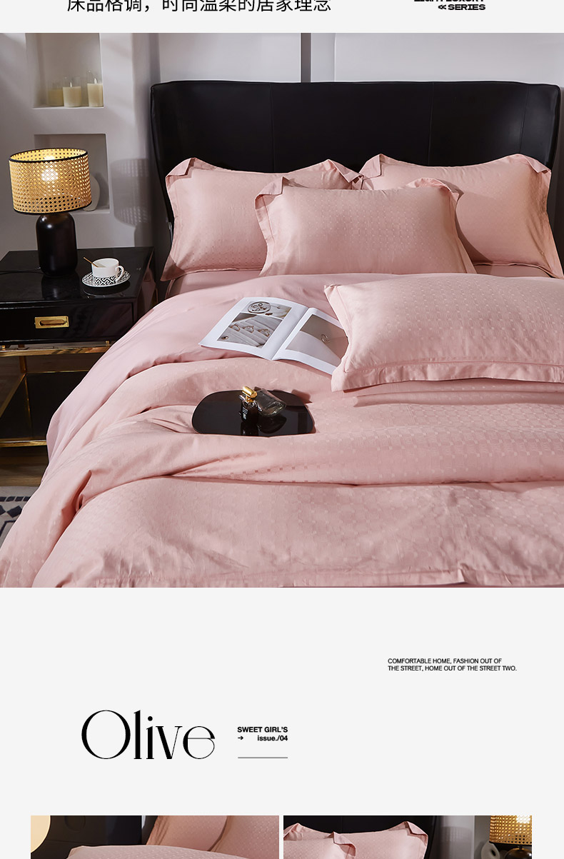 商品名称:雲归梦 2024新款全棉提花活性高支密轻奢四件套 曲线格-樱花粉