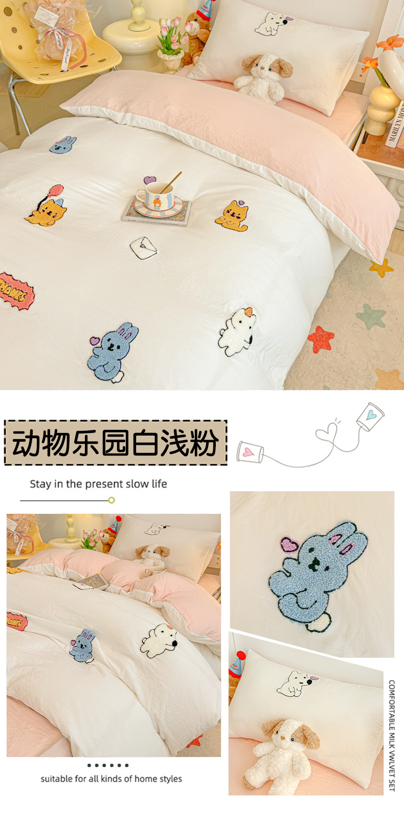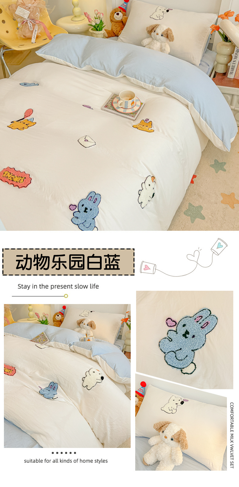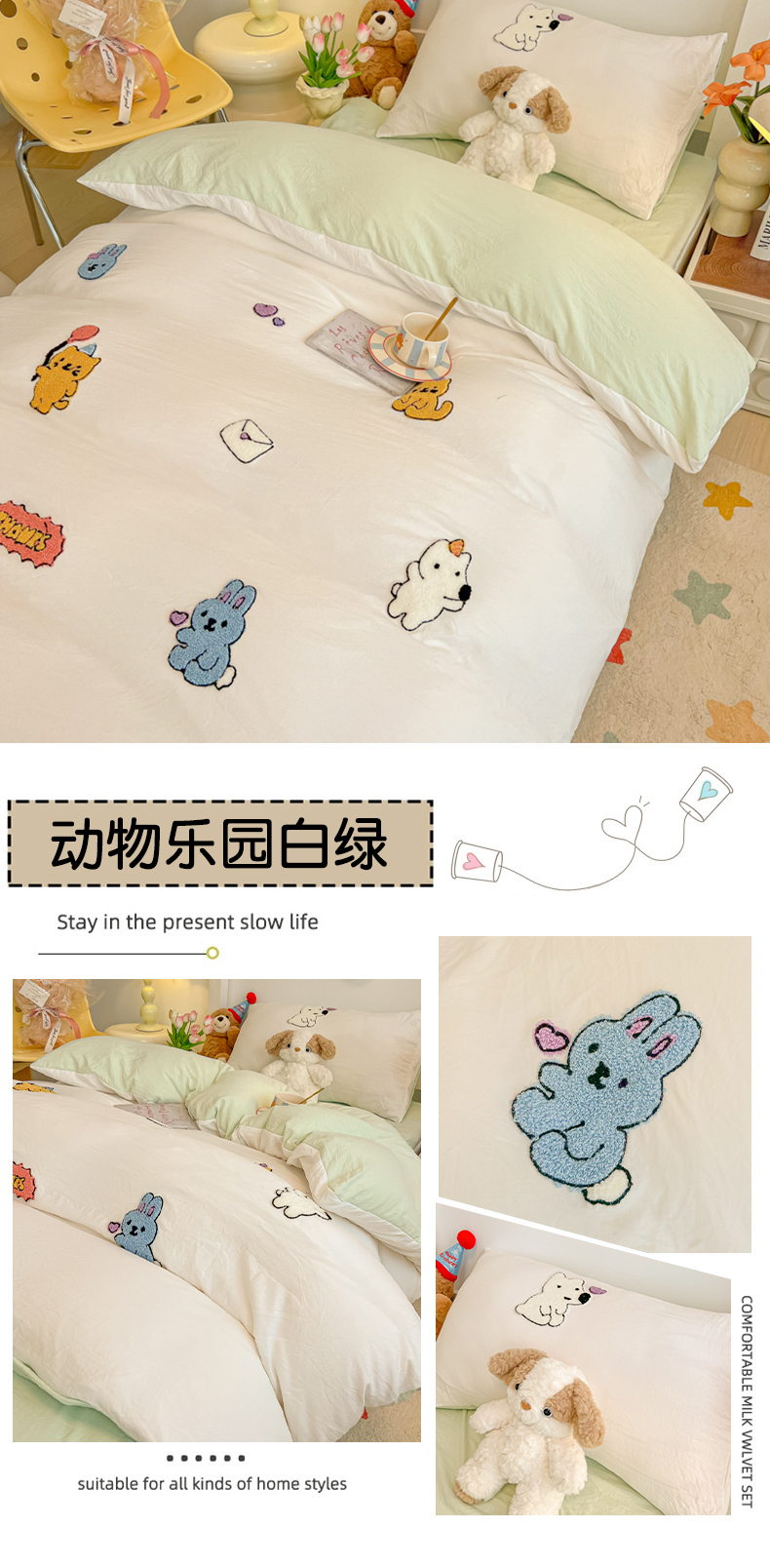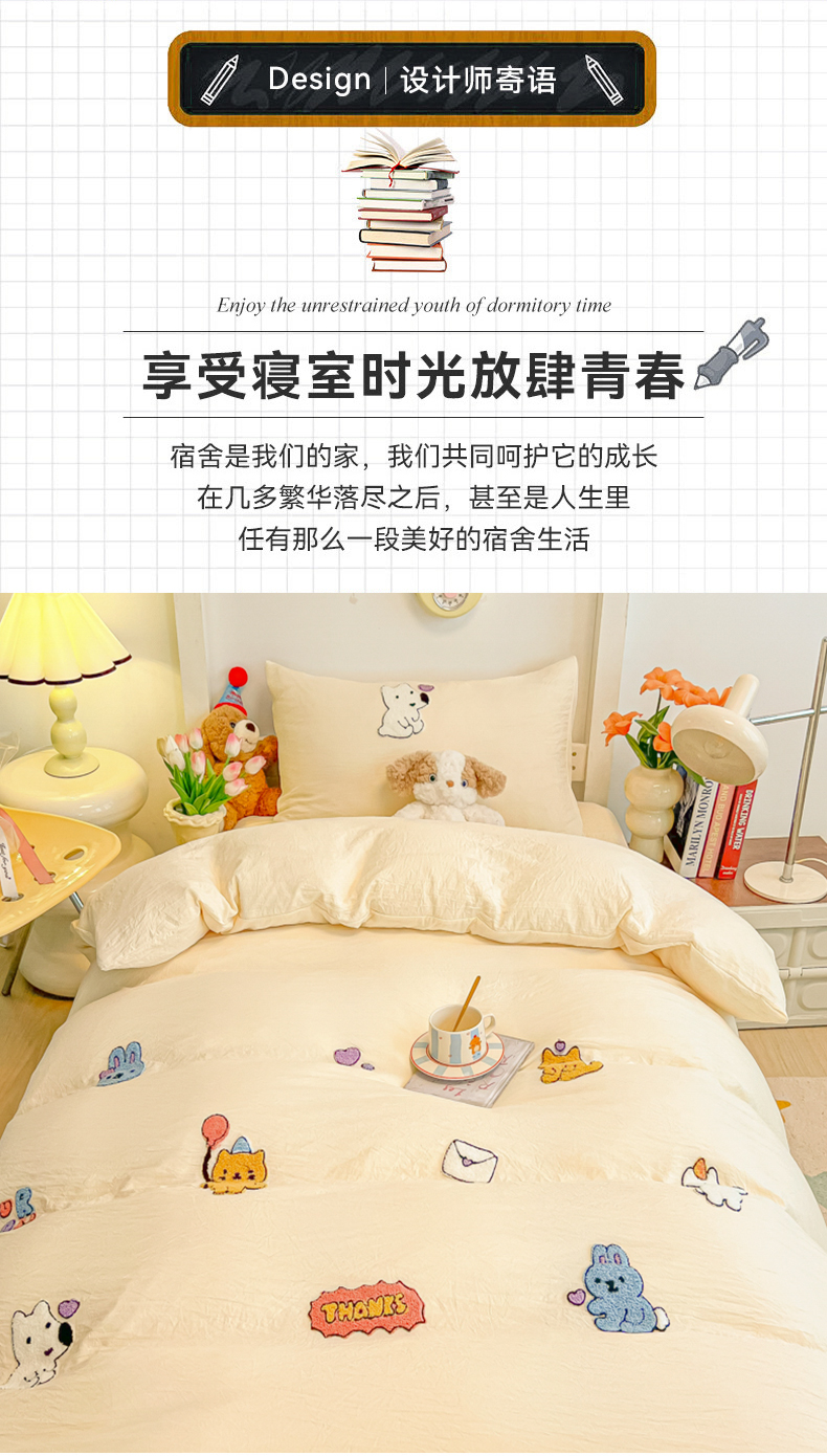商品名称:(总)韩巢家纺 2024新款学生宿舍寝室上下铺超柔水洗棉床单被套三件套-动物乐园