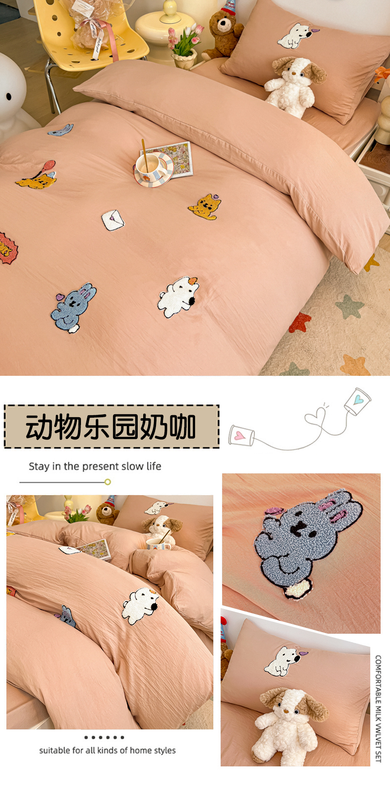 (总)韩巢家纺 2025新款高克重雪花绒牛奶绒四件套,田园兔(黄),爱心熊(绿),巴丽娜,丛林,大白鹅,大耳朵兔,蝶雅,动物世界,花花世界,欢乐小熊,灰色轨迹,咖色熊,库骆米,快乐熊猫,煤小球(粉),米菲,奶油小猫,七彩,天使女孩,小怪兽,小煤球,幸运兔,英伦熊,郁金香