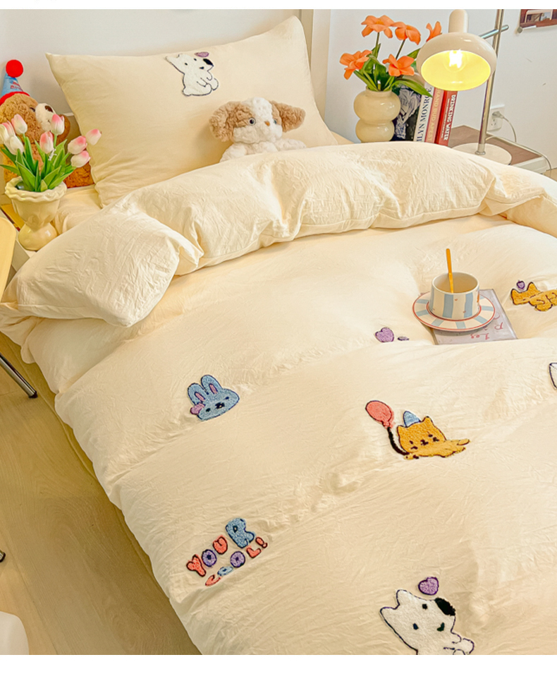 (总)韩巢家纺 2025新款水洗棉大花边被套四件套直播热销款学生宿舍被罩床单三件套(提供卖家秀),春日与玫瑰【大花边款】,繁花似梦【大花边款】,花时宇间【大花边款】,灰蒙小狗【大花边款】,久期诗朵-黄【大花边款】,可可腊肠犬【大花边款】,奶油樱桃【大花边款】,软糖猫【大花边款】,甜樱恋曲【大花边款】,温暖粉心【大花边款】,小花野-紫【大花边款】,小熊冰淇淋【大花边款】,星梦蝶结【大花边款】,幸运可爱兔【大花边款】,摘樱桃的小熊【大花边款】