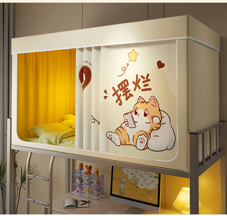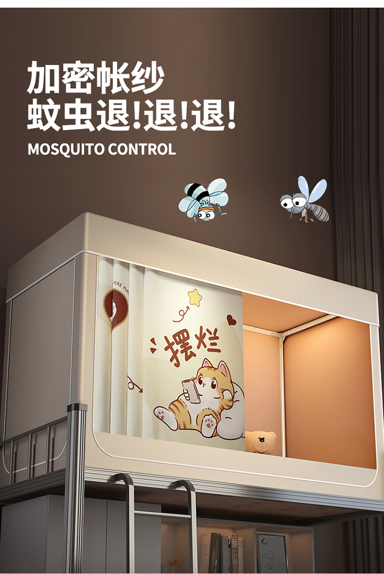 2024新款学生宿舍强遮光坐床蚊帐 米色-努力喵