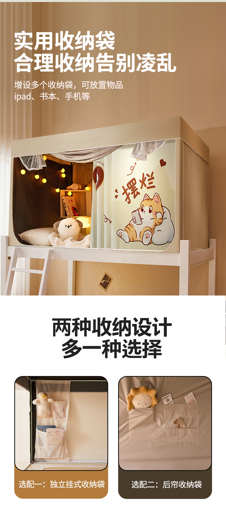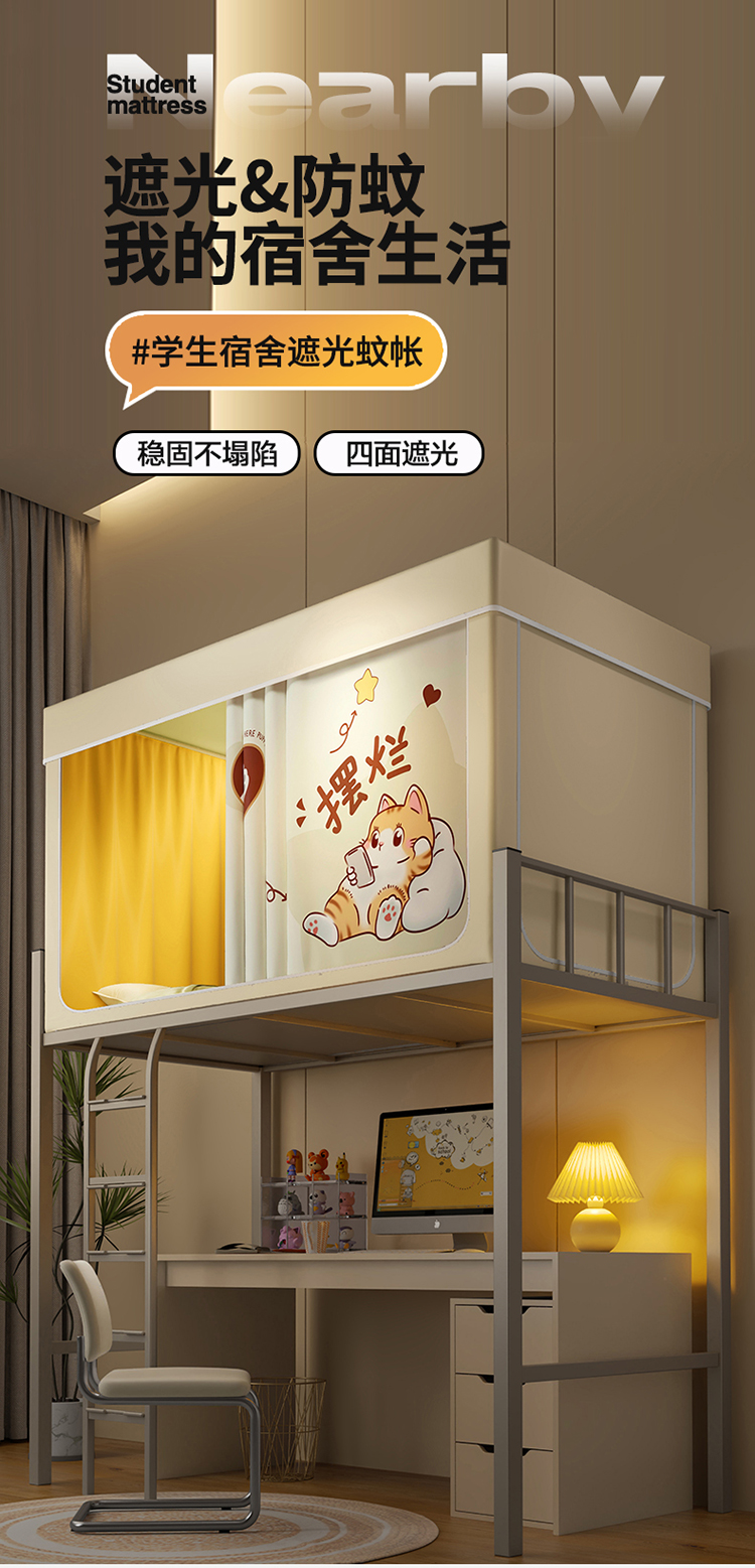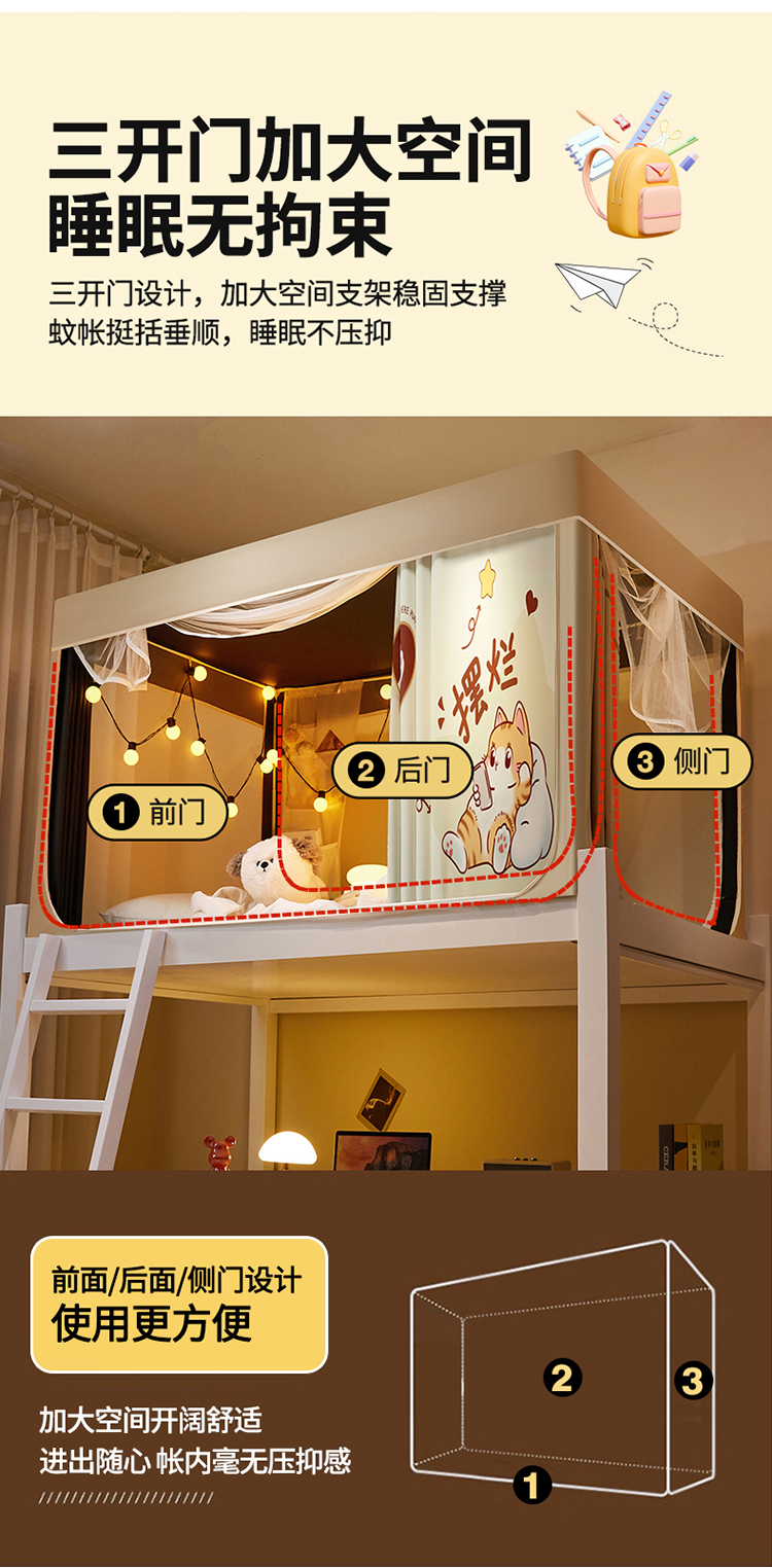 商品名称:2024新款学生宿舍强遮光坐床蚊帐 米色-努力喵