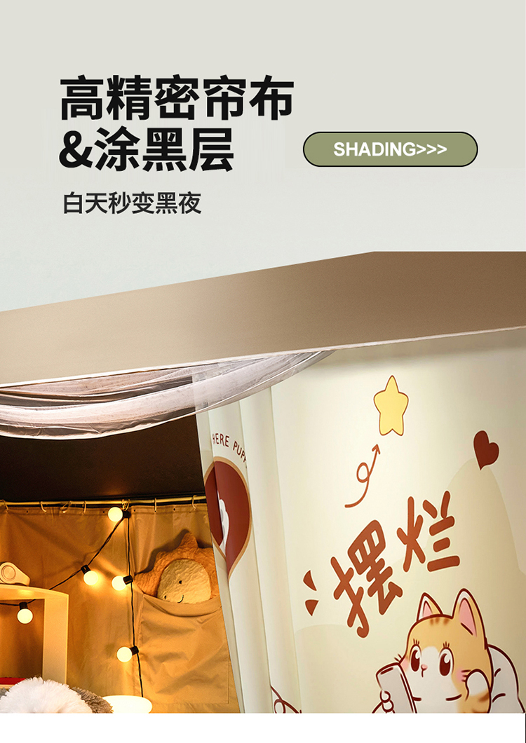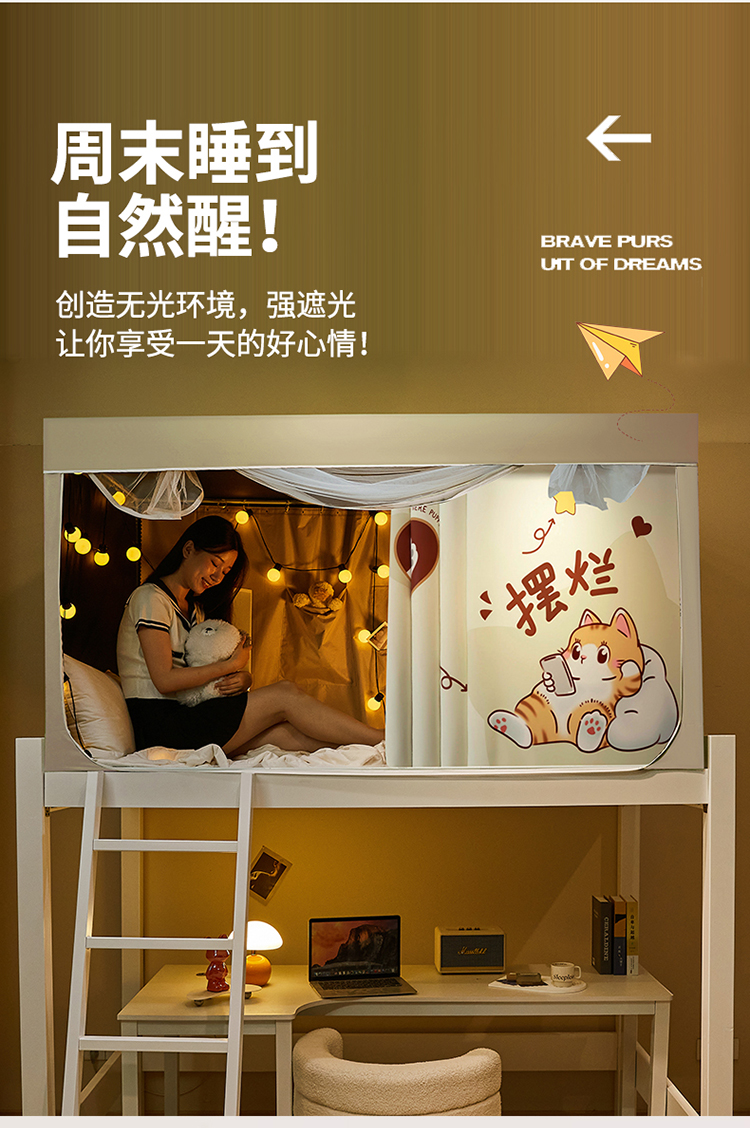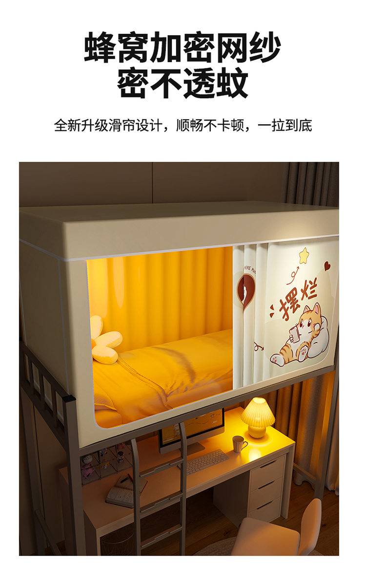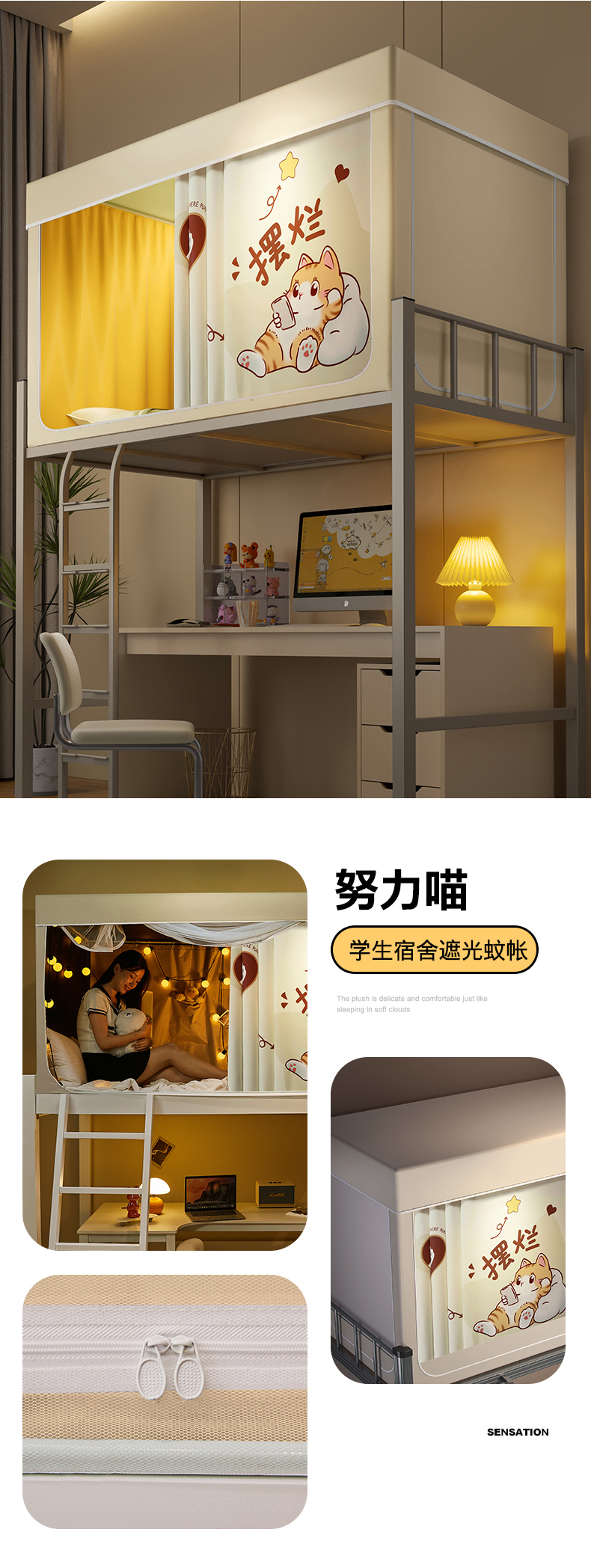 商品名称:2024新款学生宿舍强遮光坐床蚊帐 米色-努力喵
