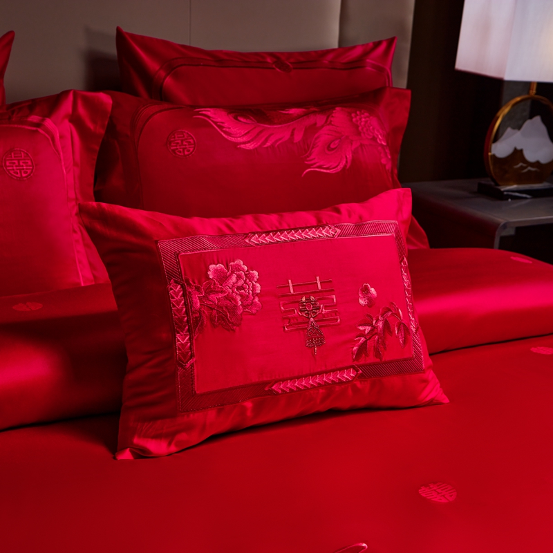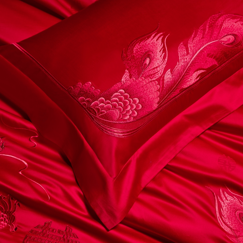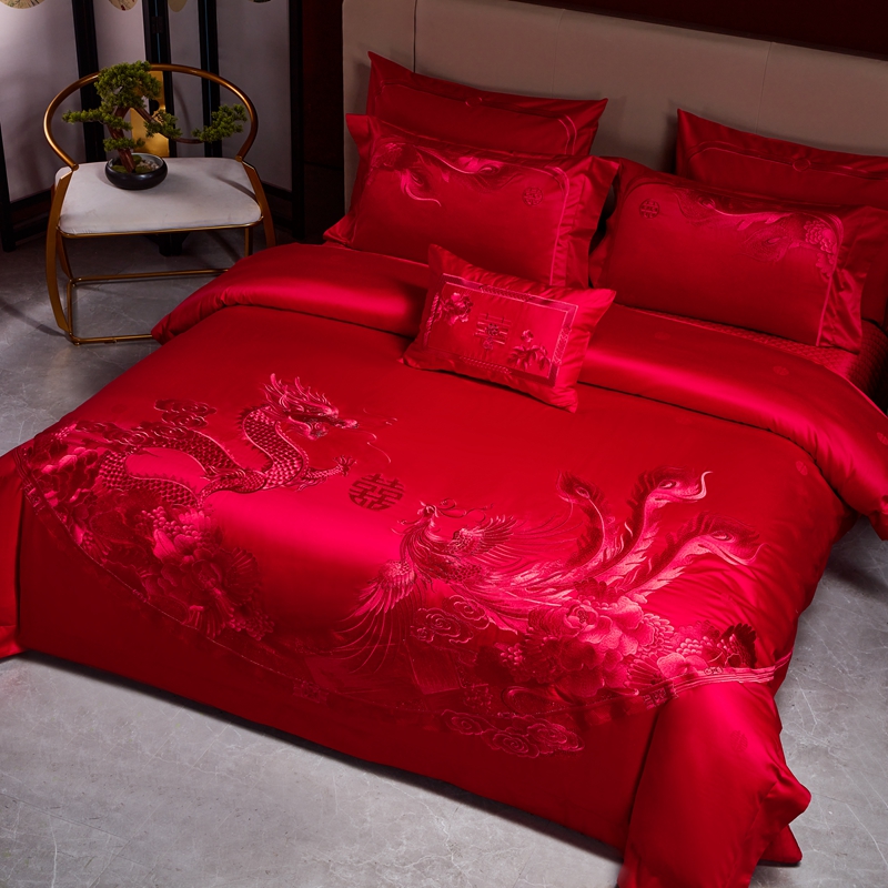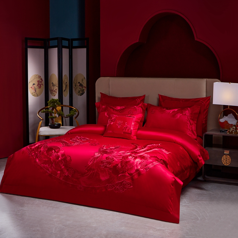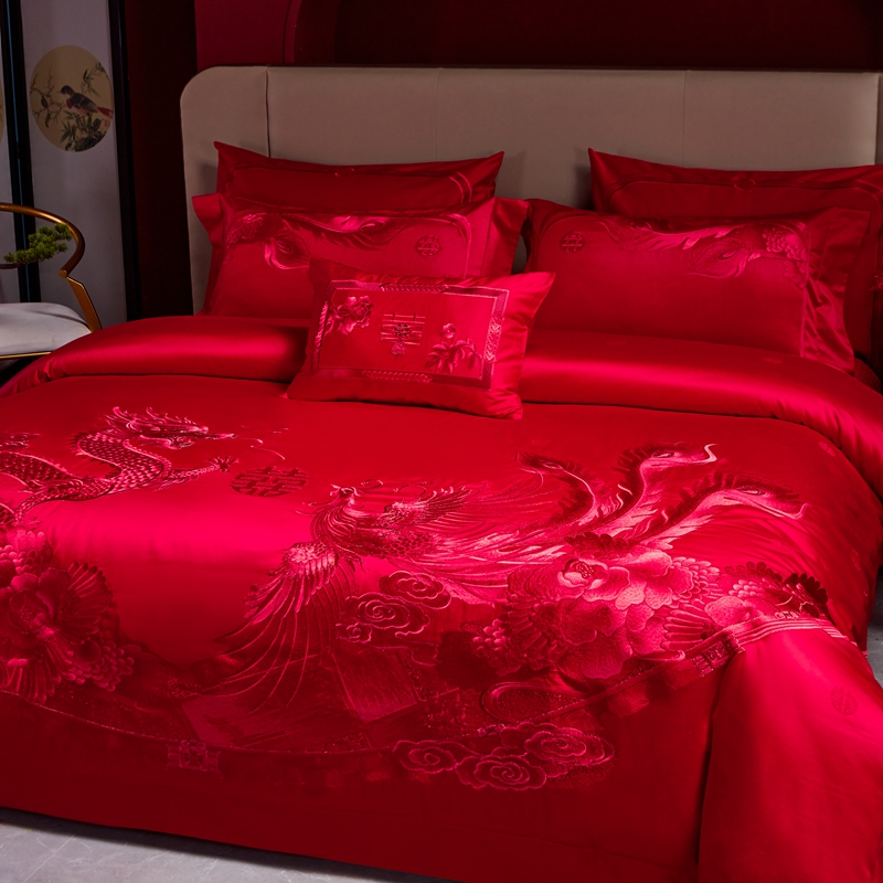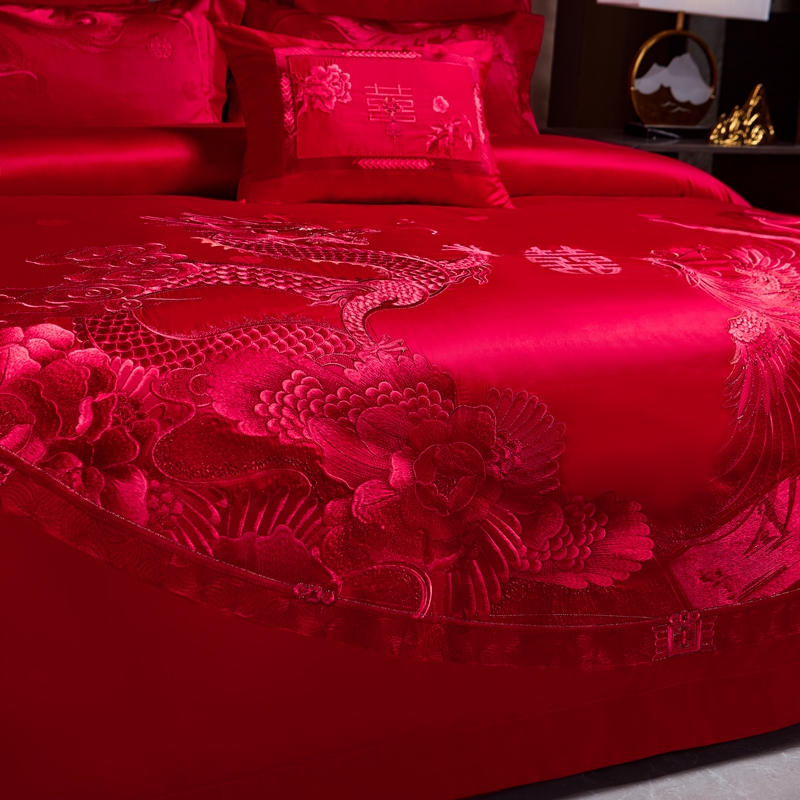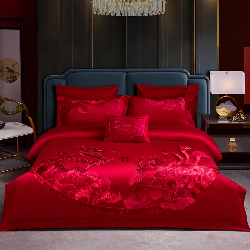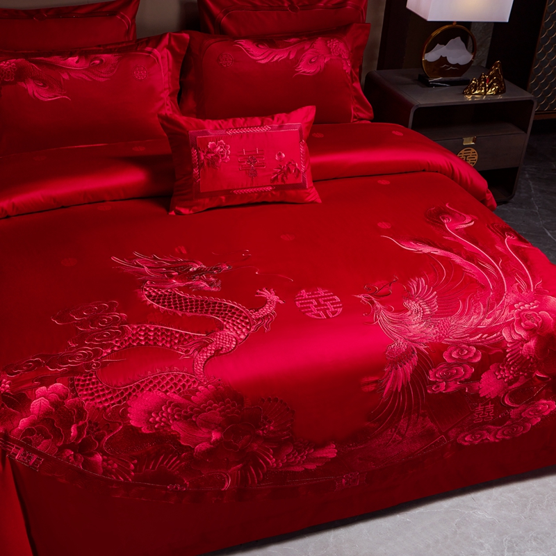 当前位置: 91家纺网 > 商品网购 > 床品套件 > 四件套 > 婚庆四件套 > 美娘阁 2025新款长绒棉贡缎提花款新中式古典韵味精美刺绣婚庆四件套多件套 龙跃凤鸣(红)