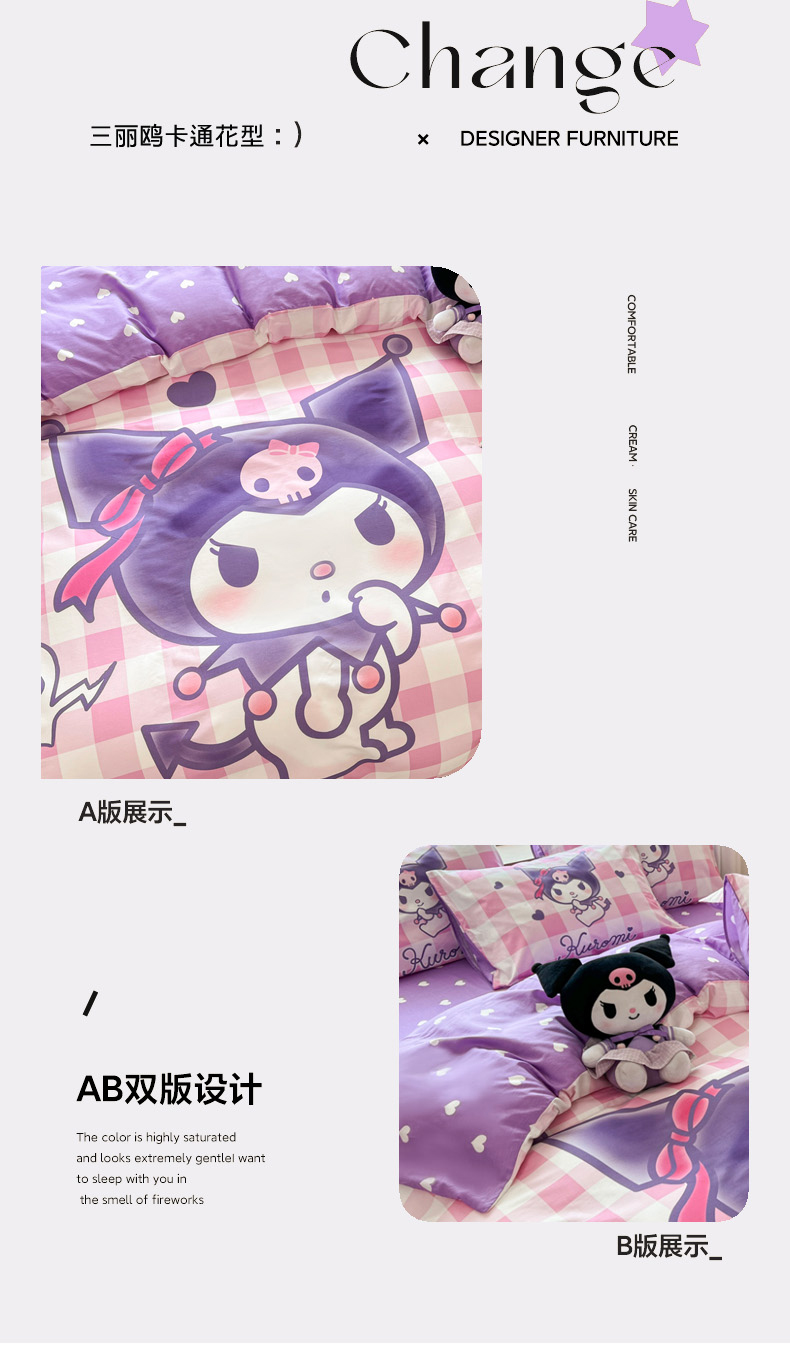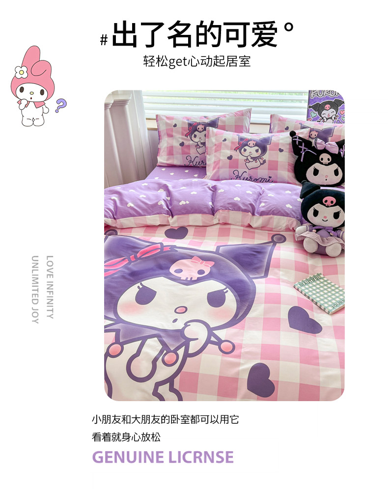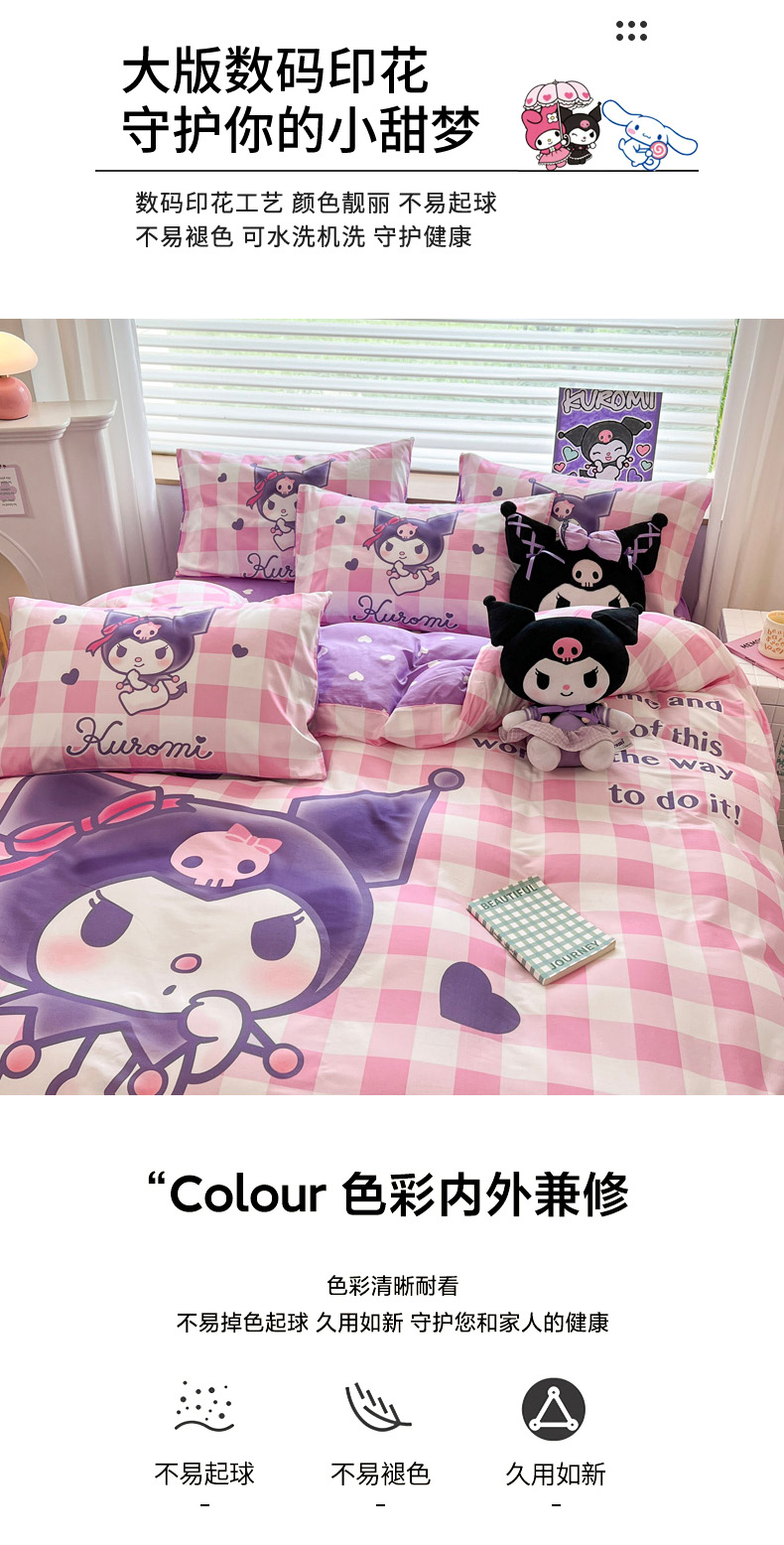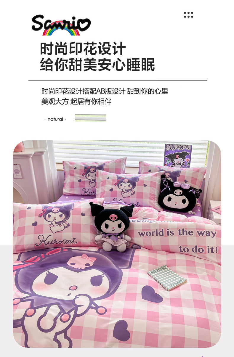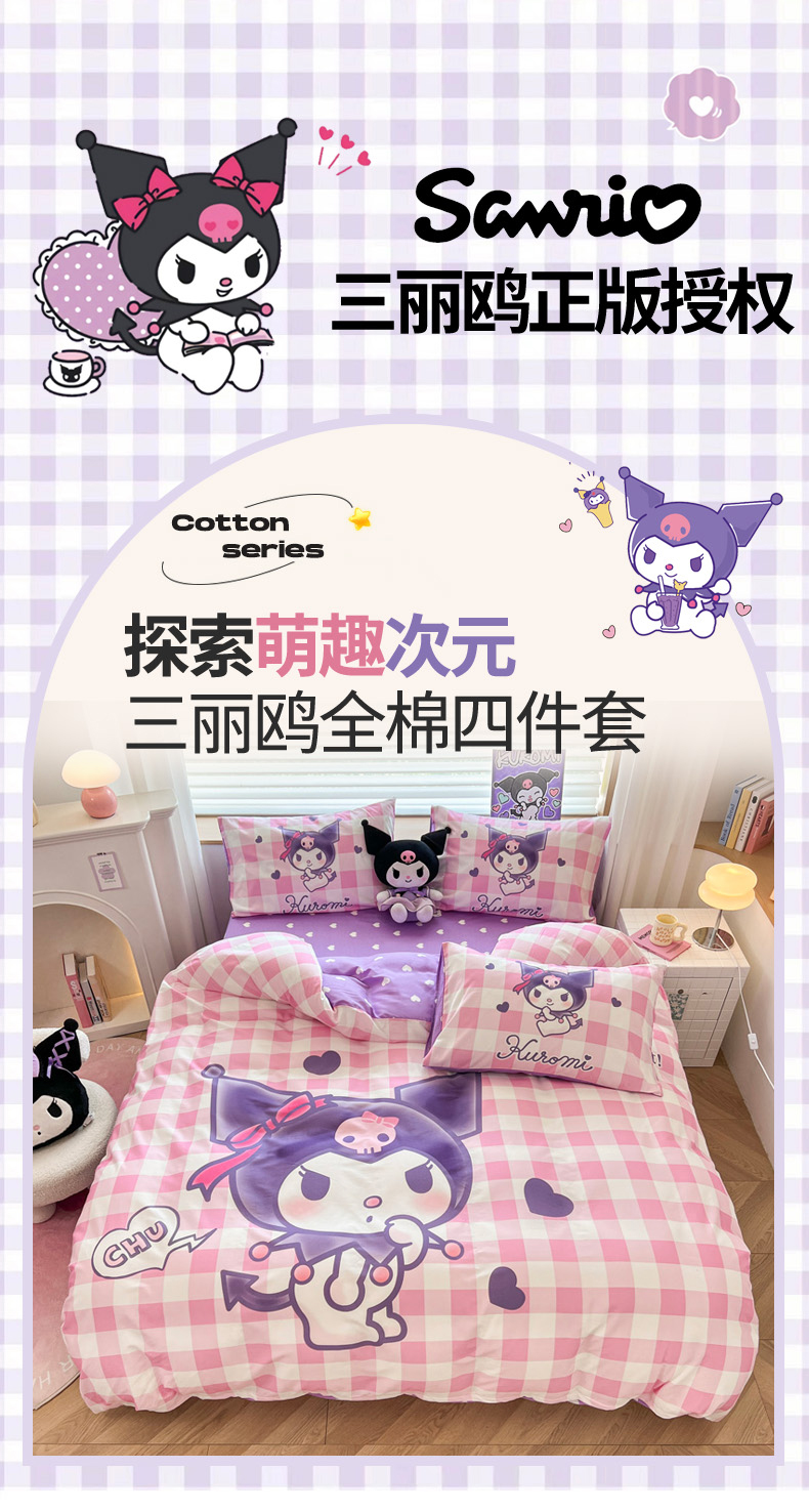 当前位置: 91家纺网 > 商品网购 > 床品套件 > 四件套 > 全棉普通四件套 > 暮思家居 2024新款正版授权三丽鸥大阪全棉数码印花纯棉四件套 大版-格子库洛米