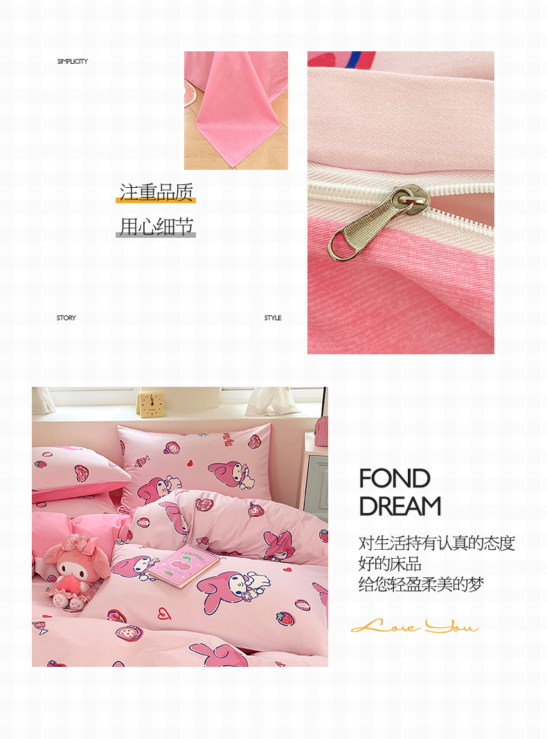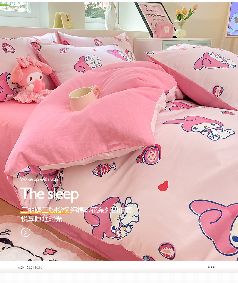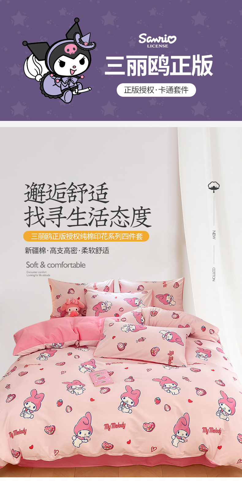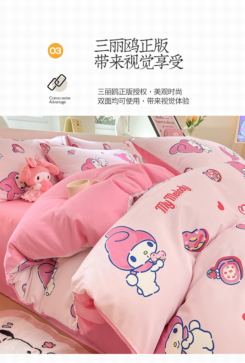当前位置: 91家纺网 > 商品网购 > 床品套件 > 四件套 > 全棉普通四件套 > 桃子家居 2024新款三丽鸥正版授权卡通纯棉印花系列四件套 棉三丽鸥-甜甜圈美乐蒂