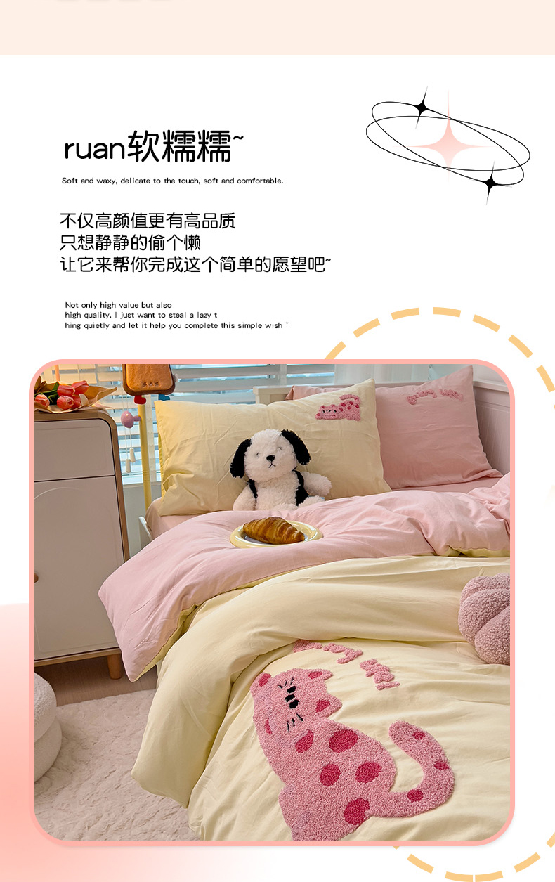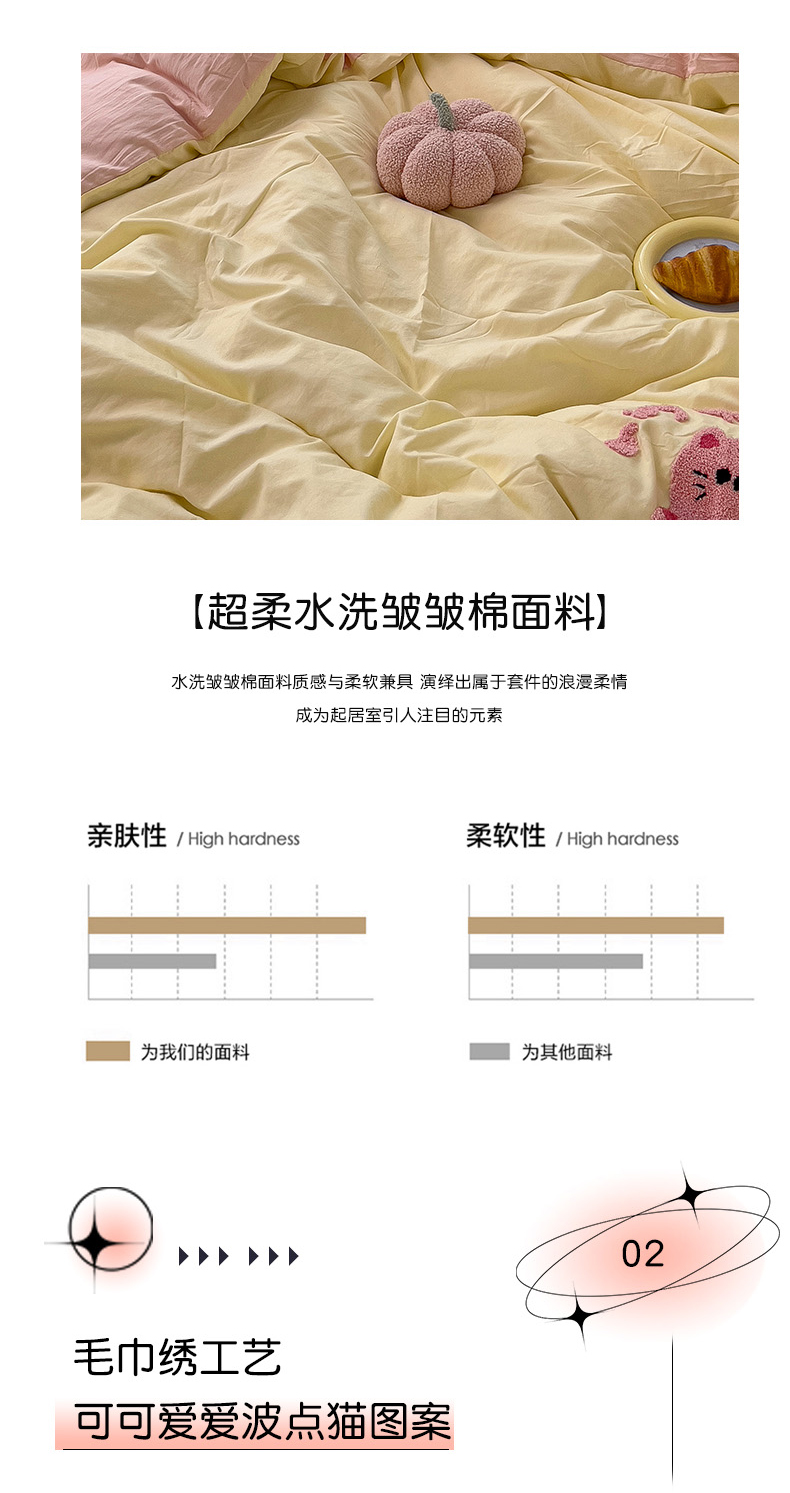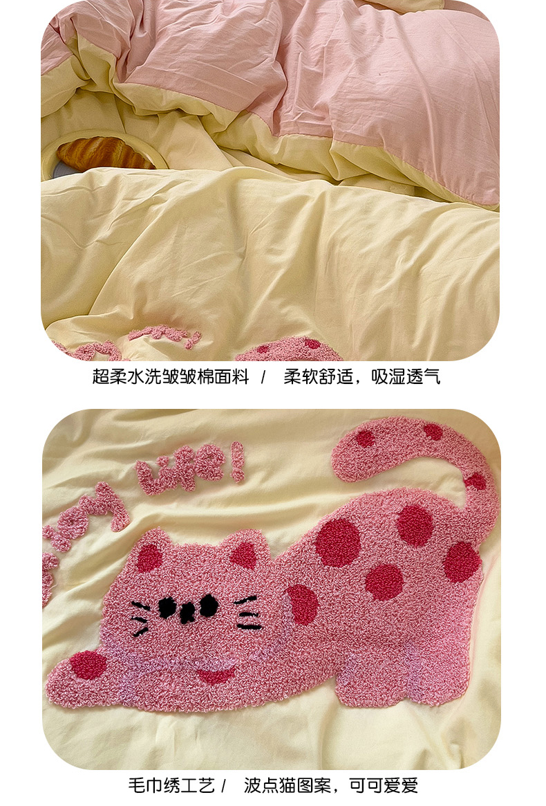 当前位置: 91家纺网 > 商品网购 > 床品套件 > 四件套 > 其它四件套 > 奈颜 2024新款超柔水洗棉波点猫毛巾绣四件套 波点猫-米粉