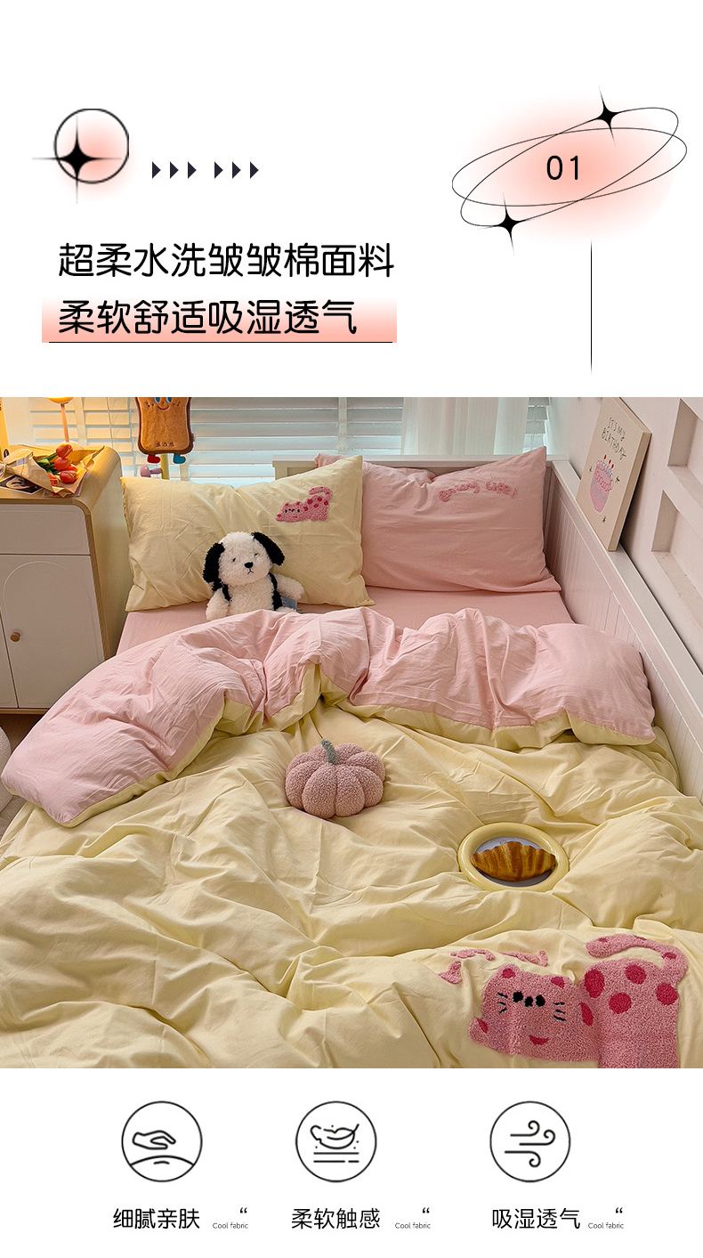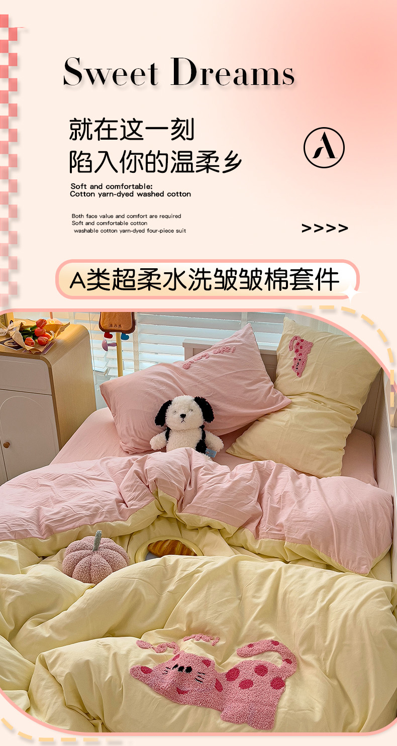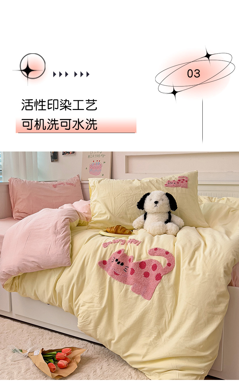 当前位置: 91家纺网 > 商品网购 > 床品套件 > 四件套 > 其它四件套 > 奈颜 2024新款超柔水洗棉波点猫毛巾绣四件套 波点猫-米粉