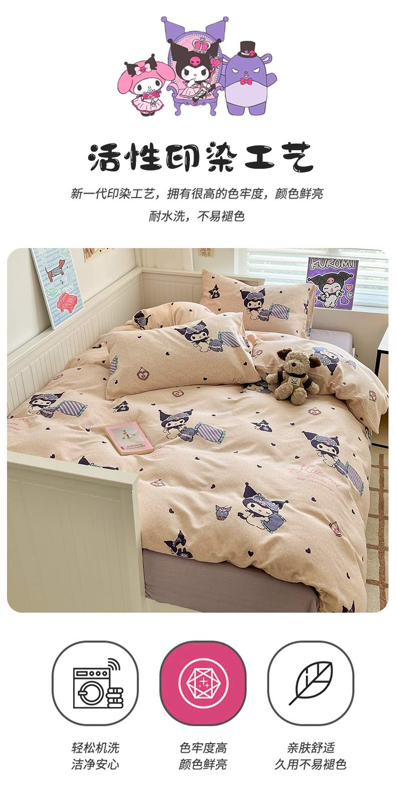 当前位置: 91家纺网 > 商品网购 > 床品套件 > 四件套 > 普通磨毛四件套 > 卧趣家纺 2024秋冬新款三丽鸥正版授权原棉磨毛卡通系列四件套 糖果库洛米