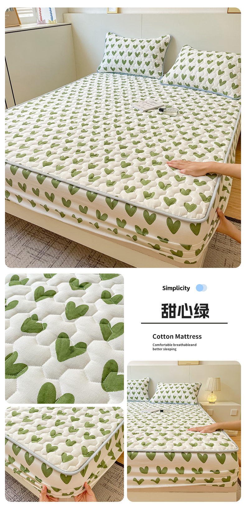 商品名称:予梦家纺 2024新款水洗棉印花夹棉床笠 甜心绿