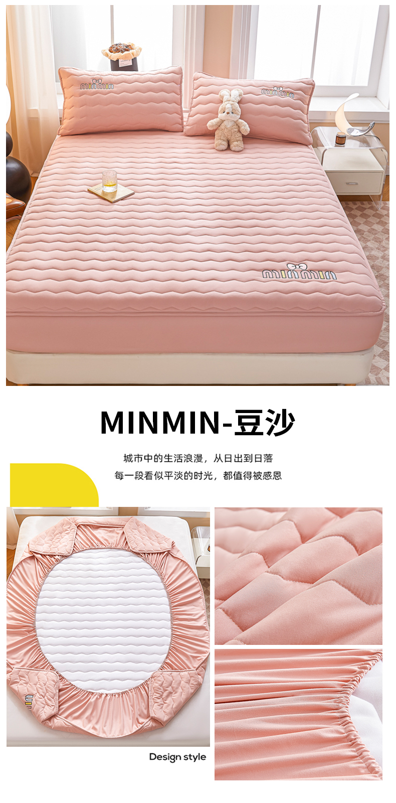 九亭家纺 2024新款A类大豆刺绣夹棉床笠 MINMIN-豆沙