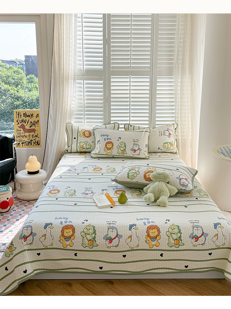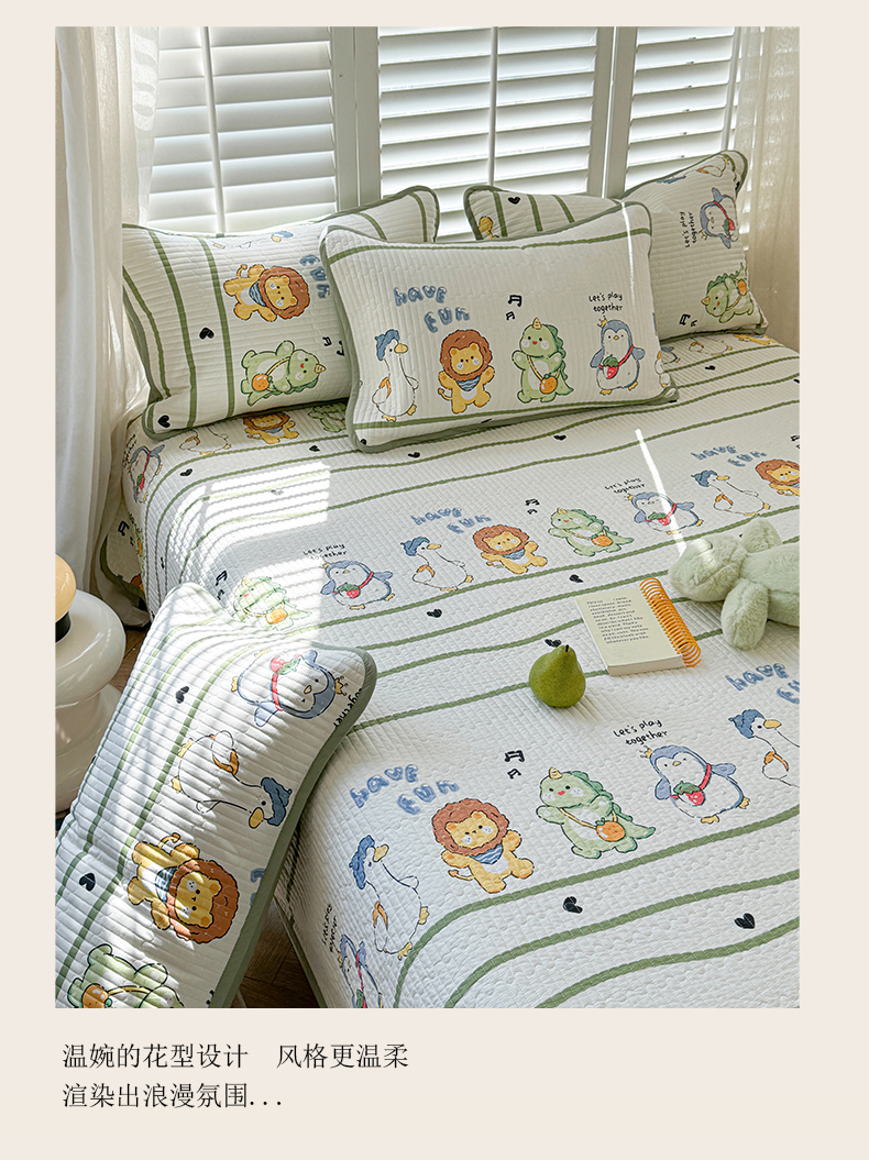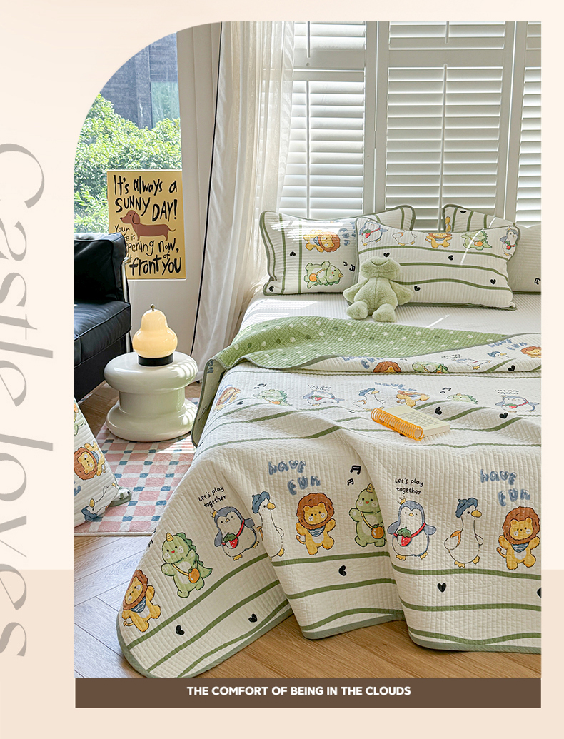 茉夕家纺 2024新款双面全棉夹棉床盖系列 萌宠乐园