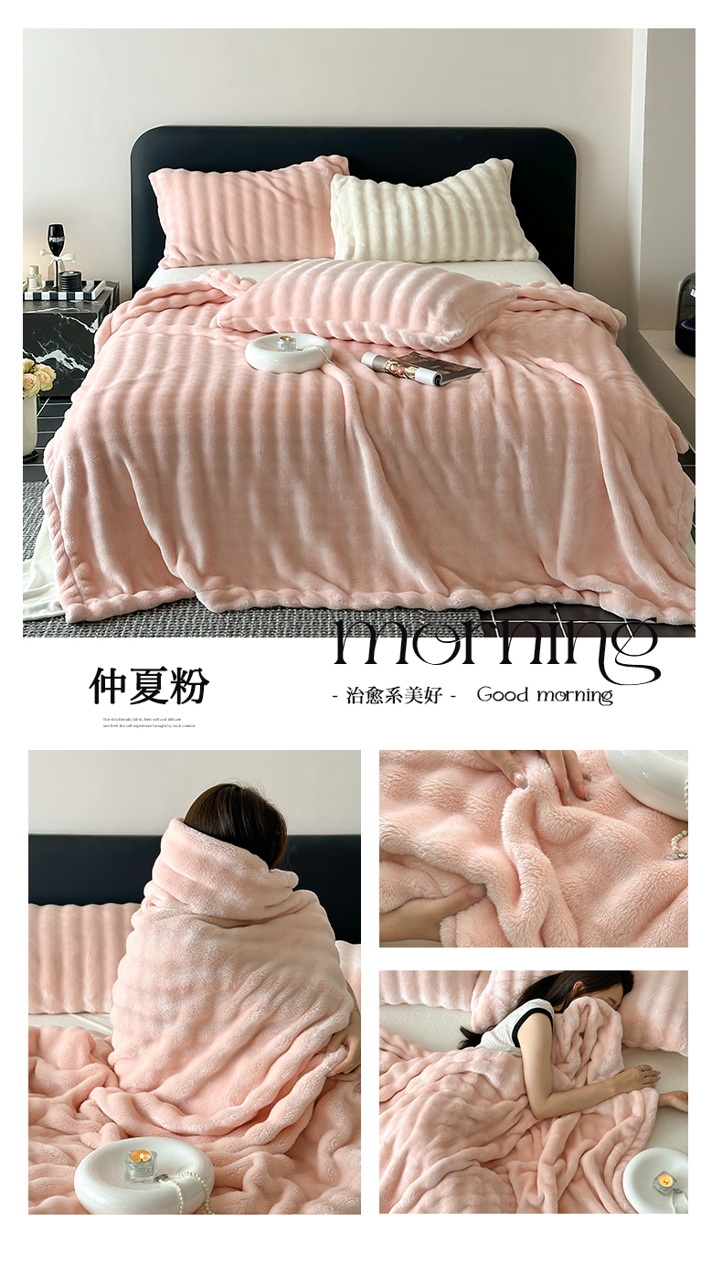 商品名称:桃喜 2024新款A类亲肤舒适秋冬兔毛毛毯 仲夏粉