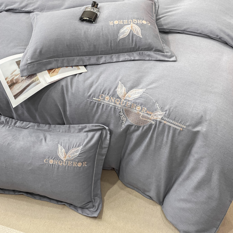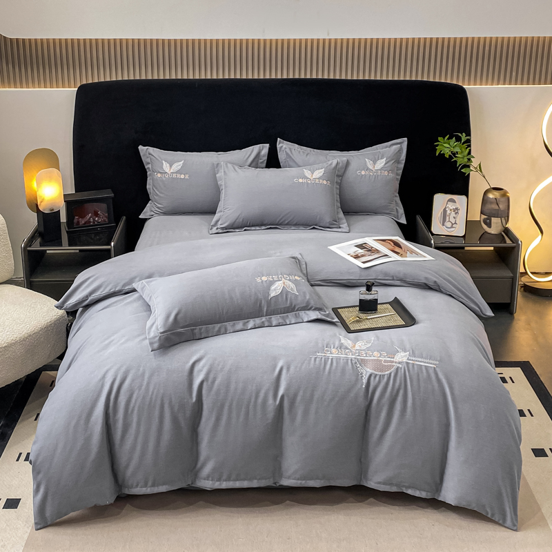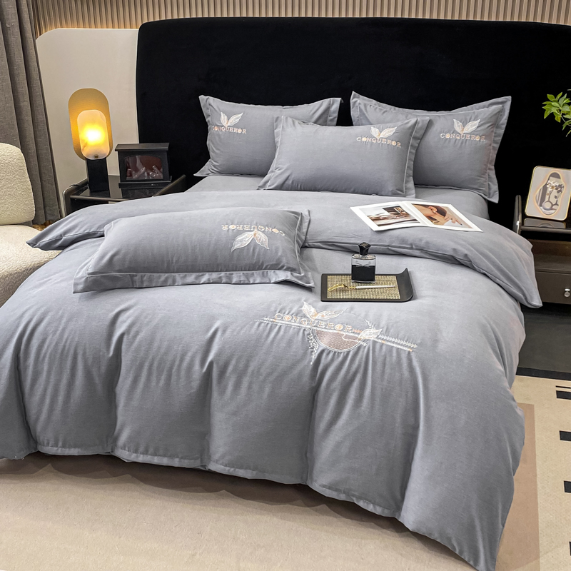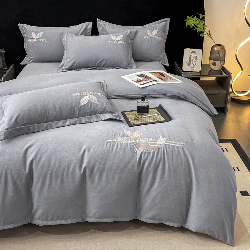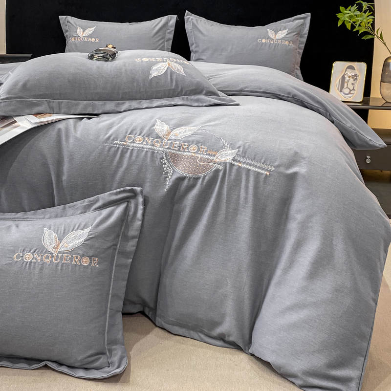 昊翔家纺 2025新款全棉磨毛绣花四件套叶之秋-罗马灰