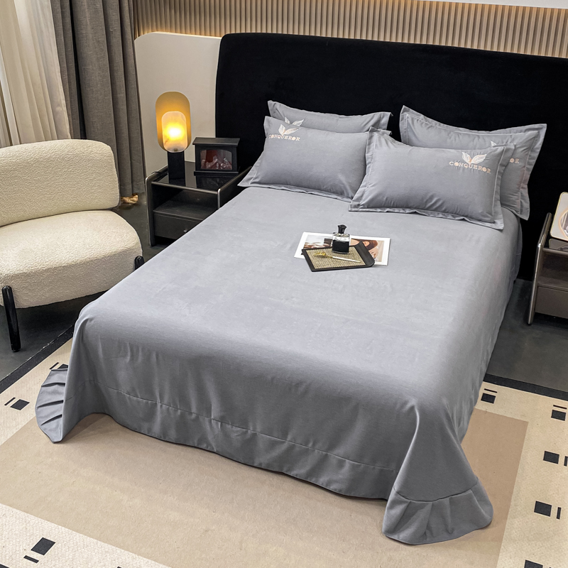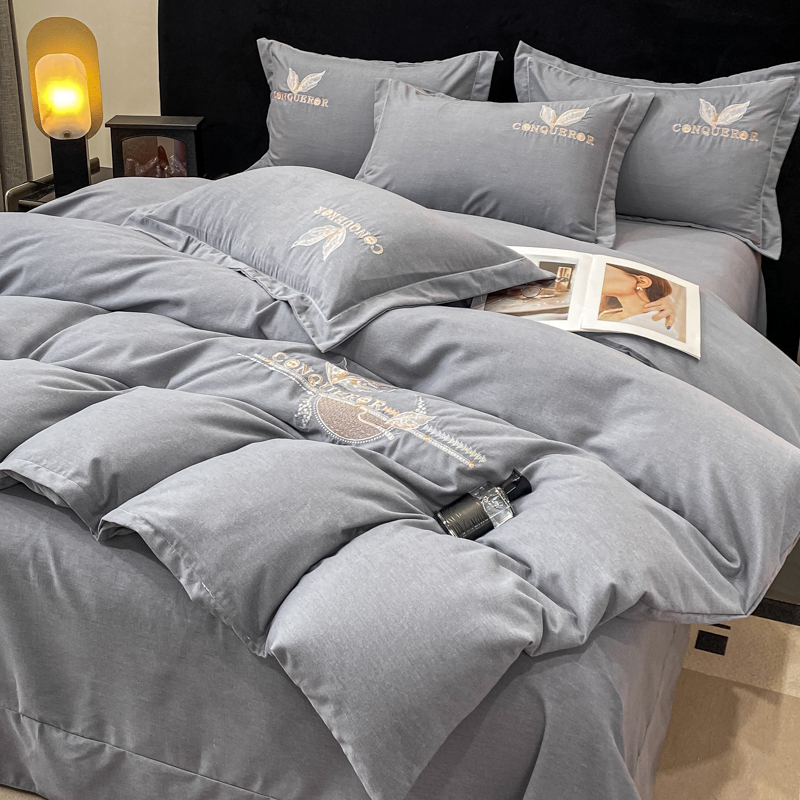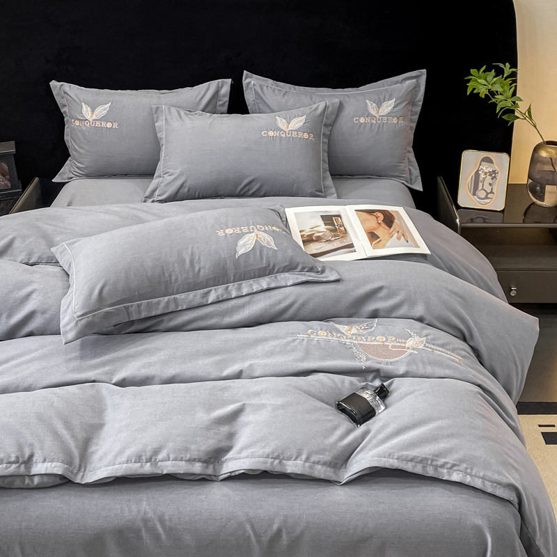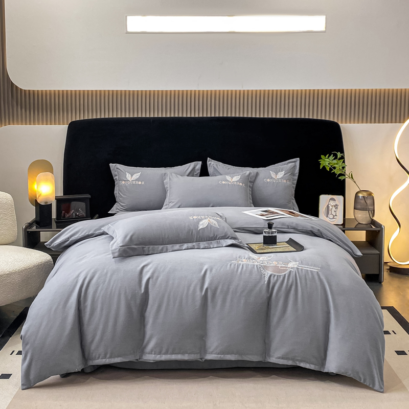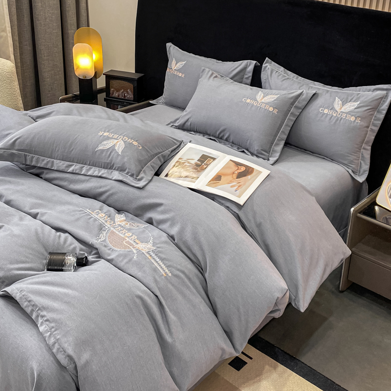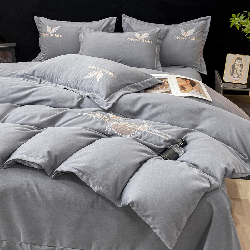 昊翔家纺 2025新款全棉磨毛绣花四件套叶之秋-罗马灰