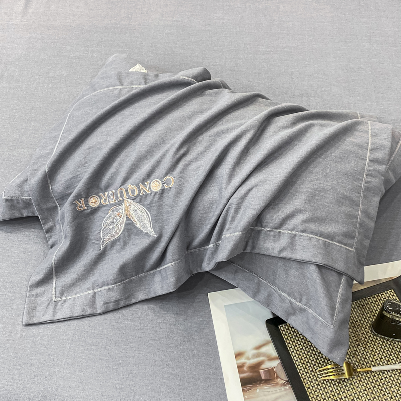 商品名称:昊翔家纺 2025新款全棉磨毛绣花四件套叶之秋-罗马灰
