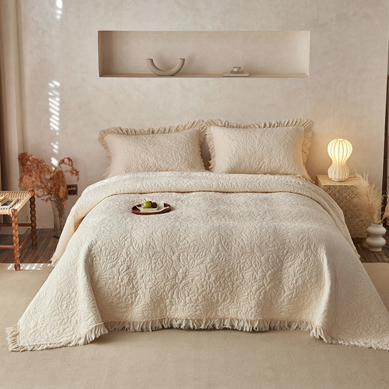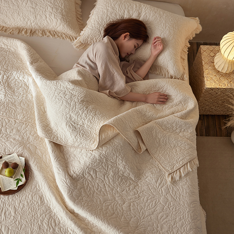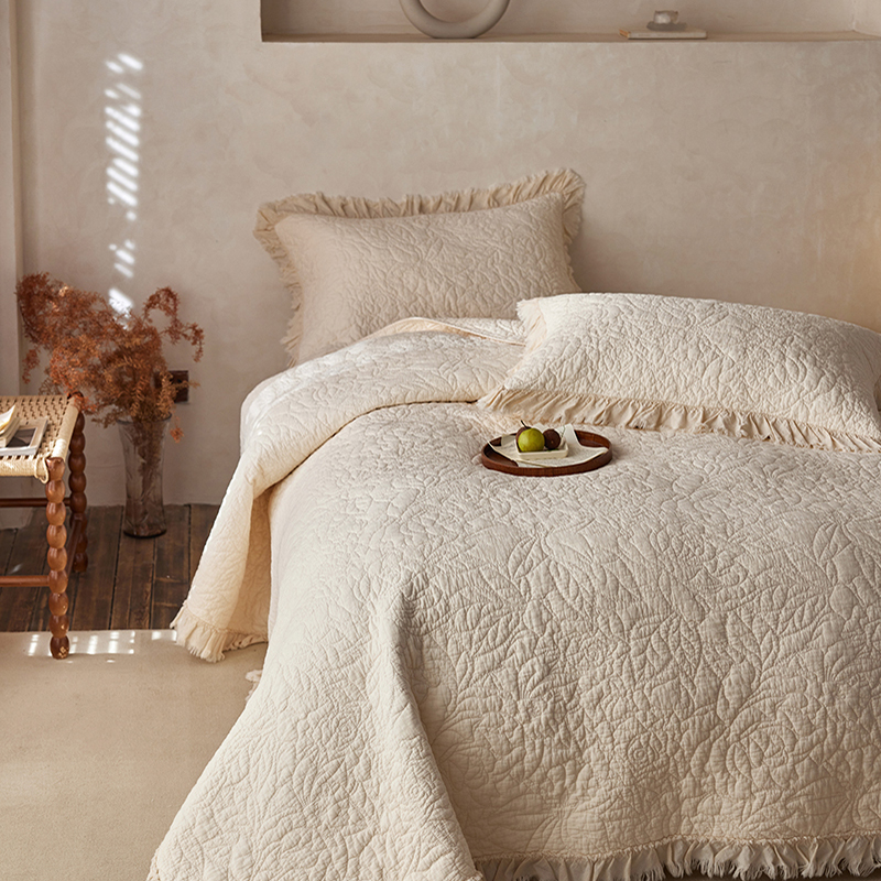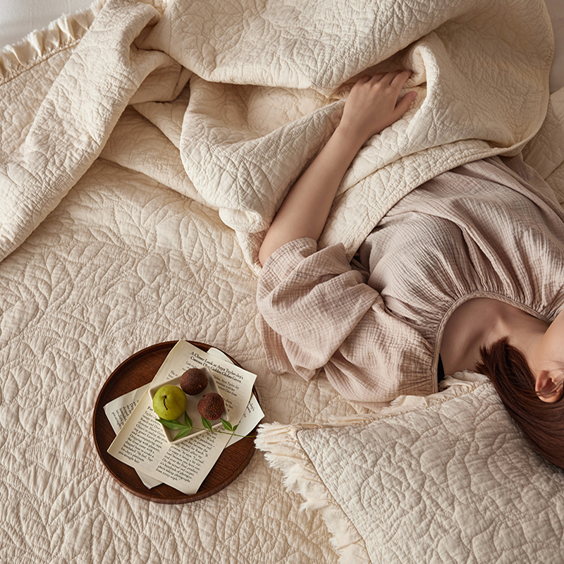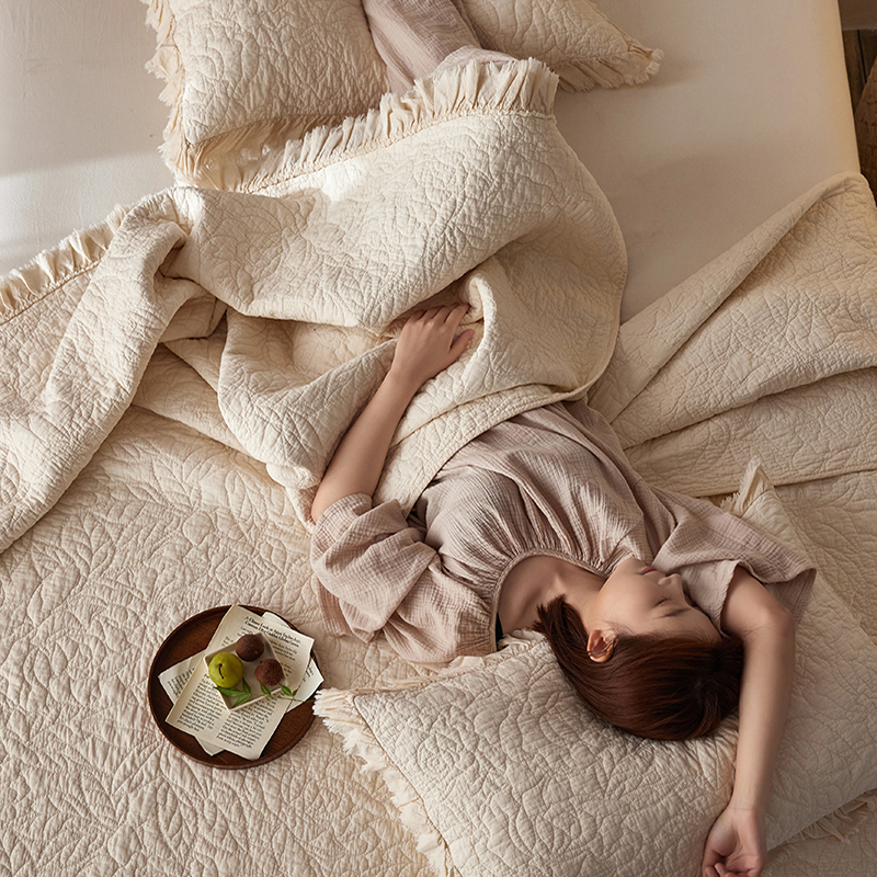 安莱生活 2024新品百分百全棉密道绗缝成品酵素洗多功能床盖三件套 晓薇