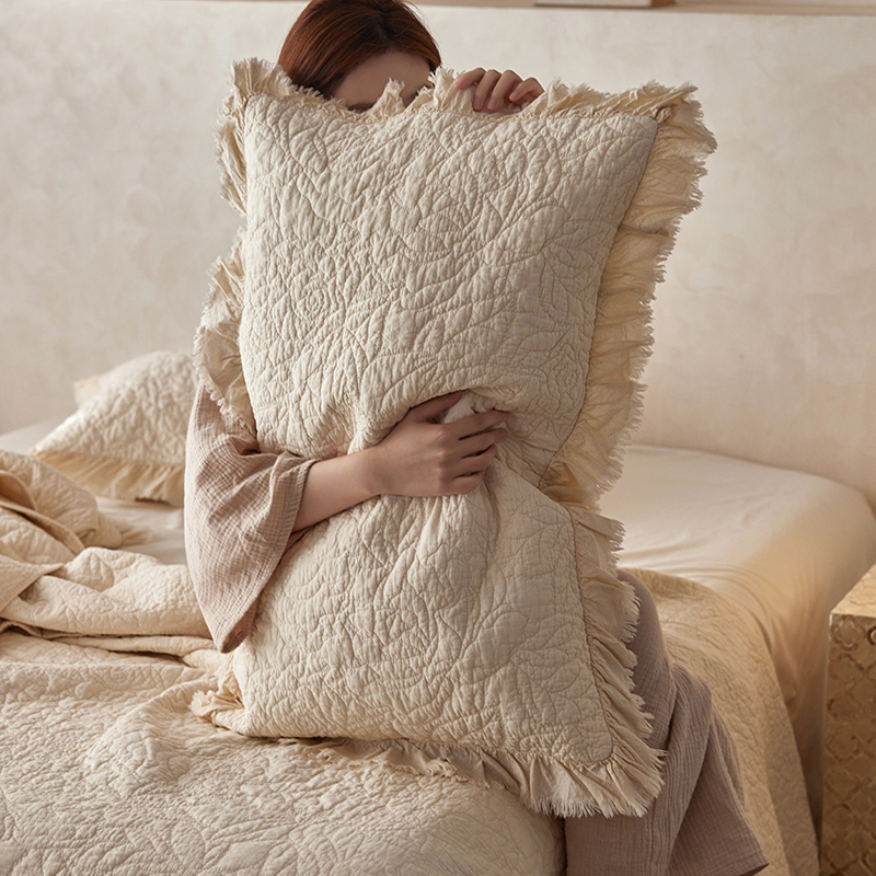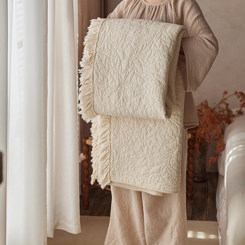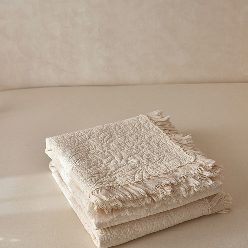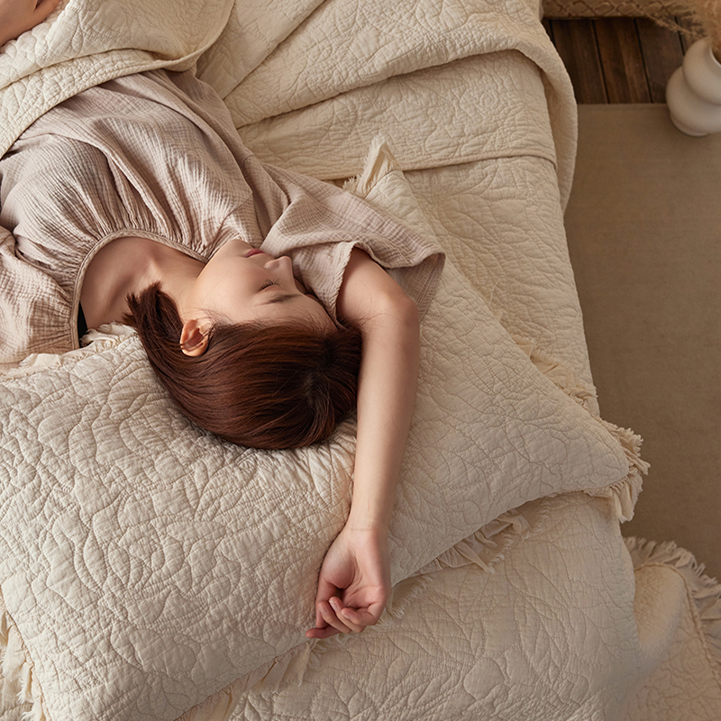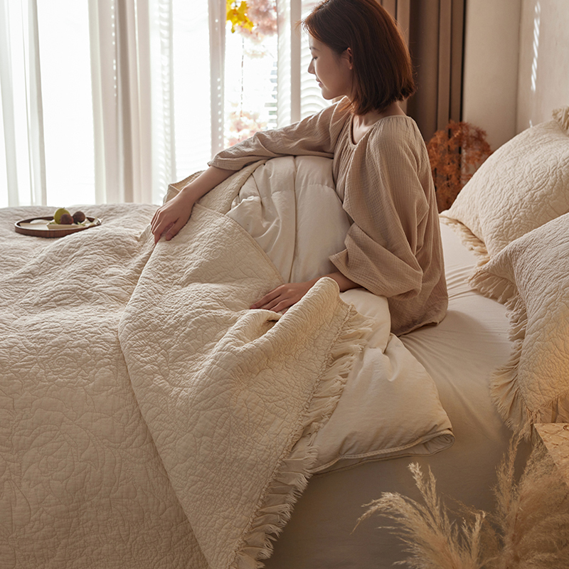 安莱生活 2024新品百分百全棉密道绗缝成品酵素洗多功能床盖三件套 晓薇