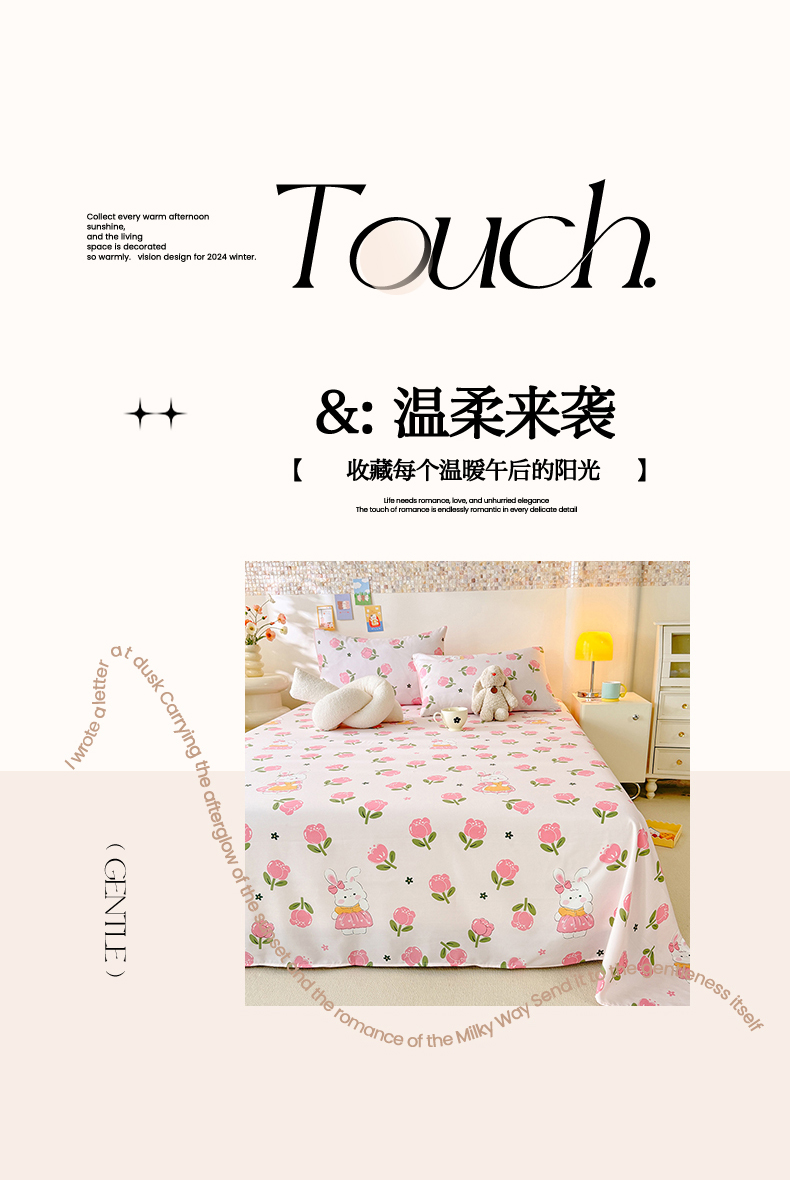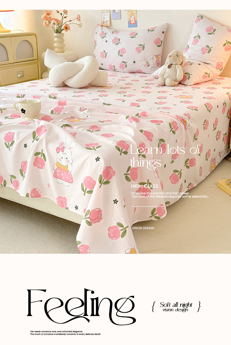 妖妖家纺 2024新款超柔软糯水洗云朵棉印花单床单 香香兔