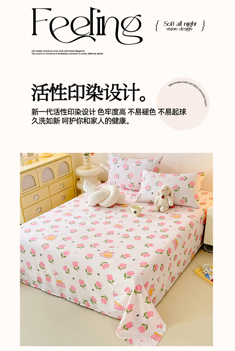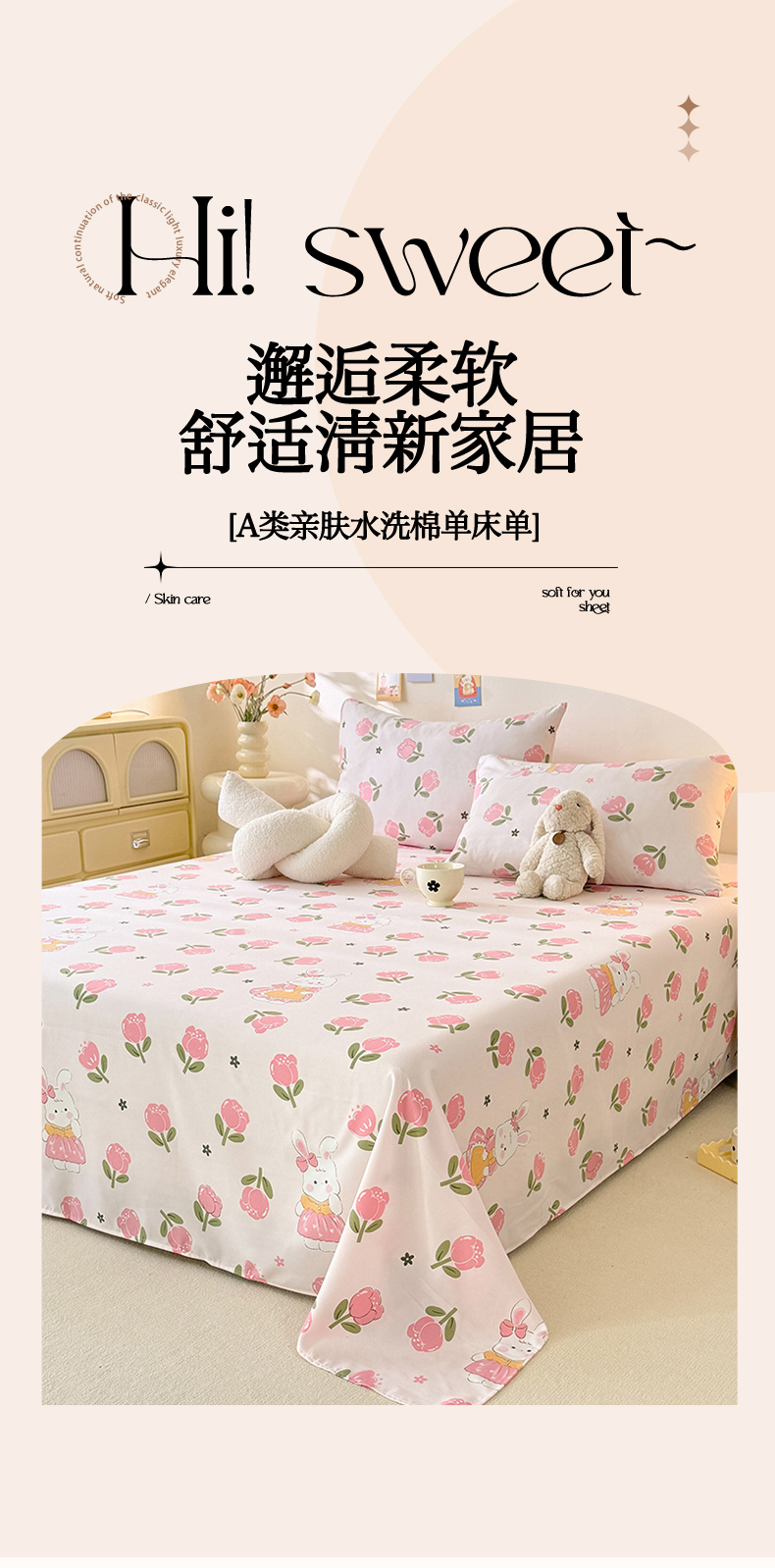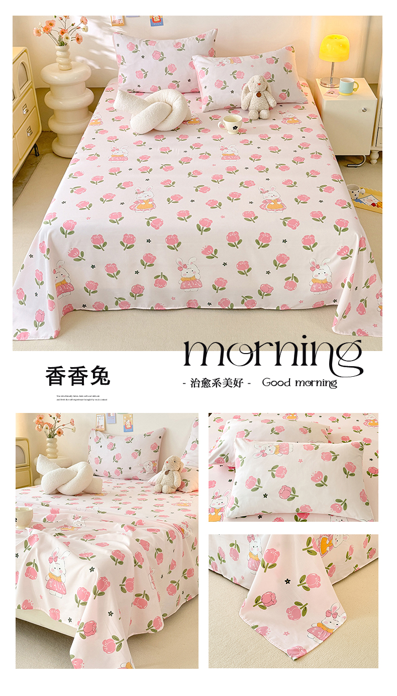 商品名称:妖妖家纺 2024新款超柔软糯水洗云朵棉印花单床单 香香兔