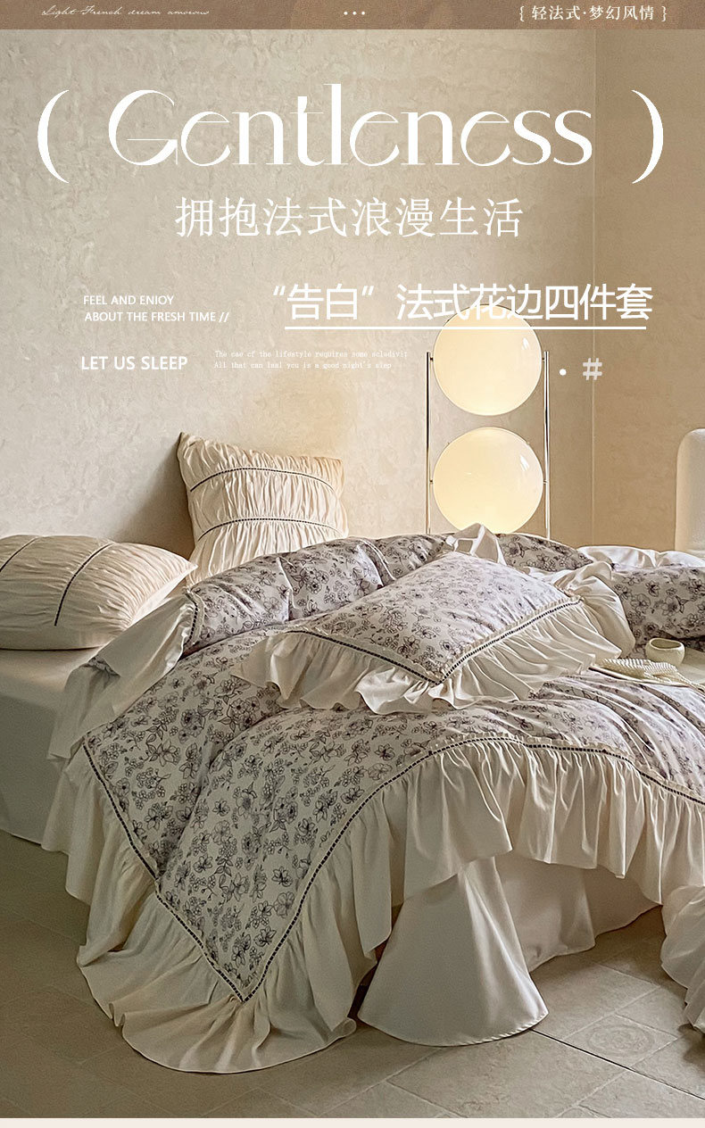 (总)FORTWO家纺原创设计(FOR TWO家纺) 2026新款50长绒棉印花+绣花荷叶花边系列四件套 会员-20(券前)基础价不低于中号388元,大号418元 床笠加10元,布丁莓,朵朵花,枕花眠