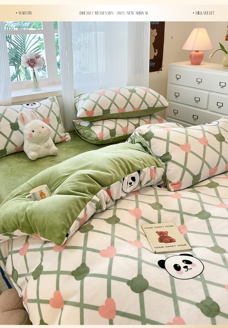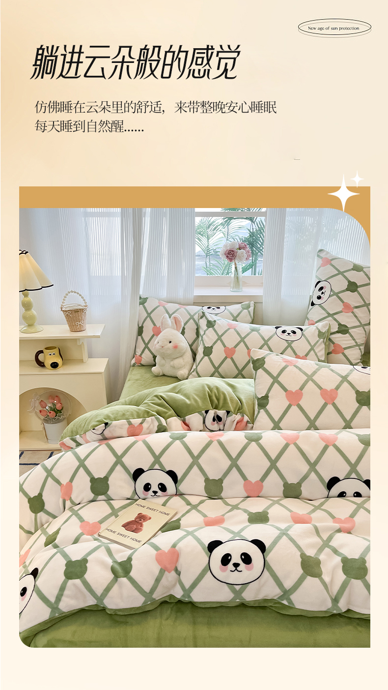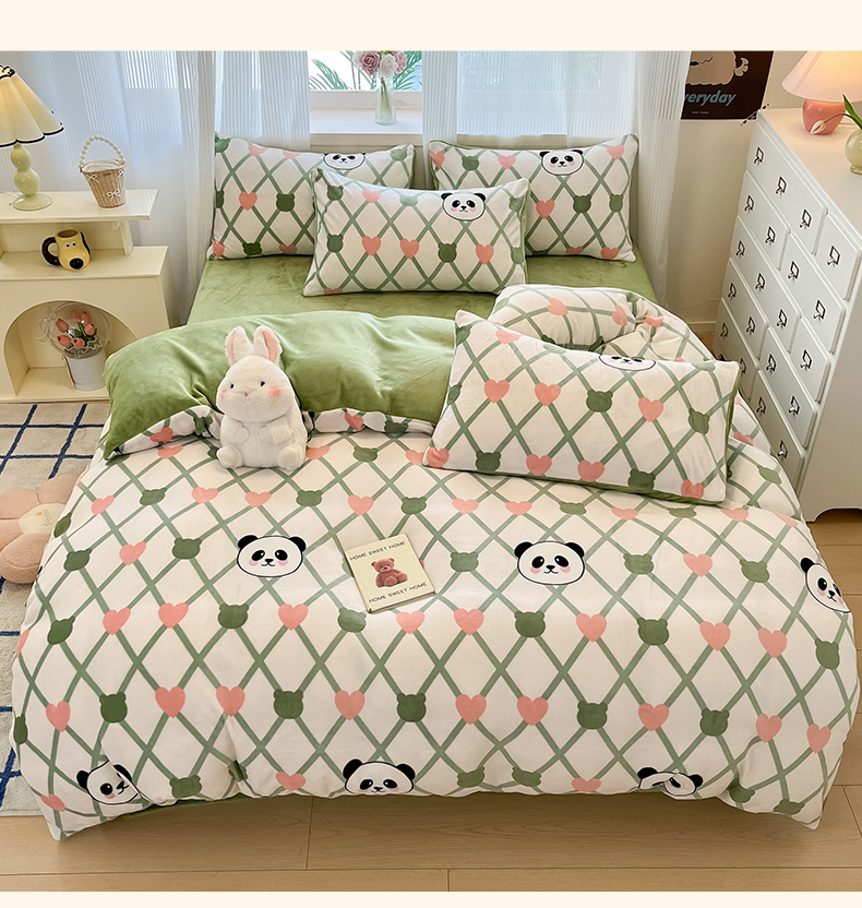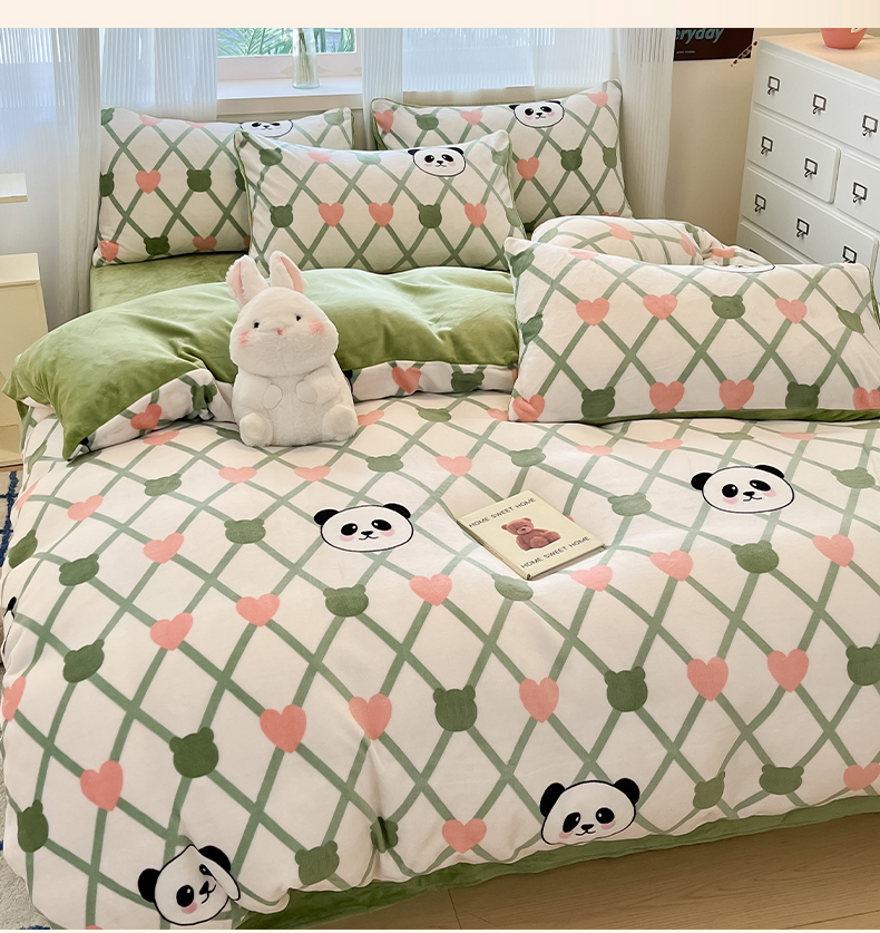 绘萱家居 2025新款高克重印花牛奶绒四件套 萌萌熊猫