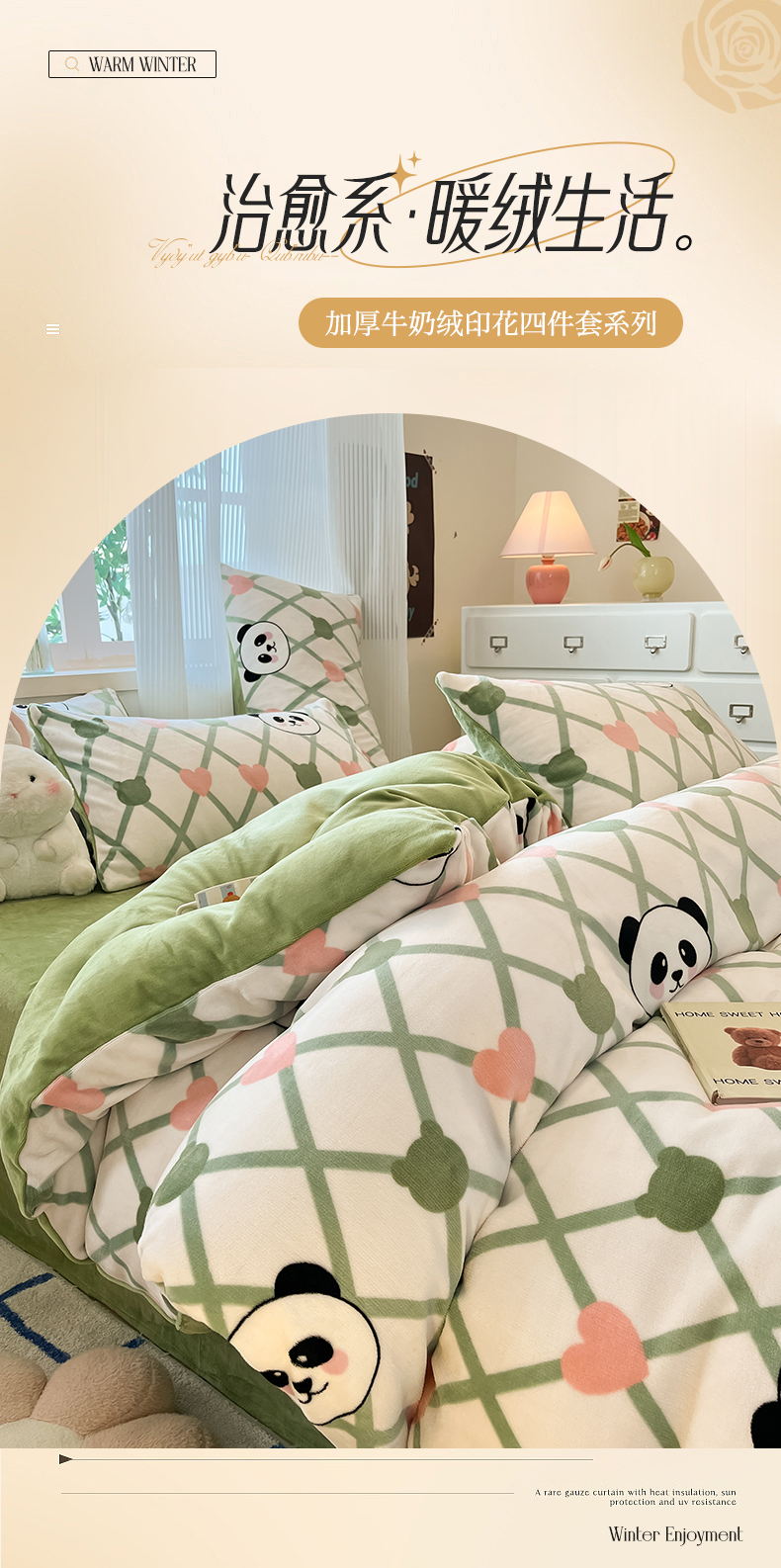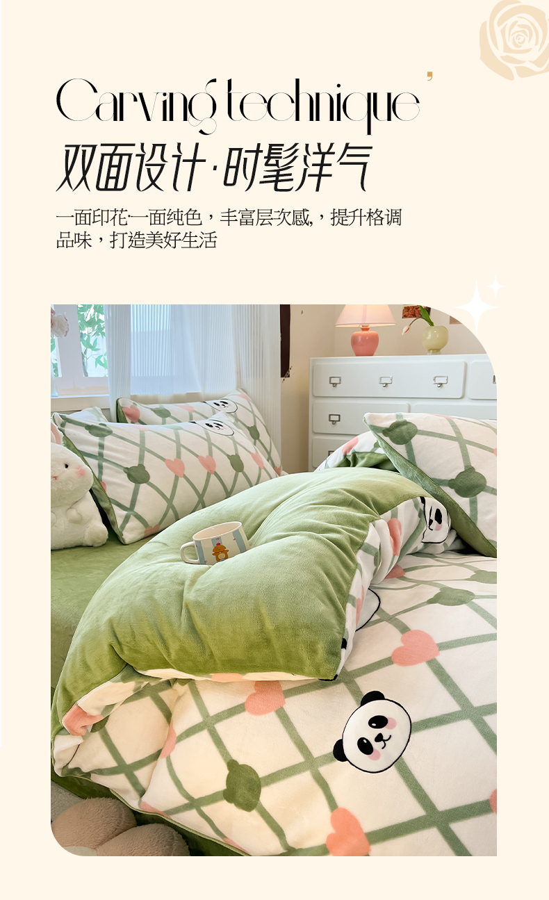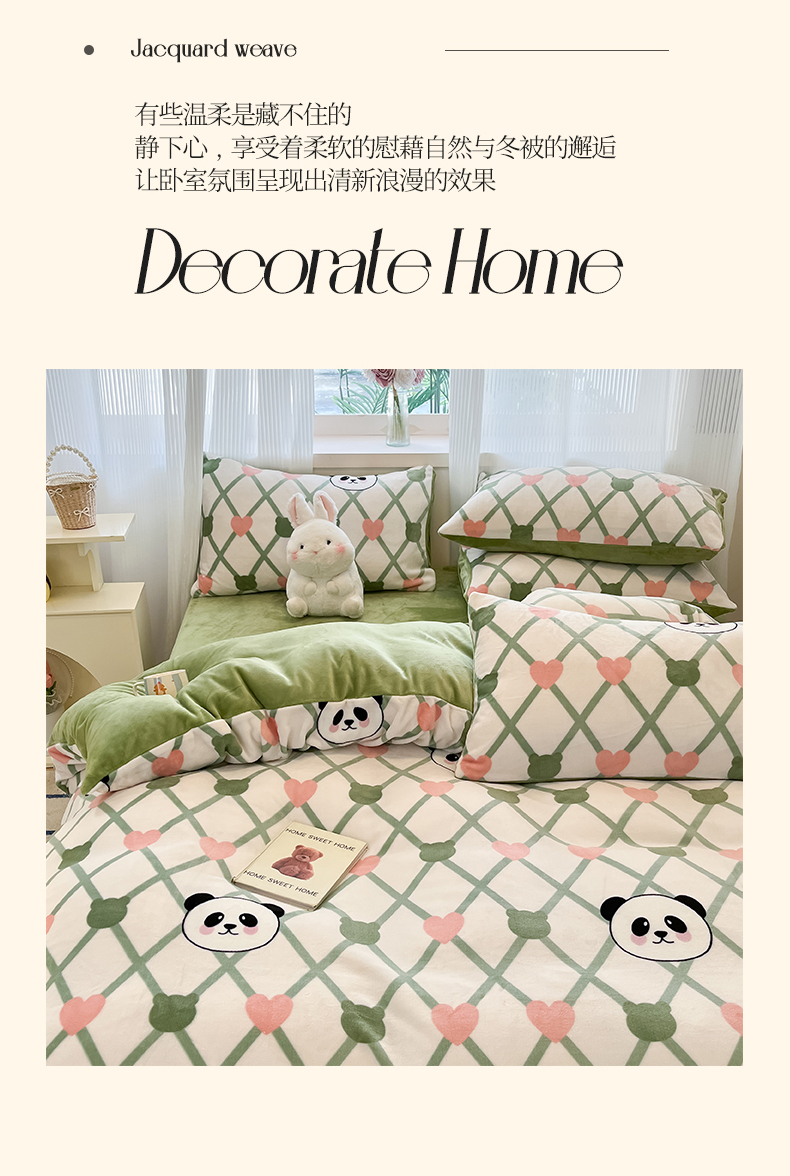 绘萱家居 2025新款高克重印花牛奶绒四件套 萌萌熊猫
