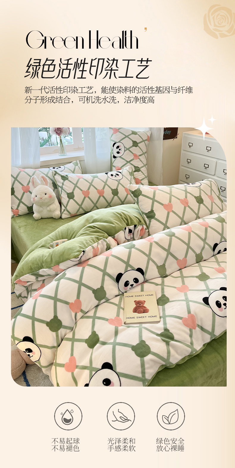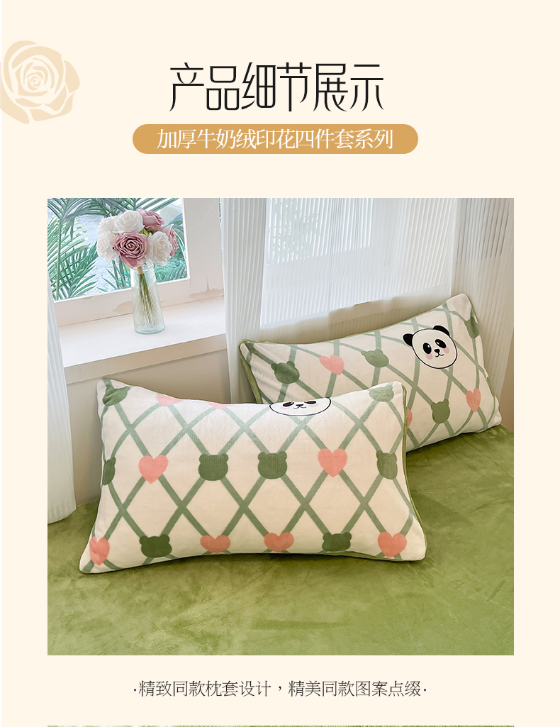 商品名称:绘萱家居 2025新款高克重印花牛奶绒四件套 萌萌熊猫