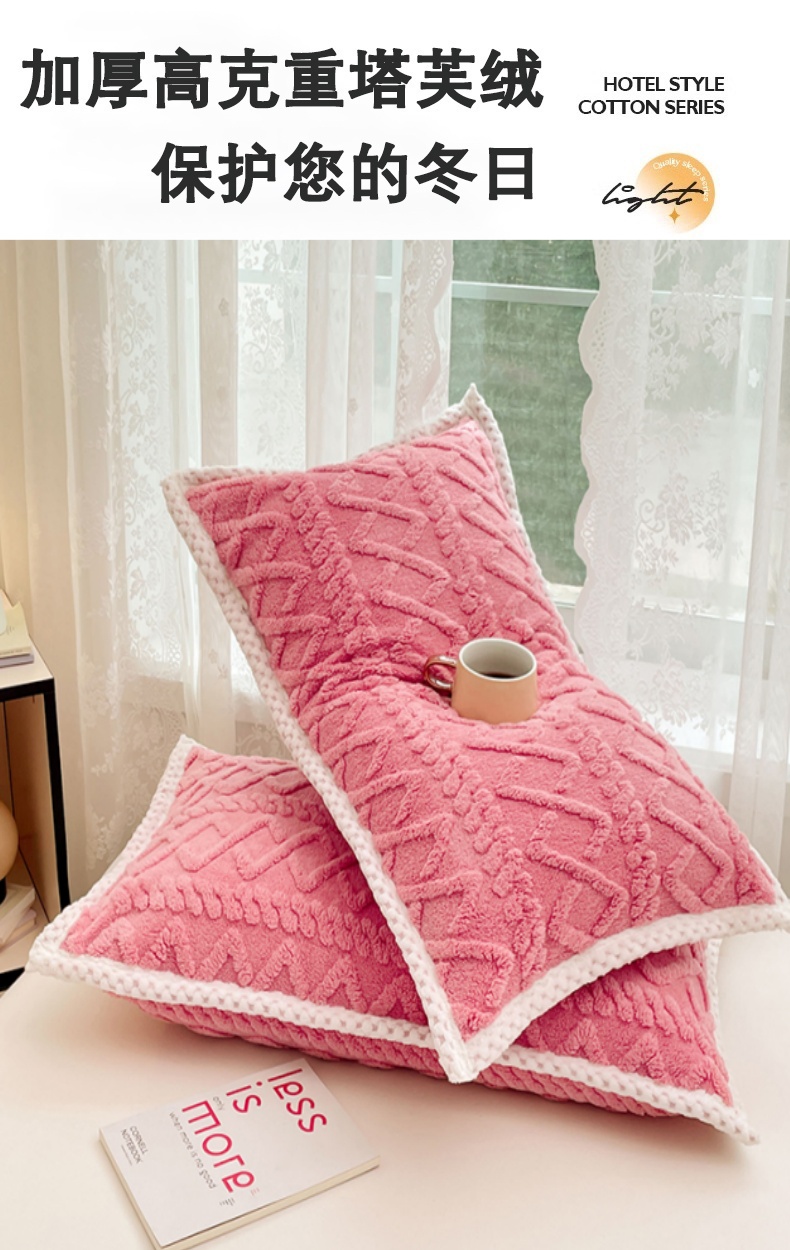 商品名称:梦舒羽 2025新款220克高克重塔芙绒枕套枕芯套宿舍枕头套单人一对装 温柔粉