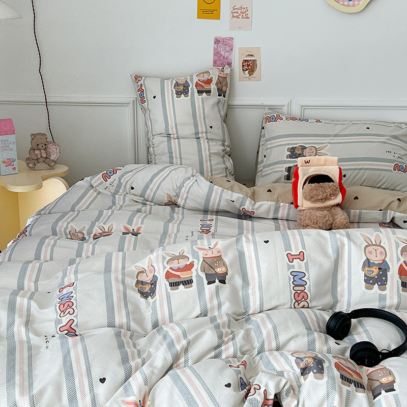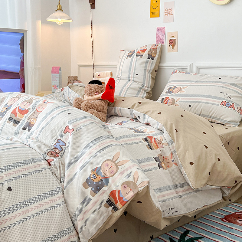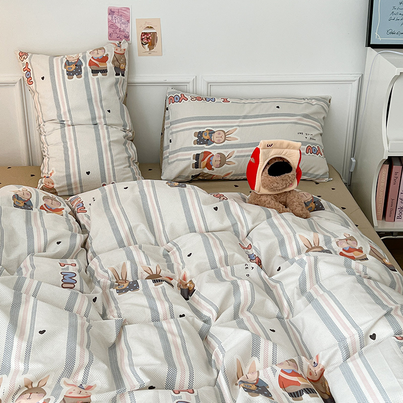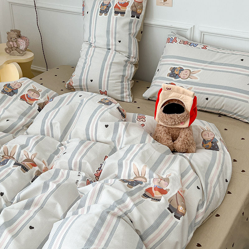 (总)昔可 2023新款学生季卡通普通款四件套,彩色气球熊,彩条恐龙,憨憨熊,花蜜小兔,蘑菇兔,圈圈草莓,蔬菜小兔,郁金香小萌狗