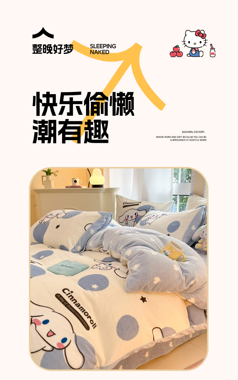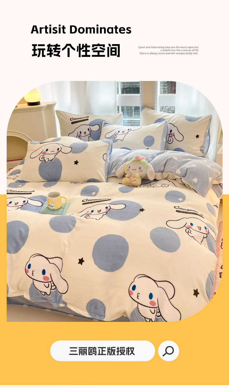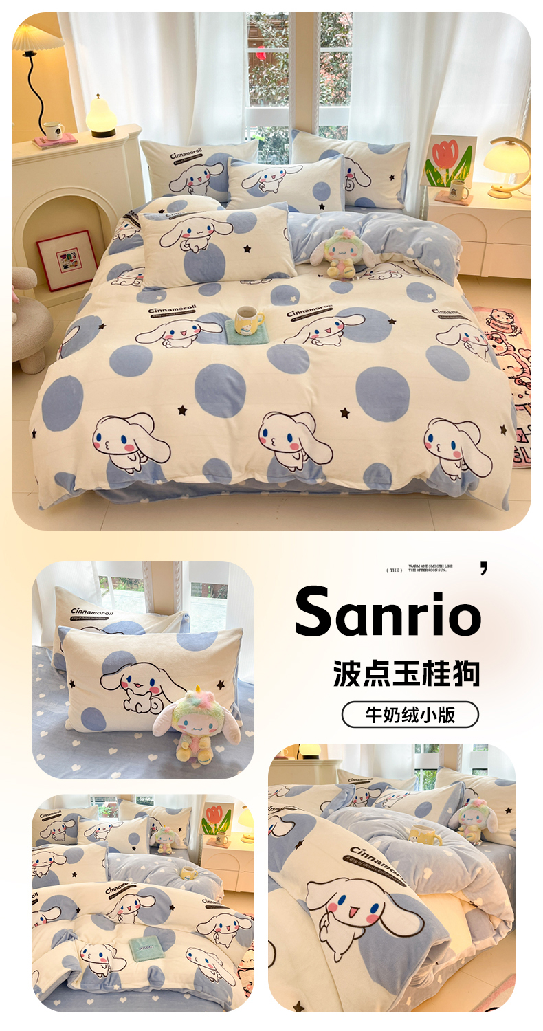 当前位置: 91家纺网 > 商品网购 > 床品套件 > 四件套 > 牛奶绒四件套 > 2024新款三丽鸥牛奶绒小版四件套 牛奶绒小版-波点玉桂狗