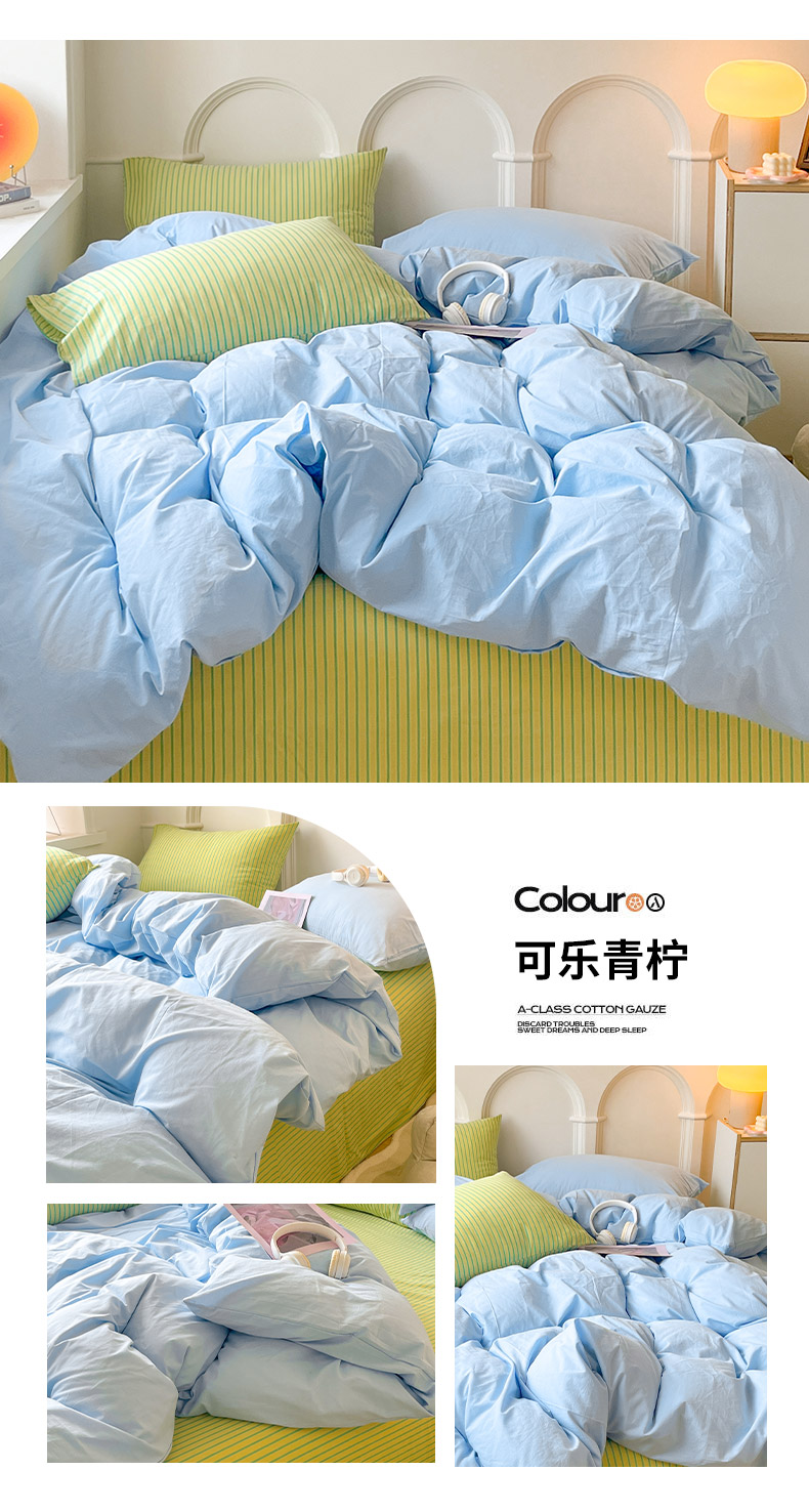 商品名称:千朵 2024新款ins风多巴胺撞色条纹全棉水洗棉四件套-可乐系列 可乐青柠