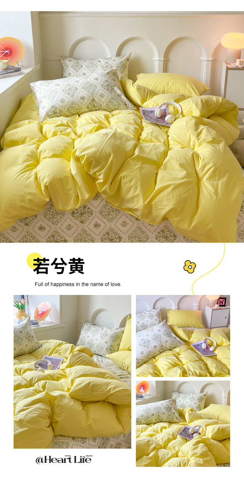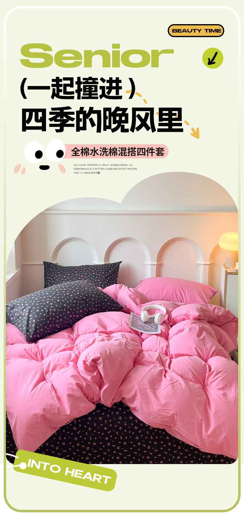 (总)千朵 2024新款全棉水洗棉混搭双拼四件套