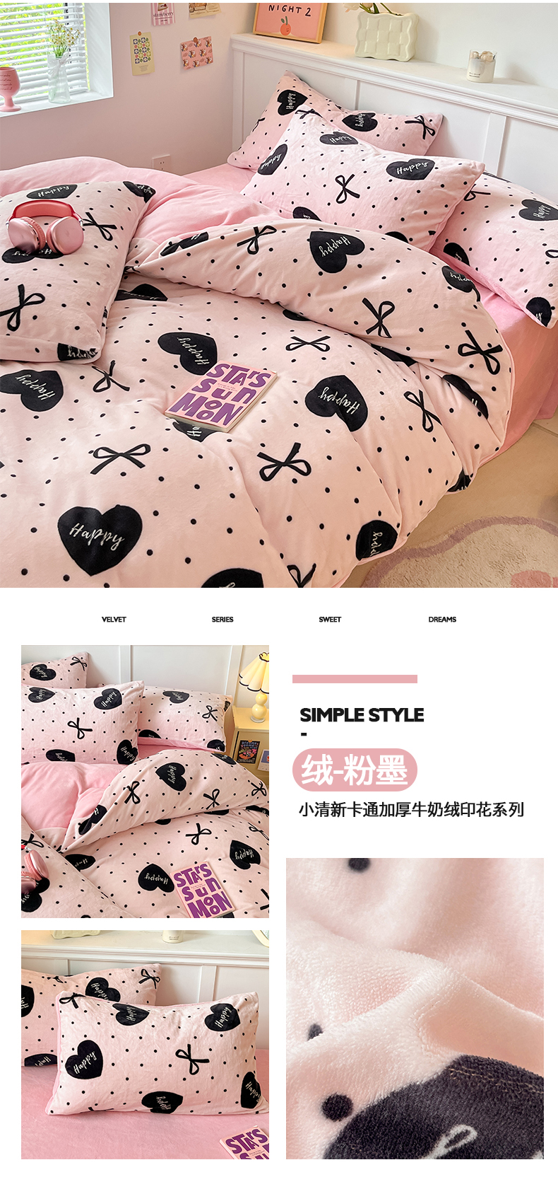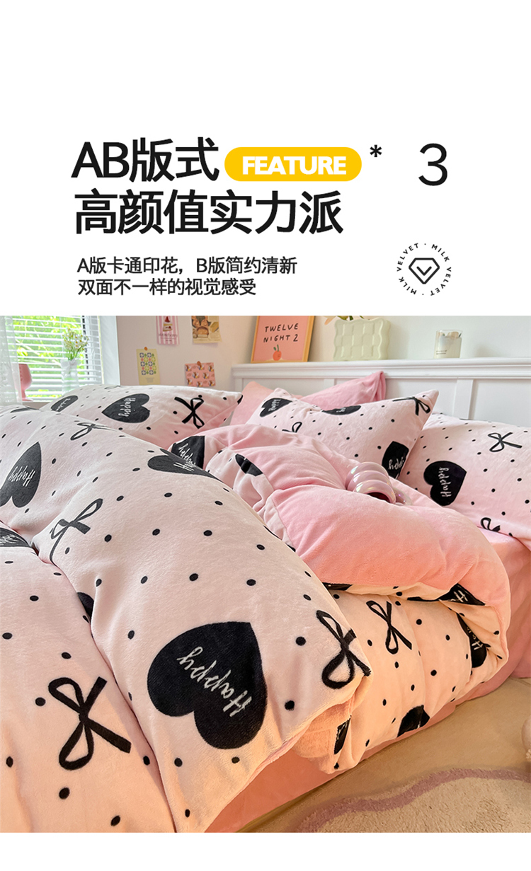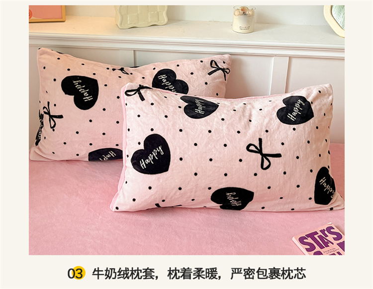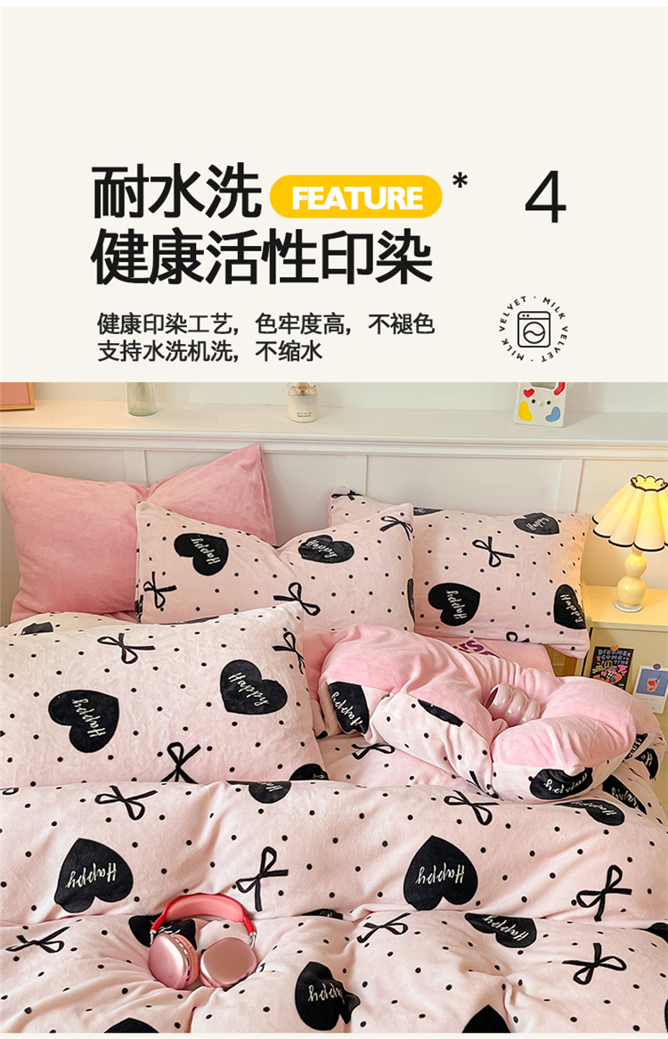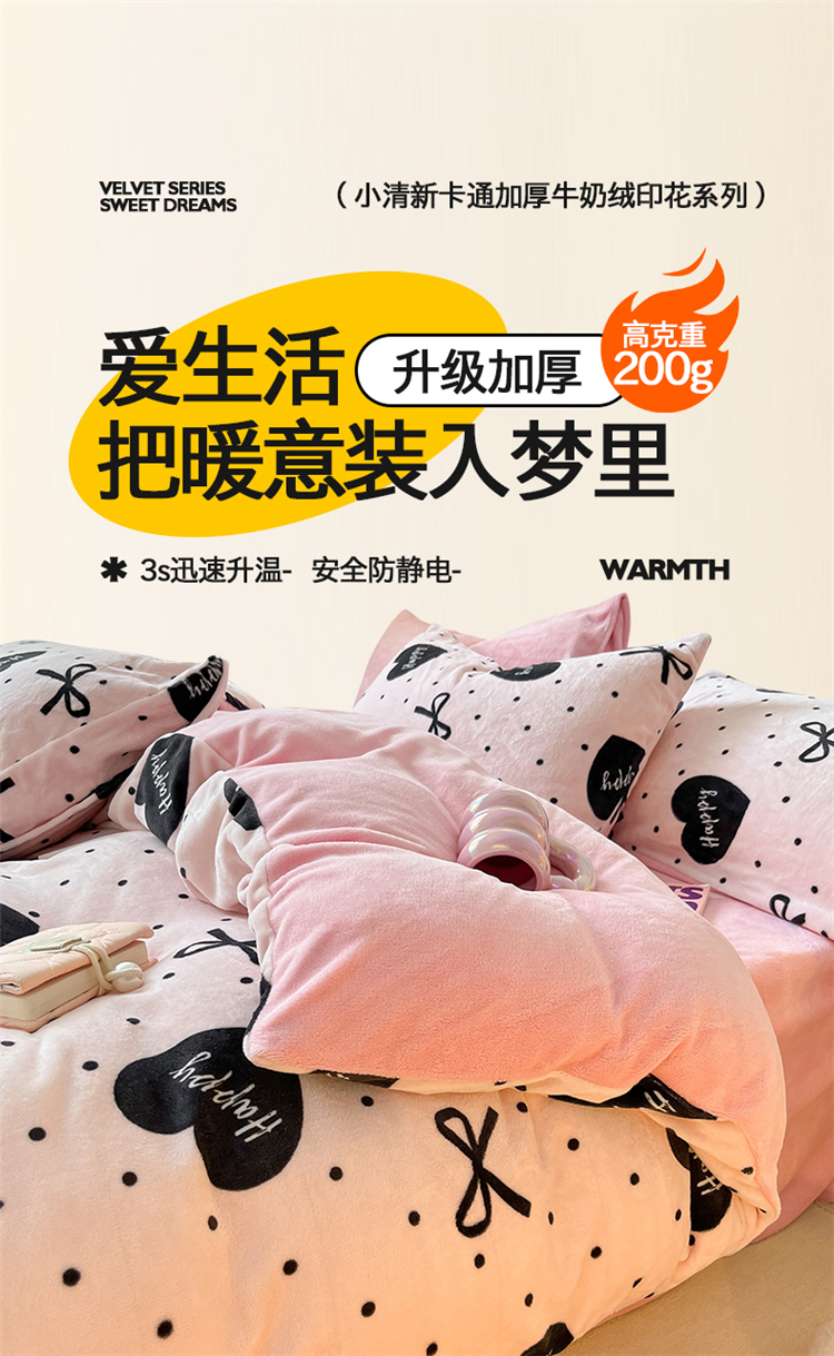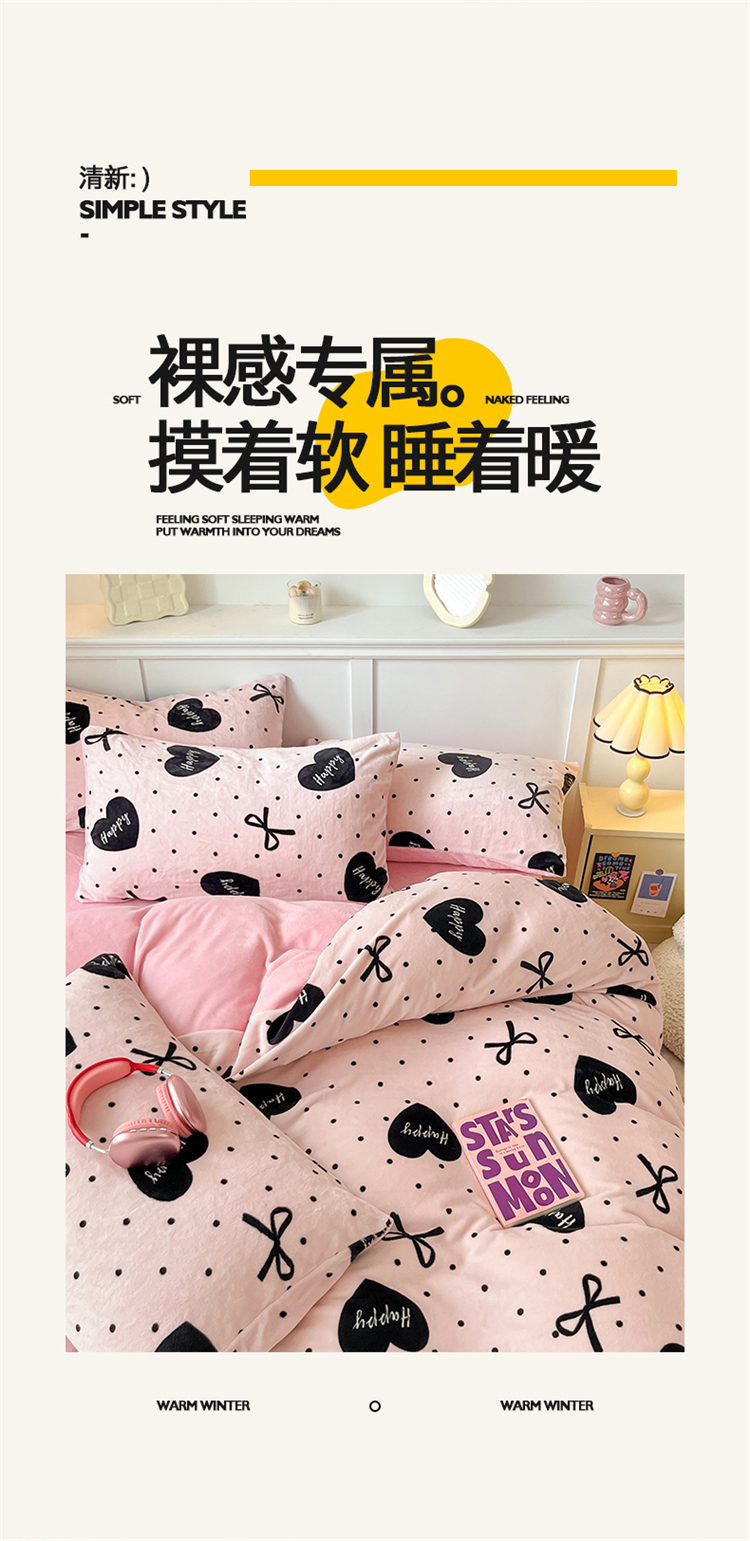 商品名称:2024新款200g加厚防静电牛奶绒小清新四件套 绒-粉墨