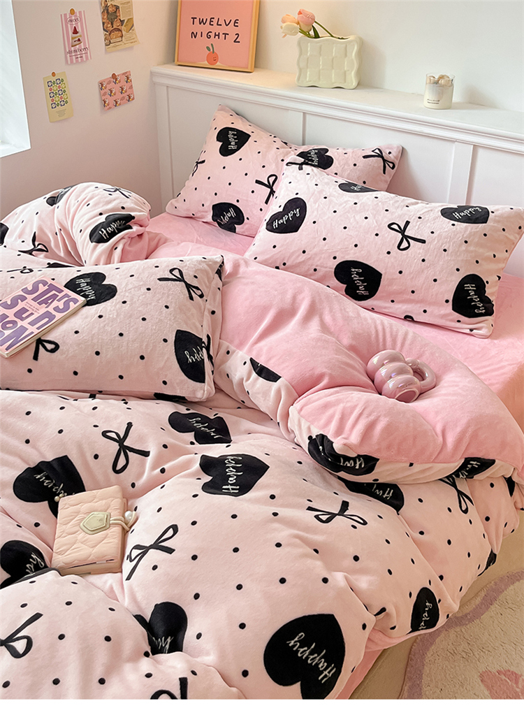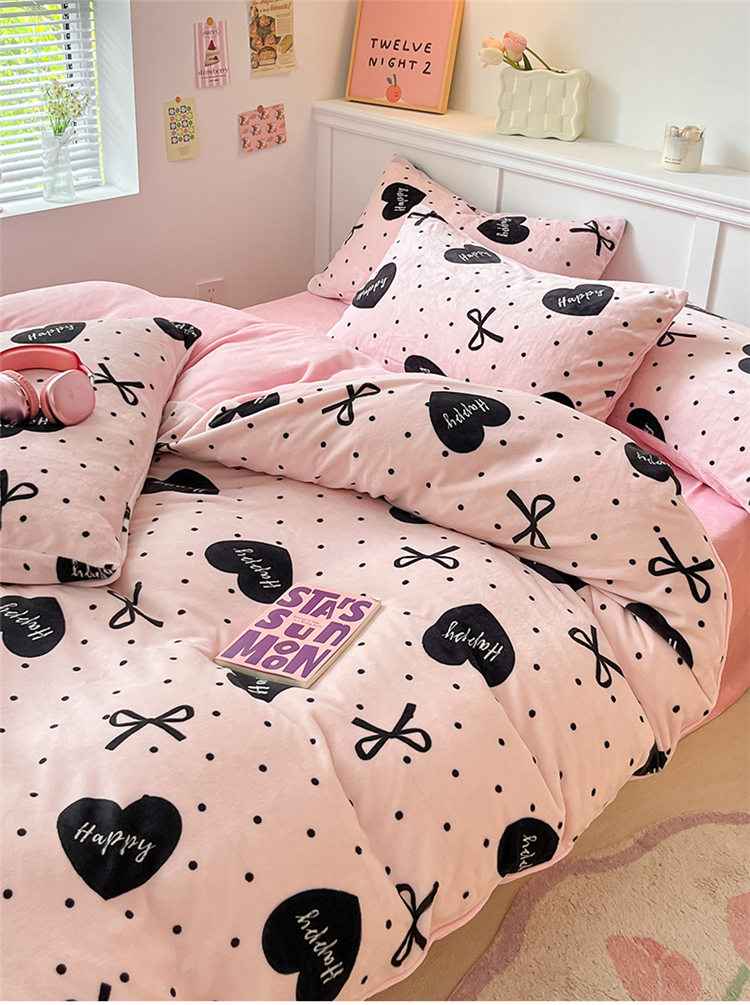 2024新款200g加厚防静电牛奶绒小清新四件套 绒-粉墨