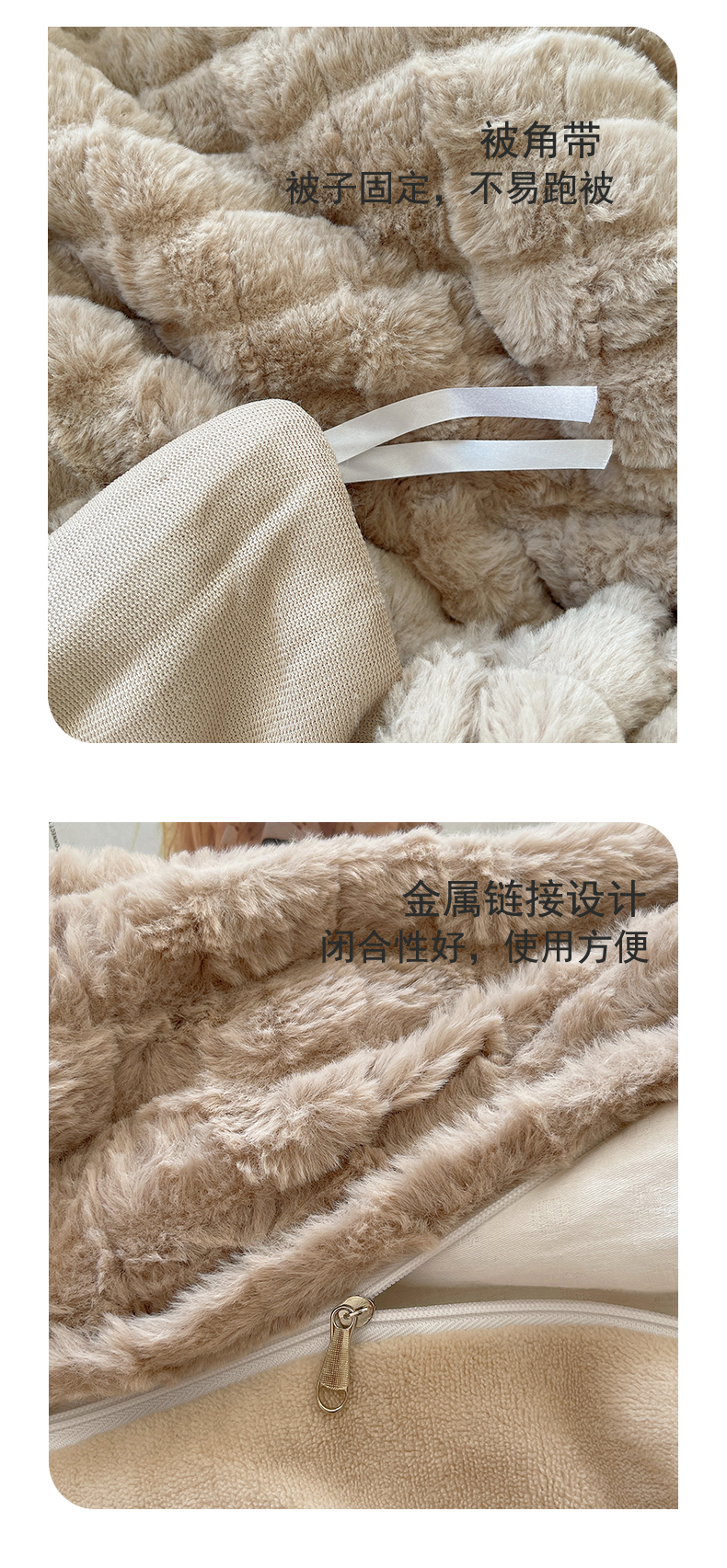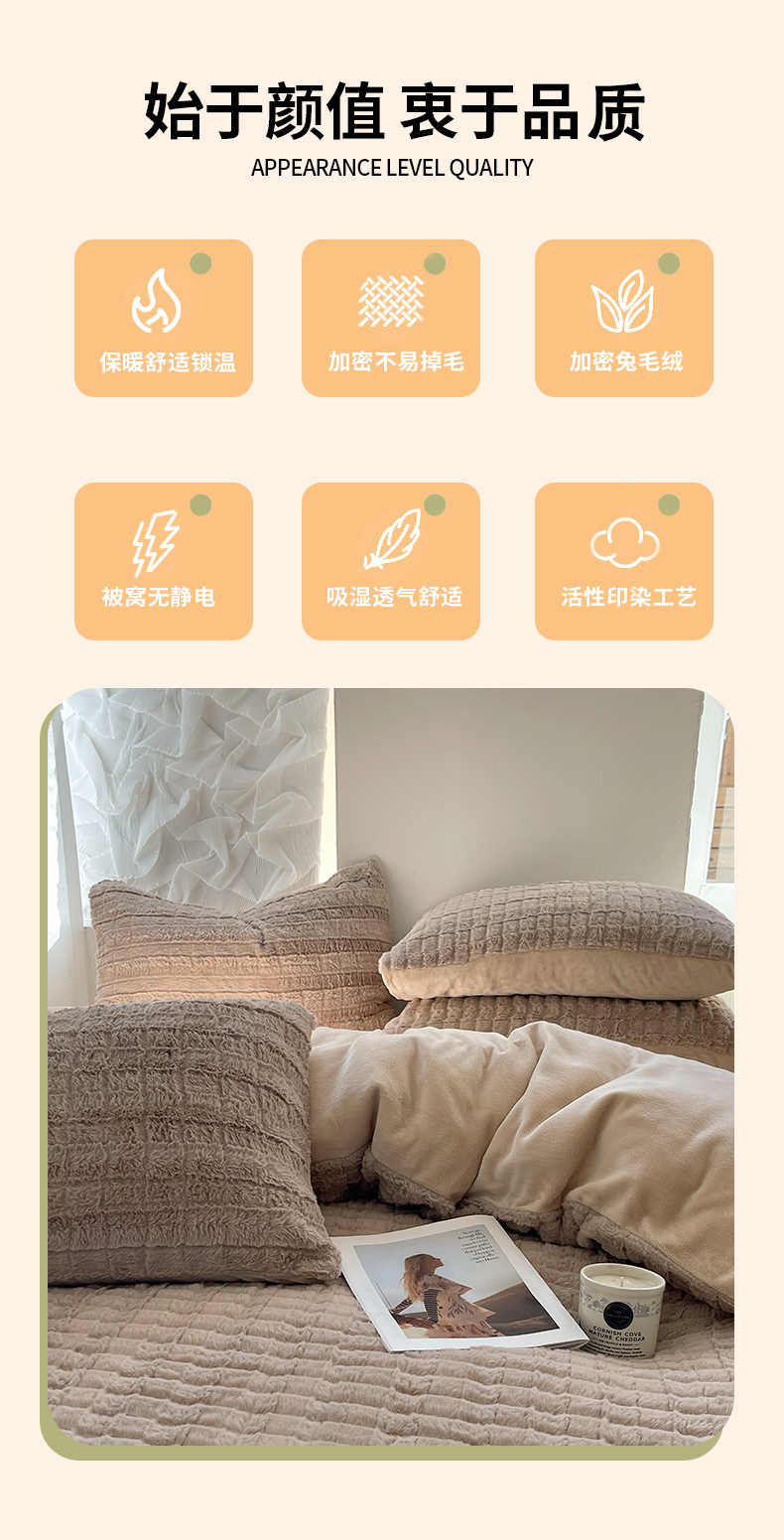 商品名称:2024新款全消光兔毛320克牛奶绒A类纯色立体四件套 奶咖