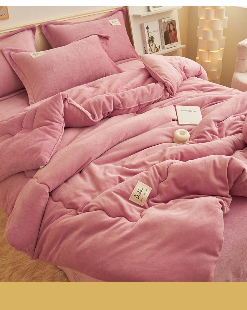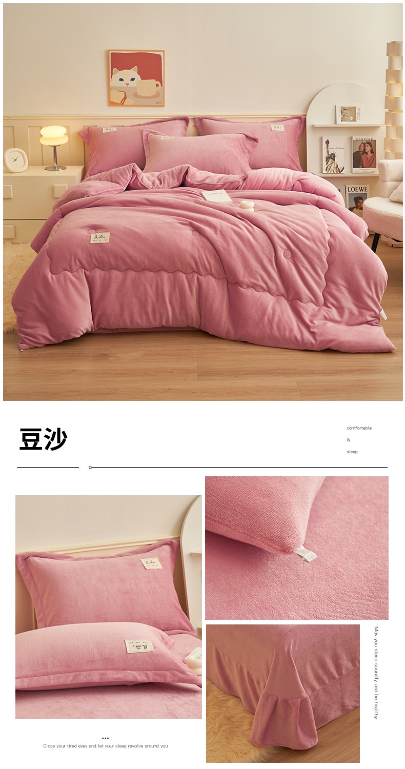 2024新款保暖舒适牛奶绒冬被四件套 豆沙