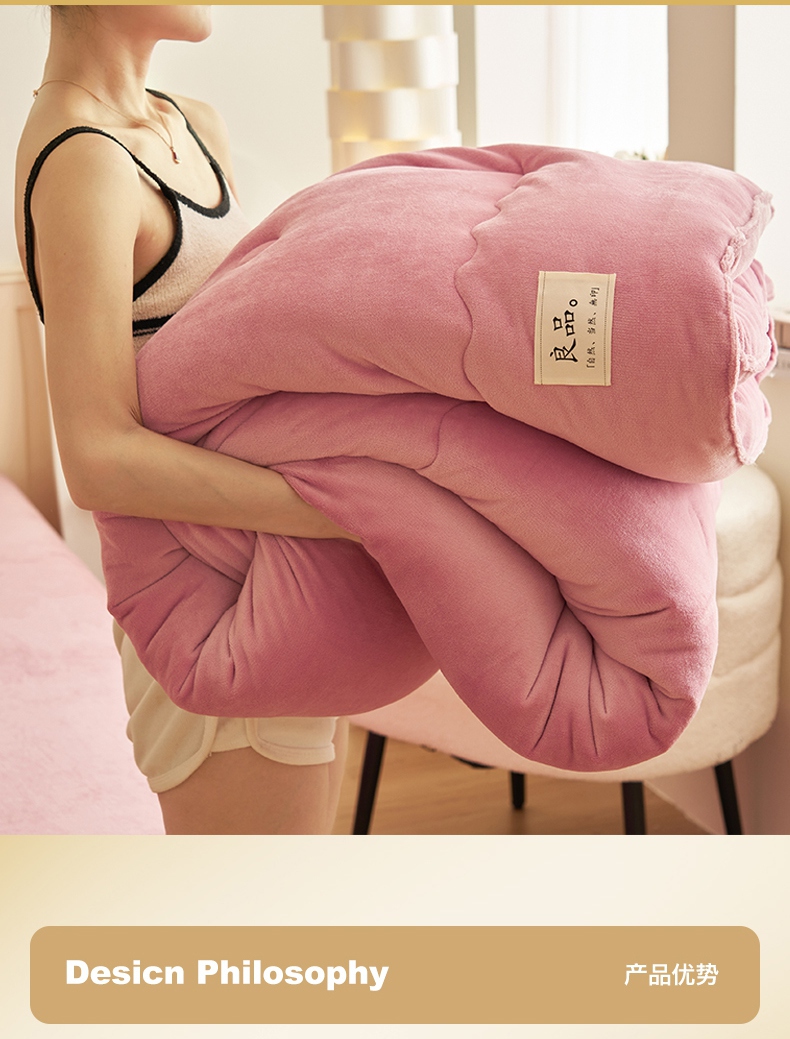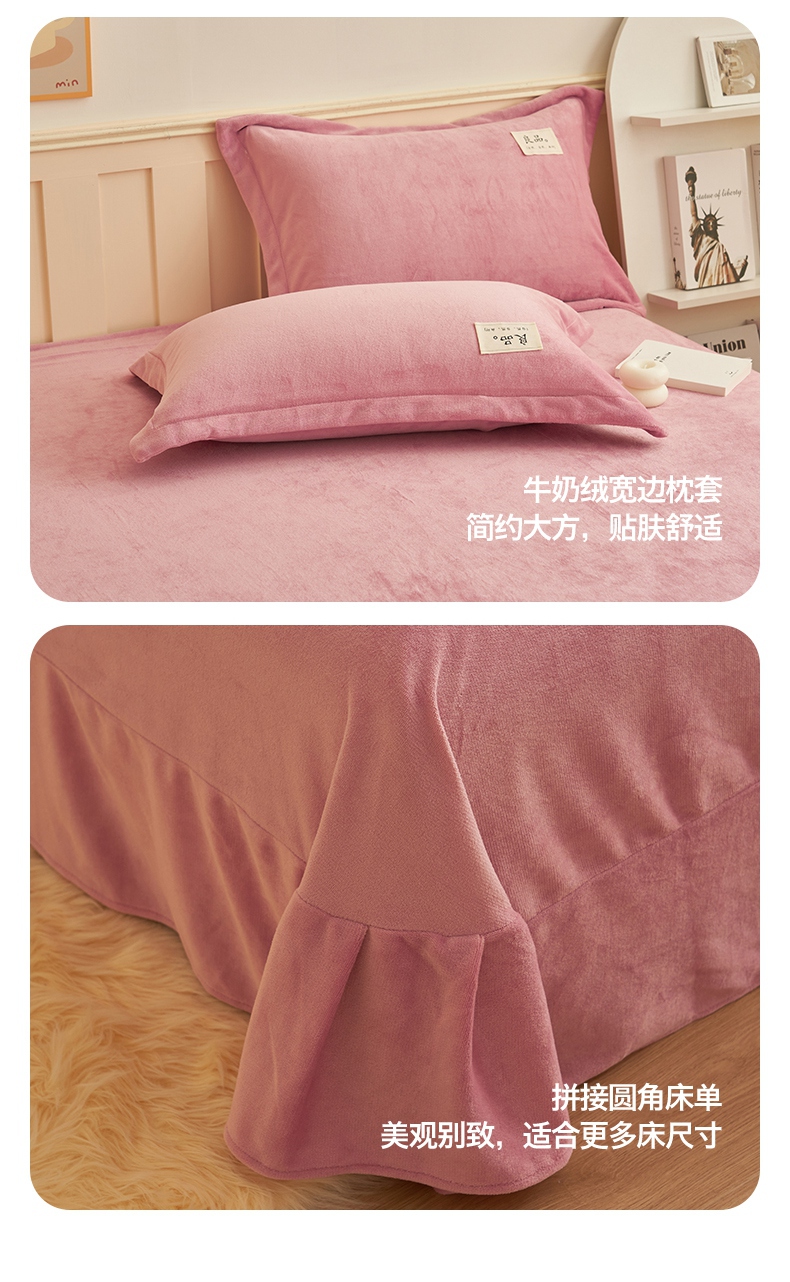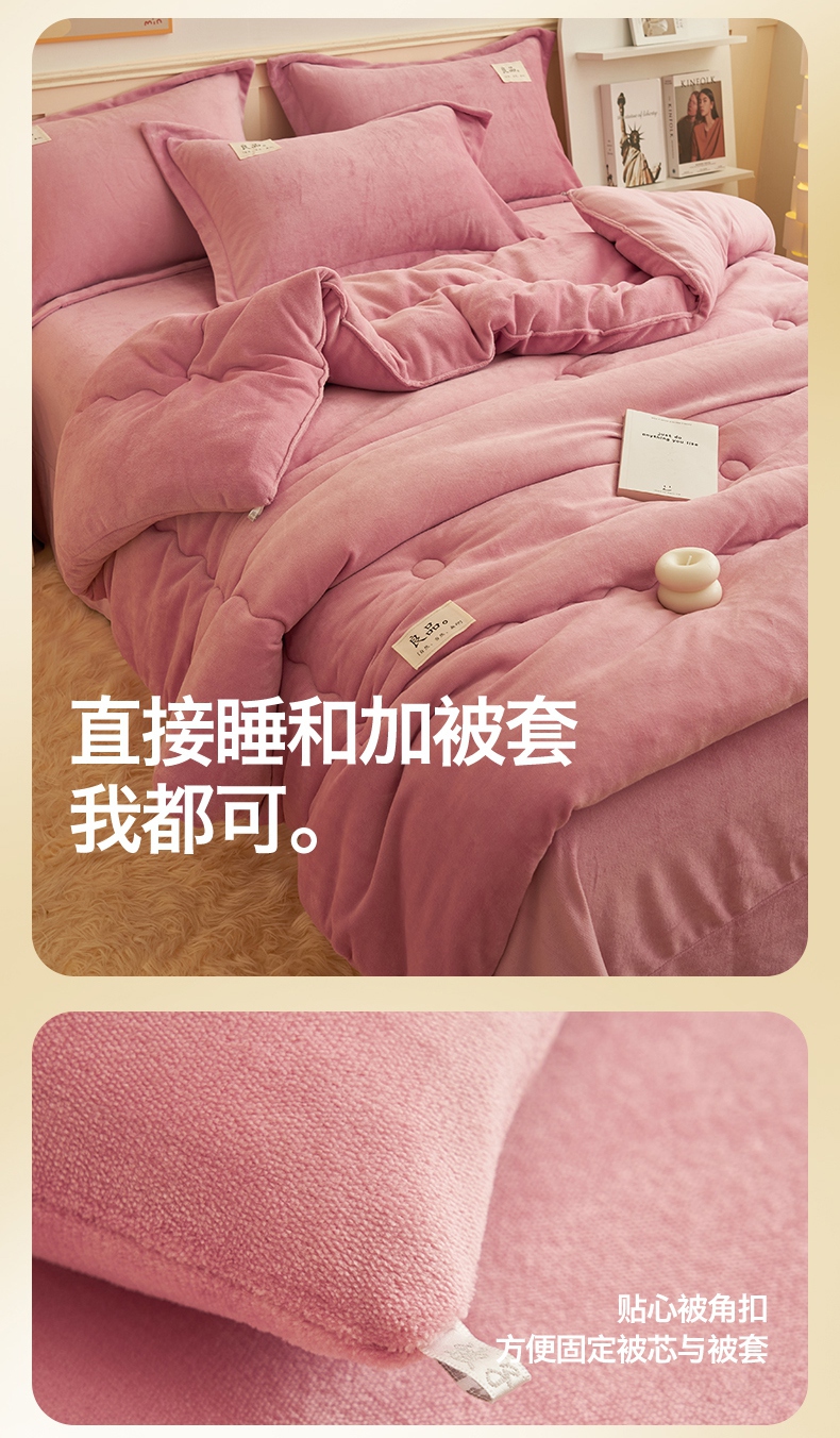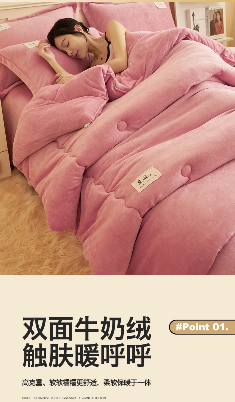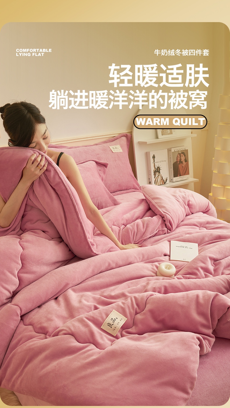 • 91家纺网 家纺一手货源 找家纺 2024新款保暖舒适牛奶绒冬被四件套 豆沙