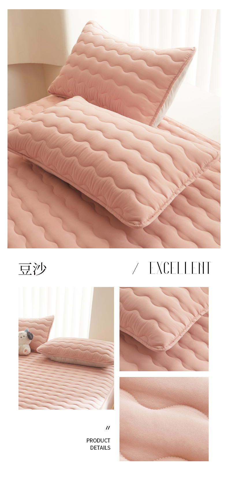 2024新款原棉夹棉枕套-四季款 豆沙