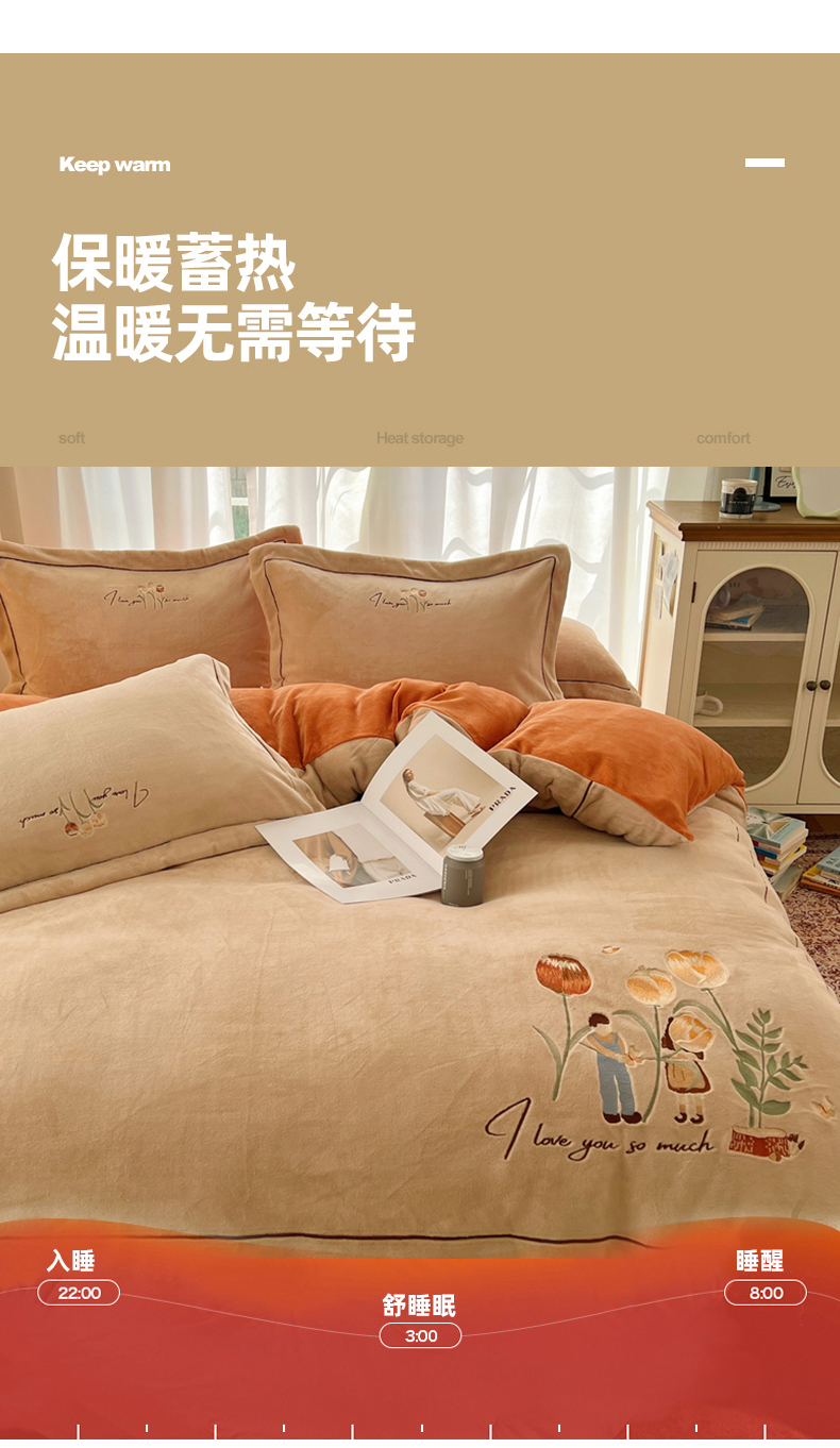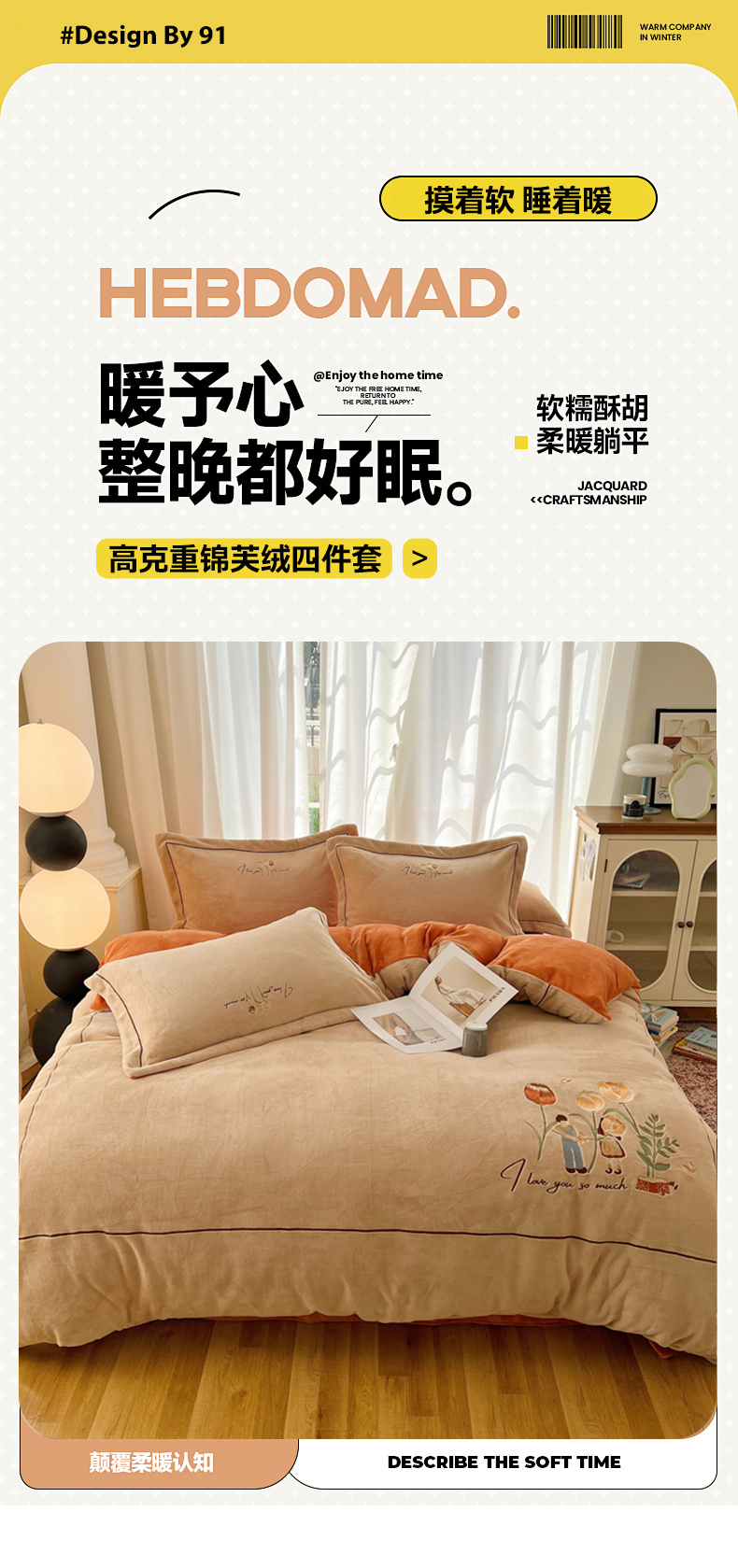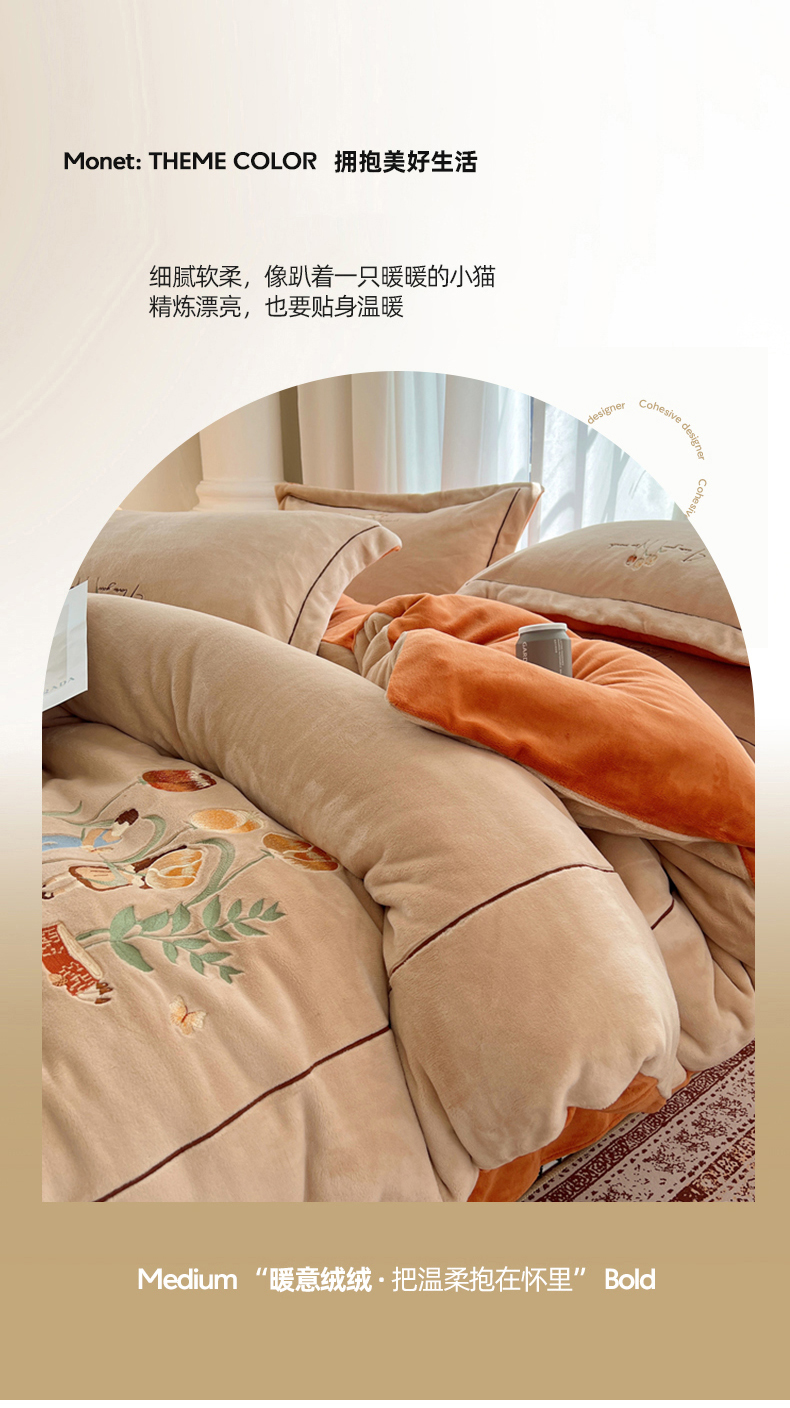 商品名称:丽涵家纺 2024新品消光锦芙绒绣花四件套 杏橘色